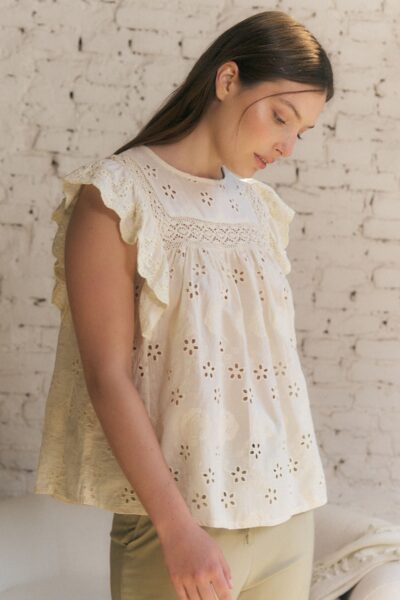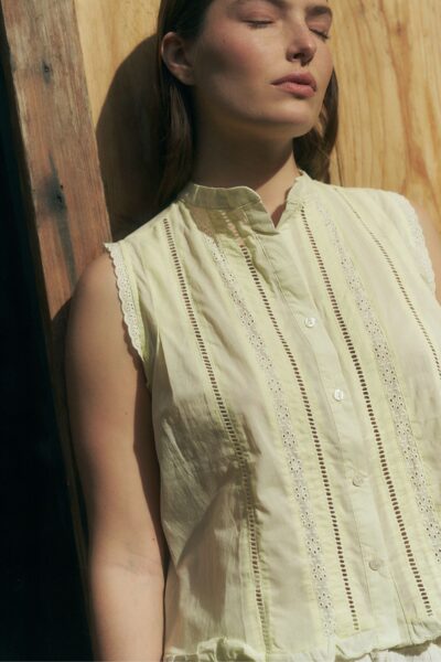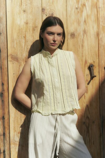 $21,500.00BLUSA CINTHIA CUELLO MAO SIN MANGAS CON DETALLES DE PUNTILLA (IMPORTADO) / TALLES M Y L