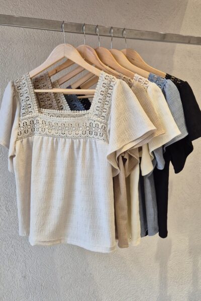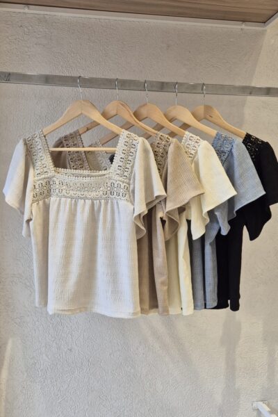 BLUSA ARIZONA CUELLO CUADRADO, MANGAS VOLADOS Y DETALLE DE PUNTILLA / TALLES M Y L