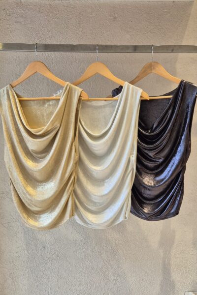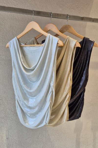 $12,500.00MUSCULOSA YARA CUELLO BUCHE CON FRUNCES A LOS COSTADOS / TALLES M Y L