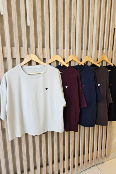 REMERA TAMARA CUELLO REDONDO. CUENTA CON DETALLE BORDADO DE CORAZÓN / TALLE ÚNICO