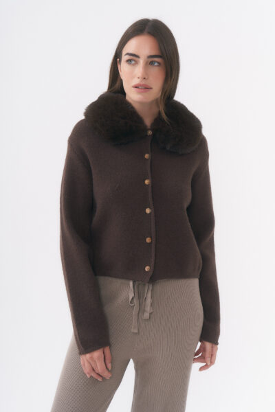 $26,000.00SACO DE PUNTO CON TEXTURA DE PELAJE SUAVE, CUELLO EN V Y BOTONES TRABAJADOS DORADOS / TALLE ÚNICO