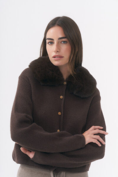 $26,000.00SACO DE PUNTO CON TEXTURA DE PELAJE CON CUELLO V Y BOTONES DORADOS TRABAJADOS EN FRENTE / TALLE ÚNICO