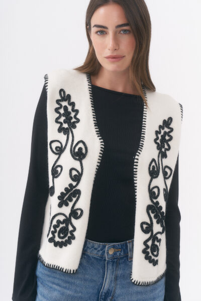$29,000.00CHALECO CON DISEÑO DE LENTEJUELAS Y MOSTACILLAS/ TALLE ÚNICO