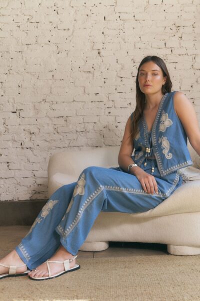 CONJUNTO ZOE (INCLUYE CHALECO Y PALAZZO).DETALLES DE BORDADO (IMPORTADO) / TALLES M Y L