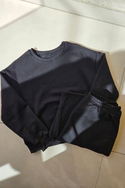 BUZO CON BRILLO CUELLO REDONDO CON PUÑO EN CINTURA Y COSTURA EN LAS MANGAS. / TALLES M Y L