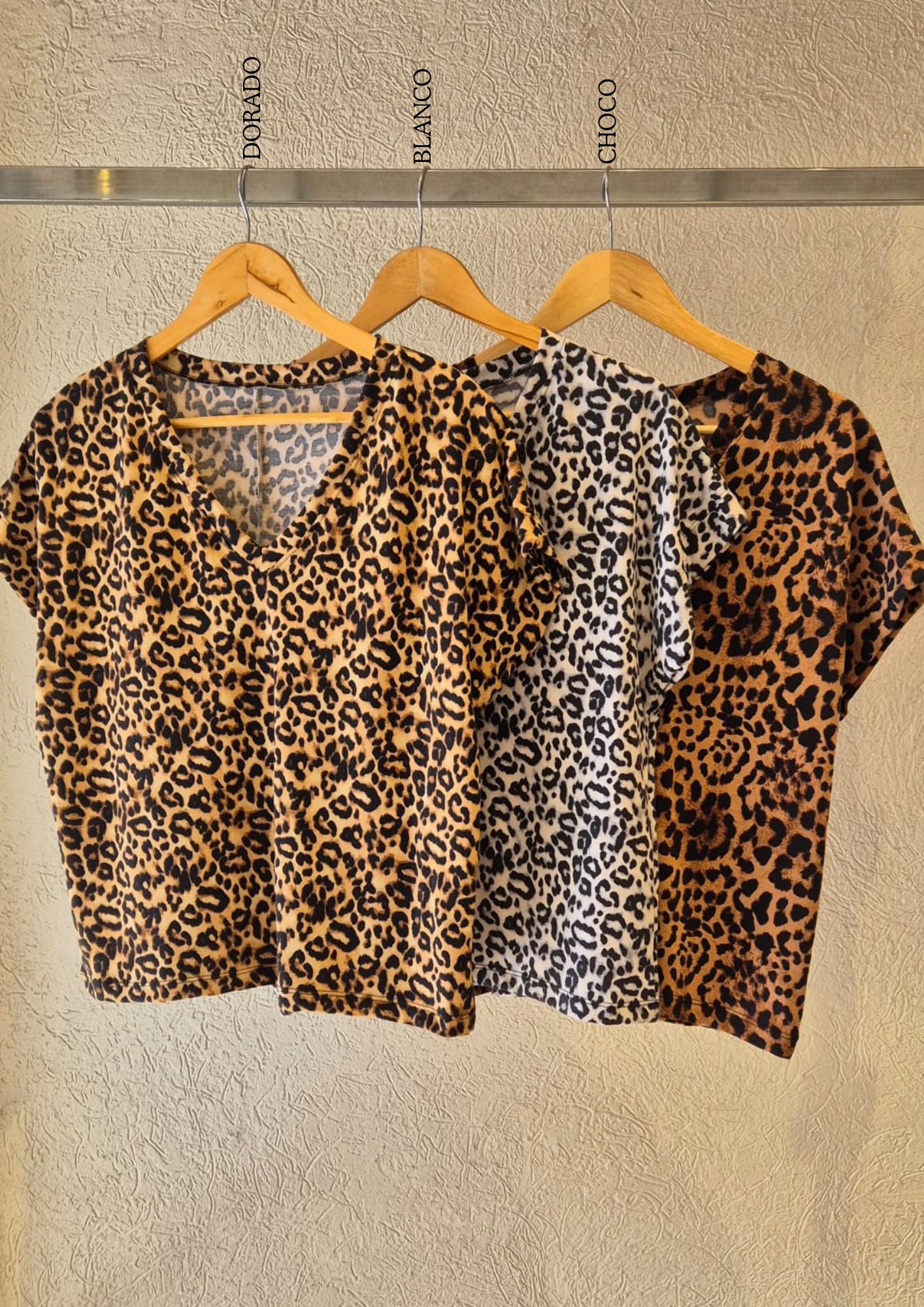 REMERA WANDA CUELLO V ANIMAL PRINT / TALLE UNICO