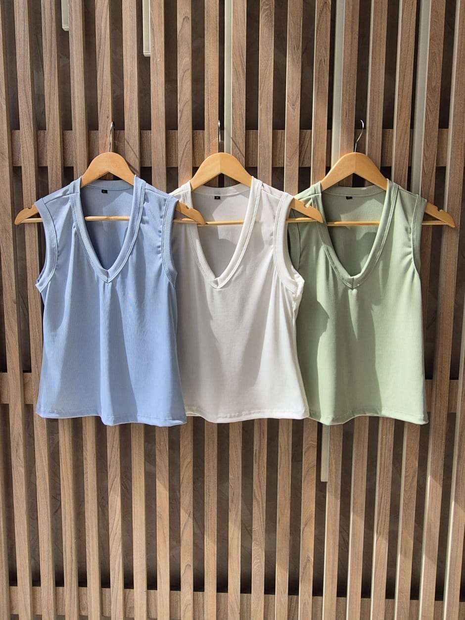 MUSCULOSA LUCY CUELLO V BASICA / TALLES M Y L