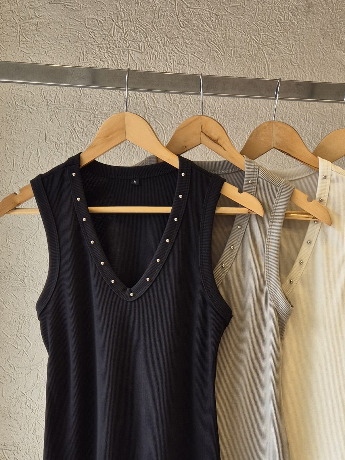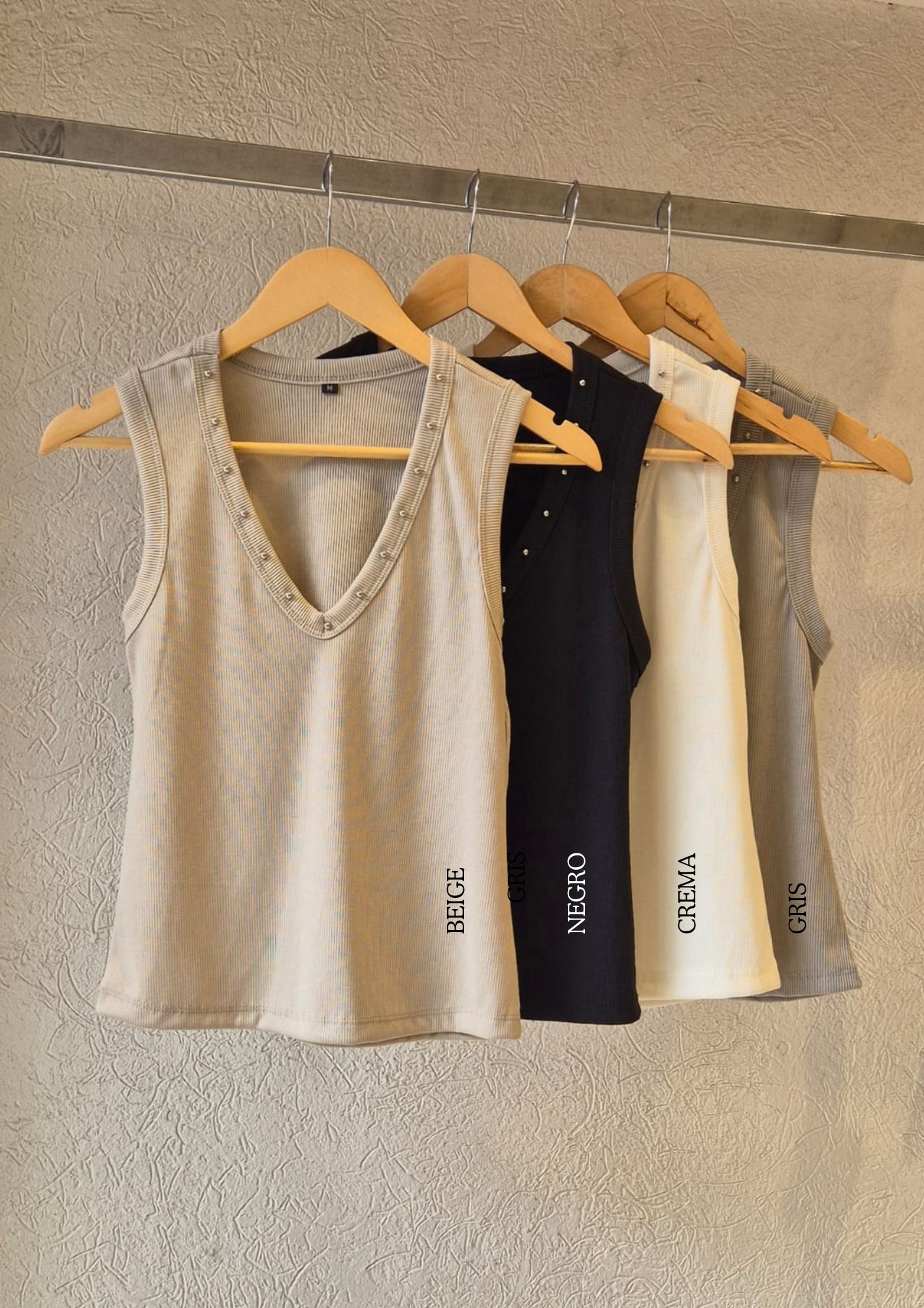 MUSCULOSA LEILA CUELLO REDONDO CON DETALLE DE TACHAS / TALLES M Y L