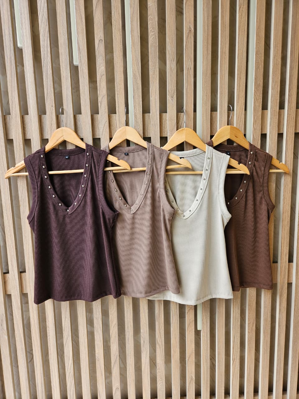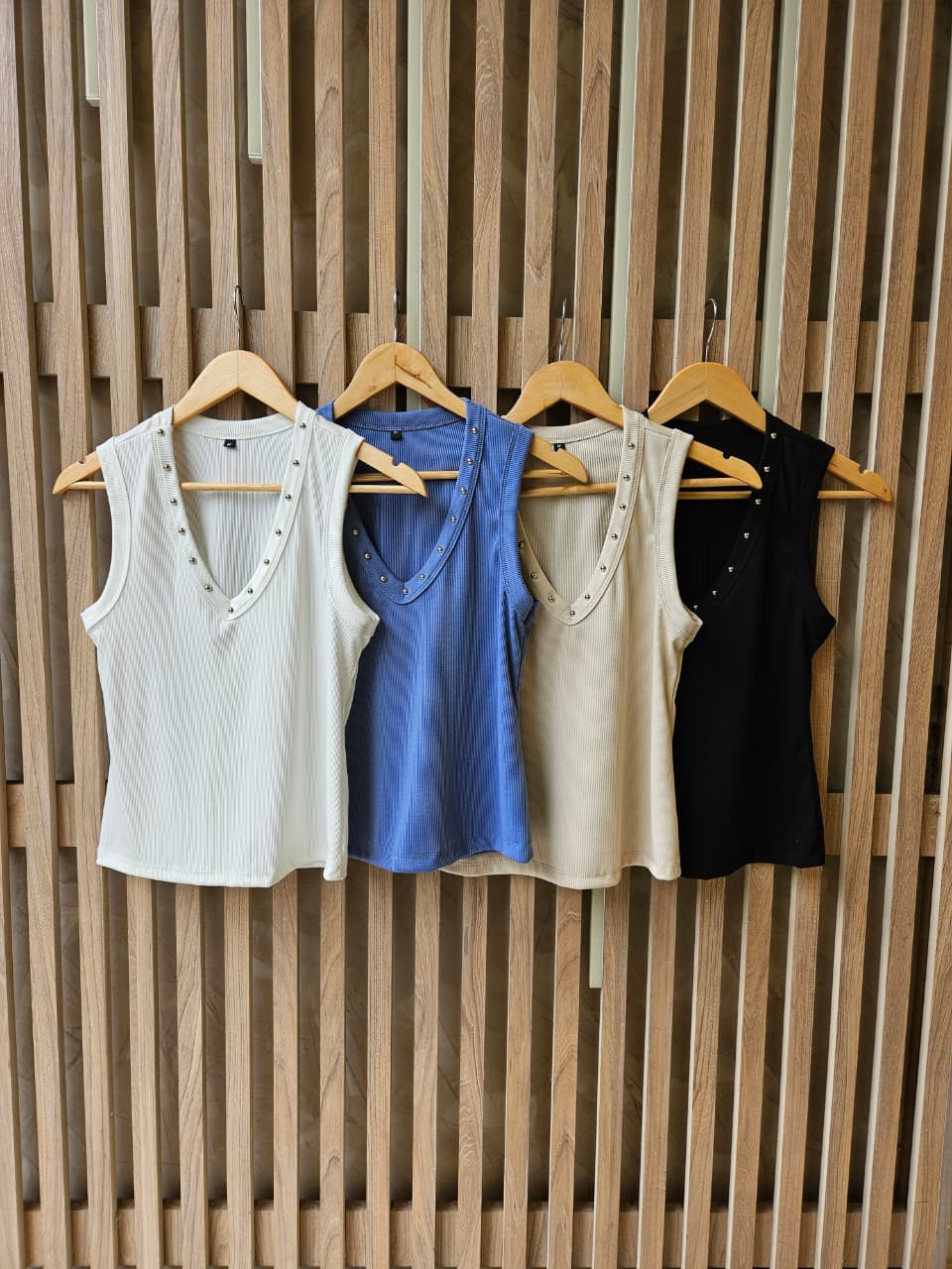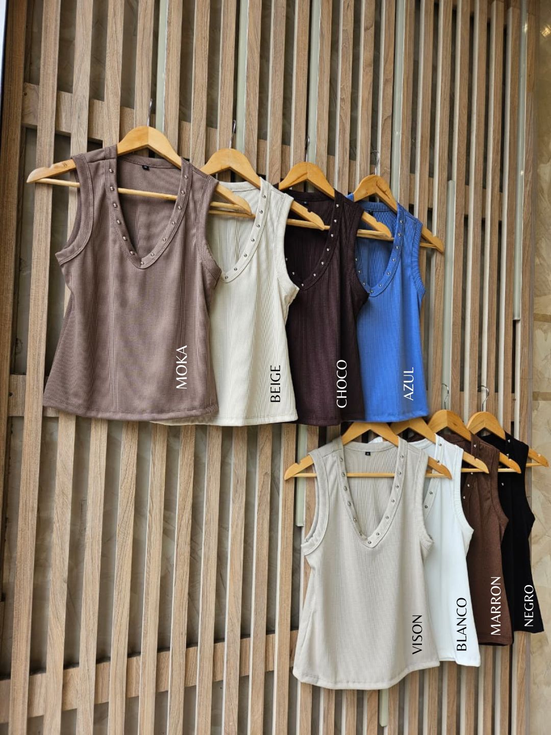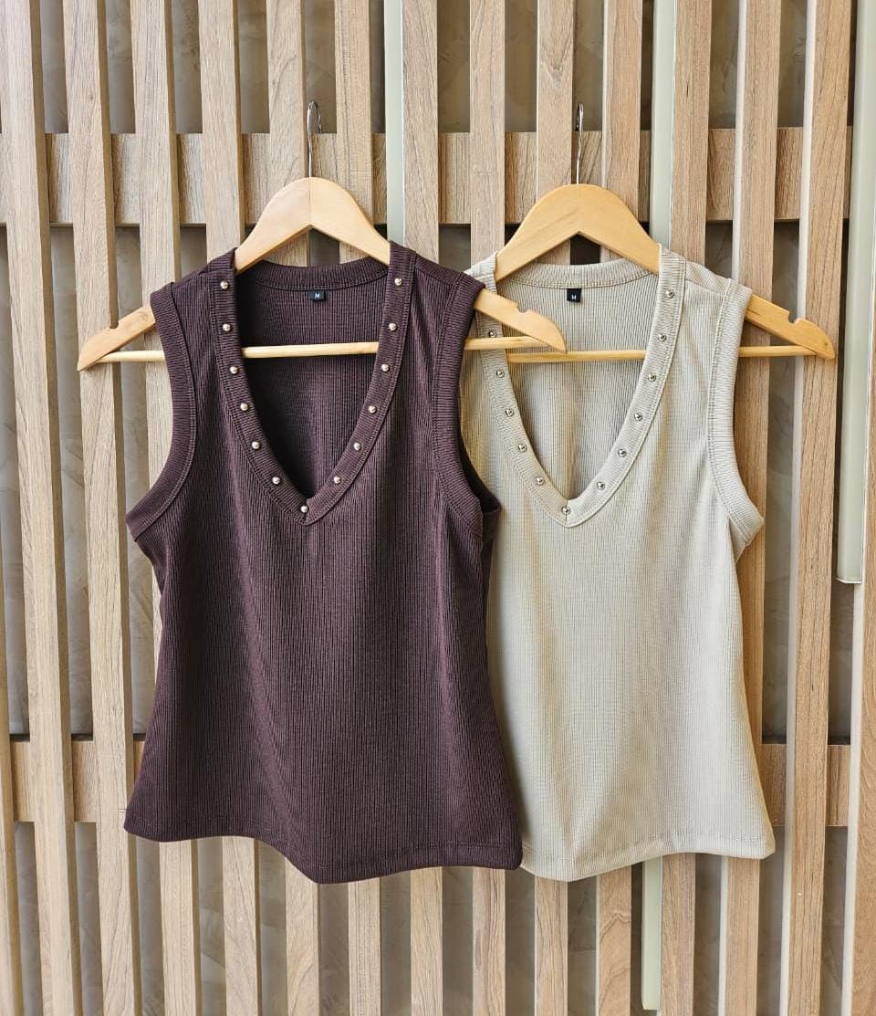 MUSCULOSA FATI CUELLO V CON DETALLE DE TACHAS / TALLES M , L Y XL