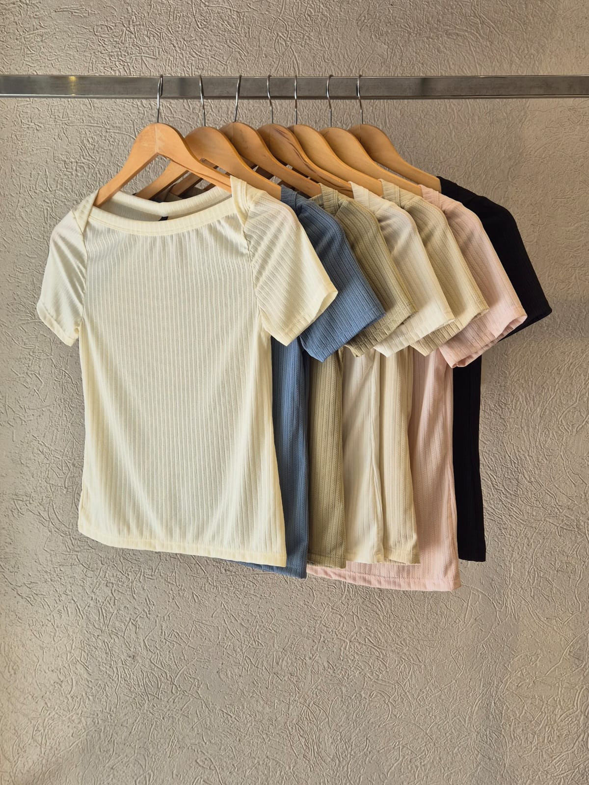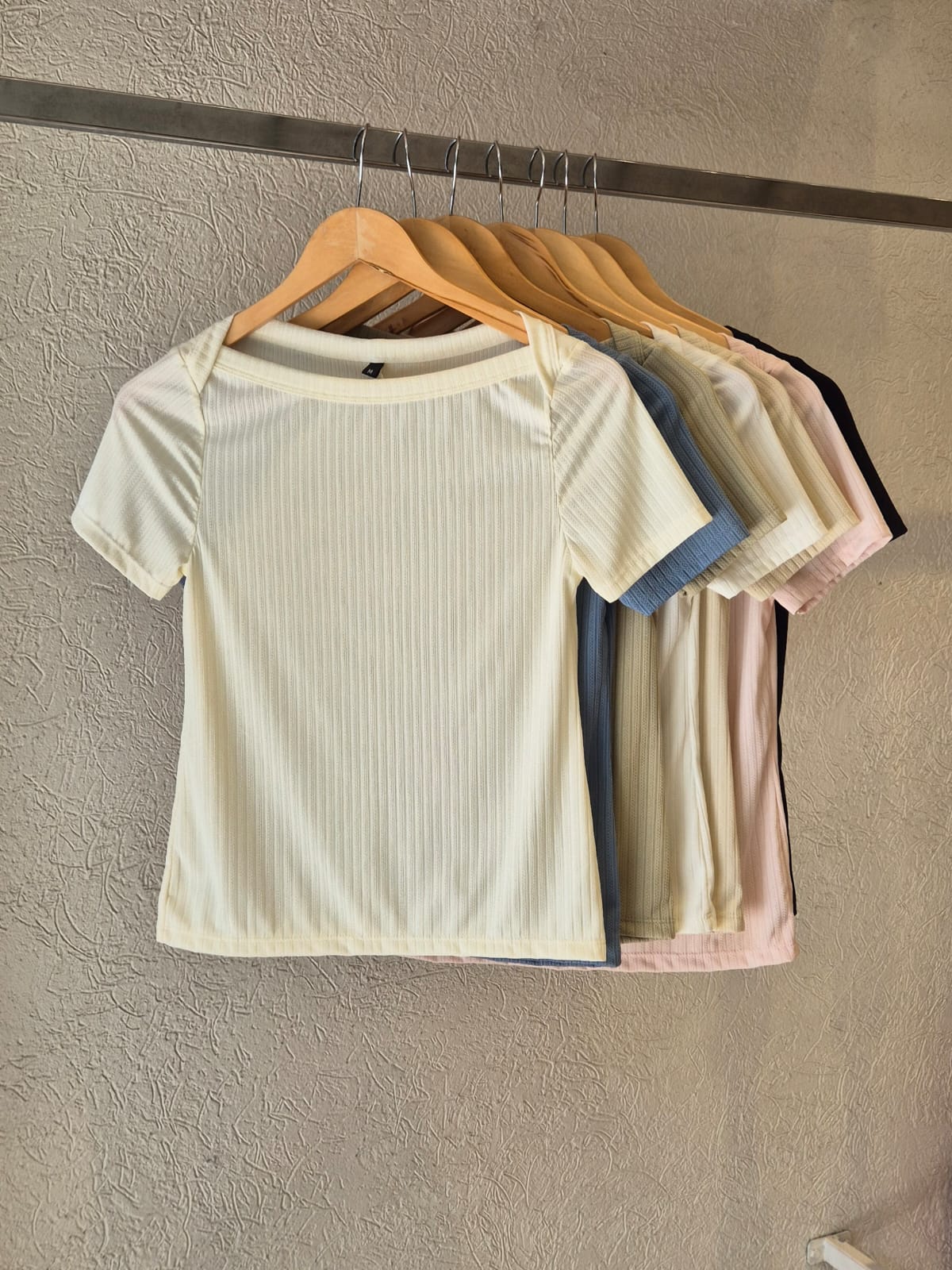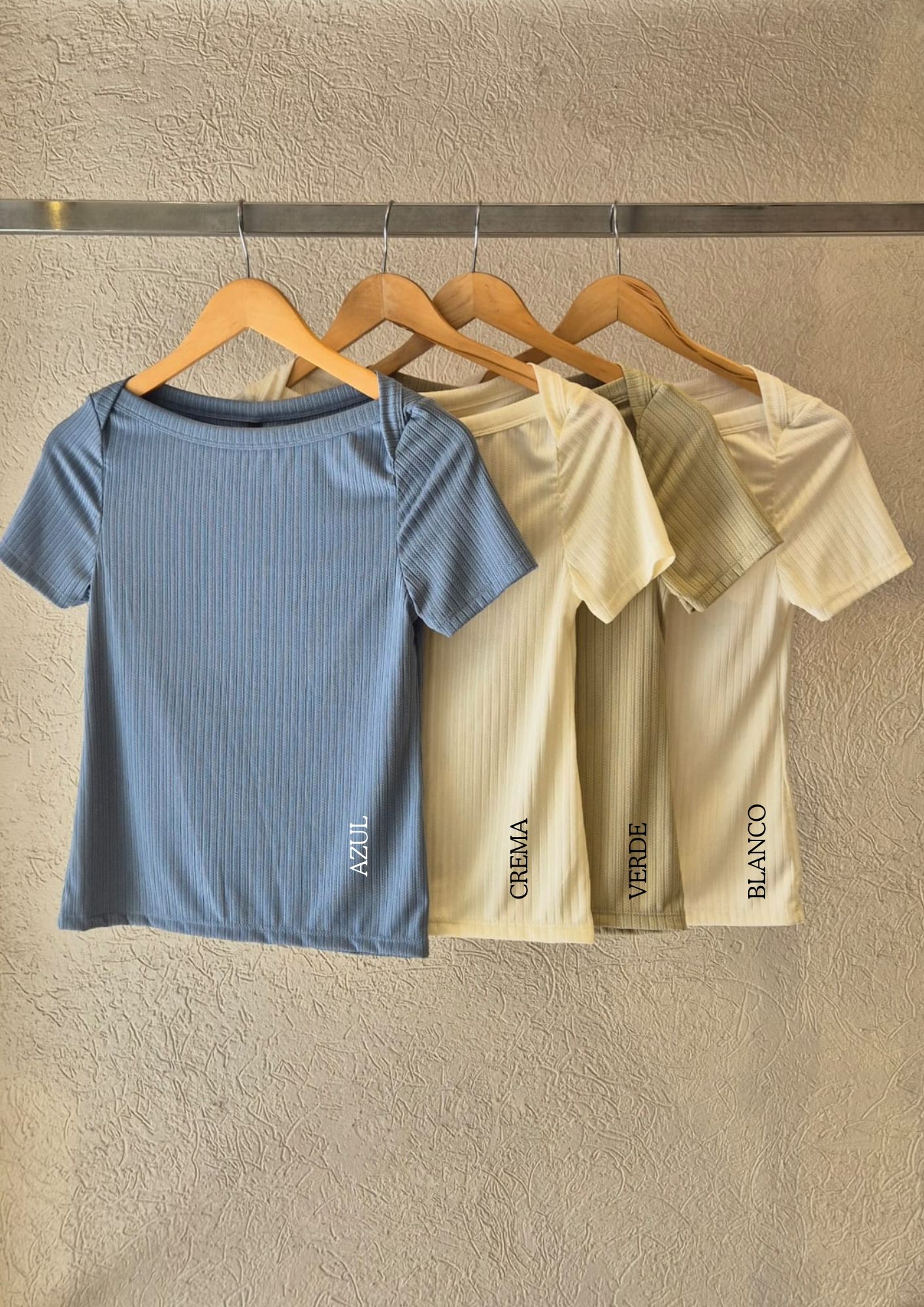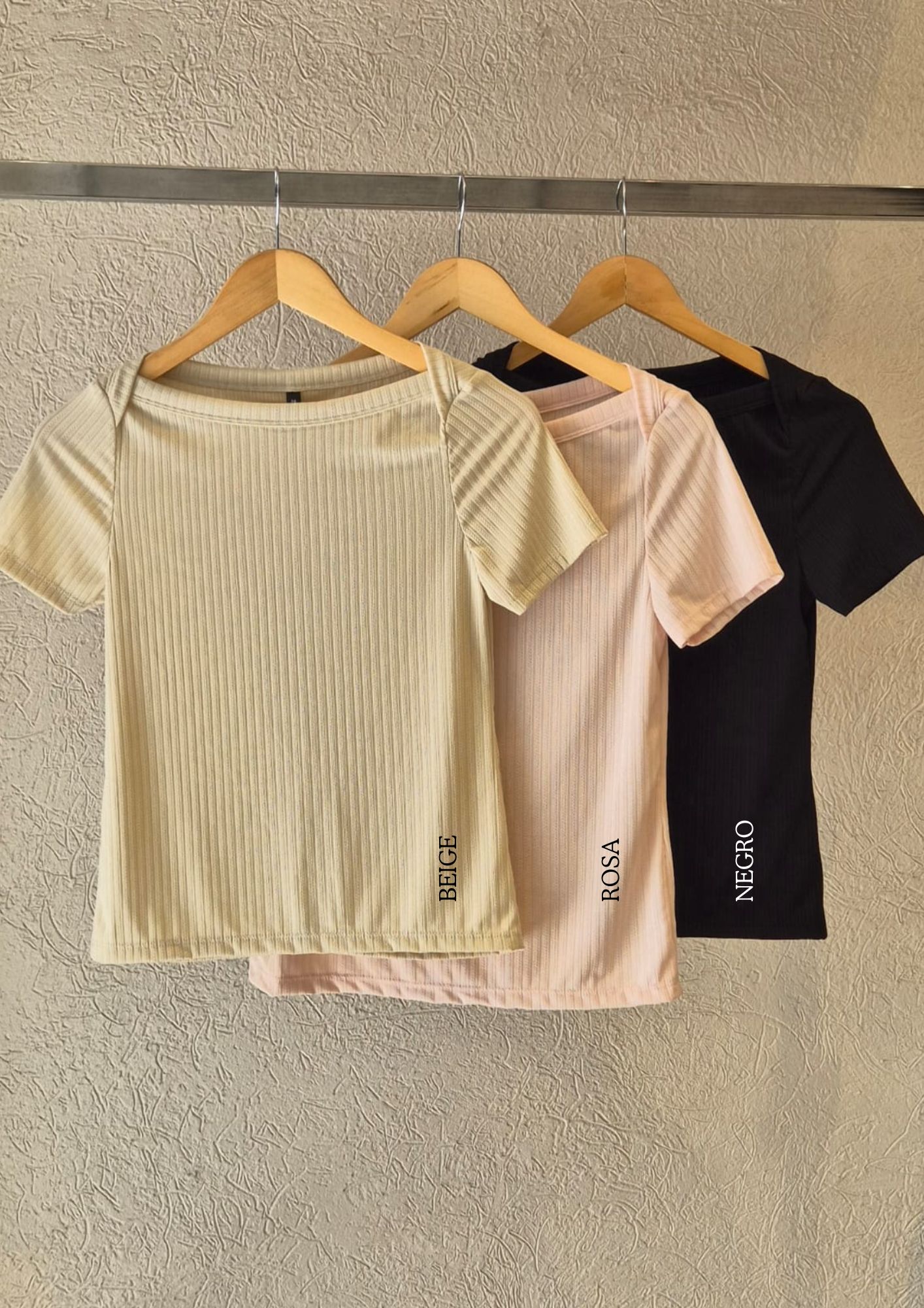 REMERA PAULINA CUELLO BOTE MANGAS CORTAS / TALLES M Y L