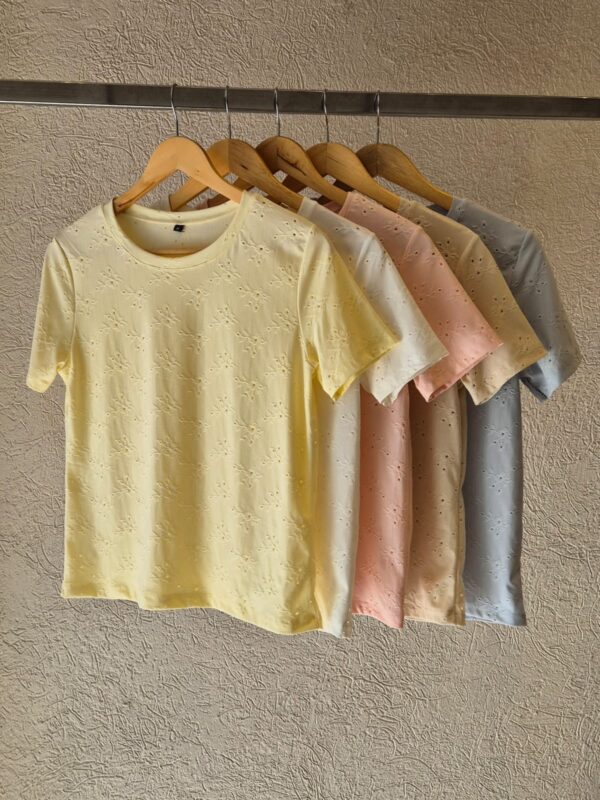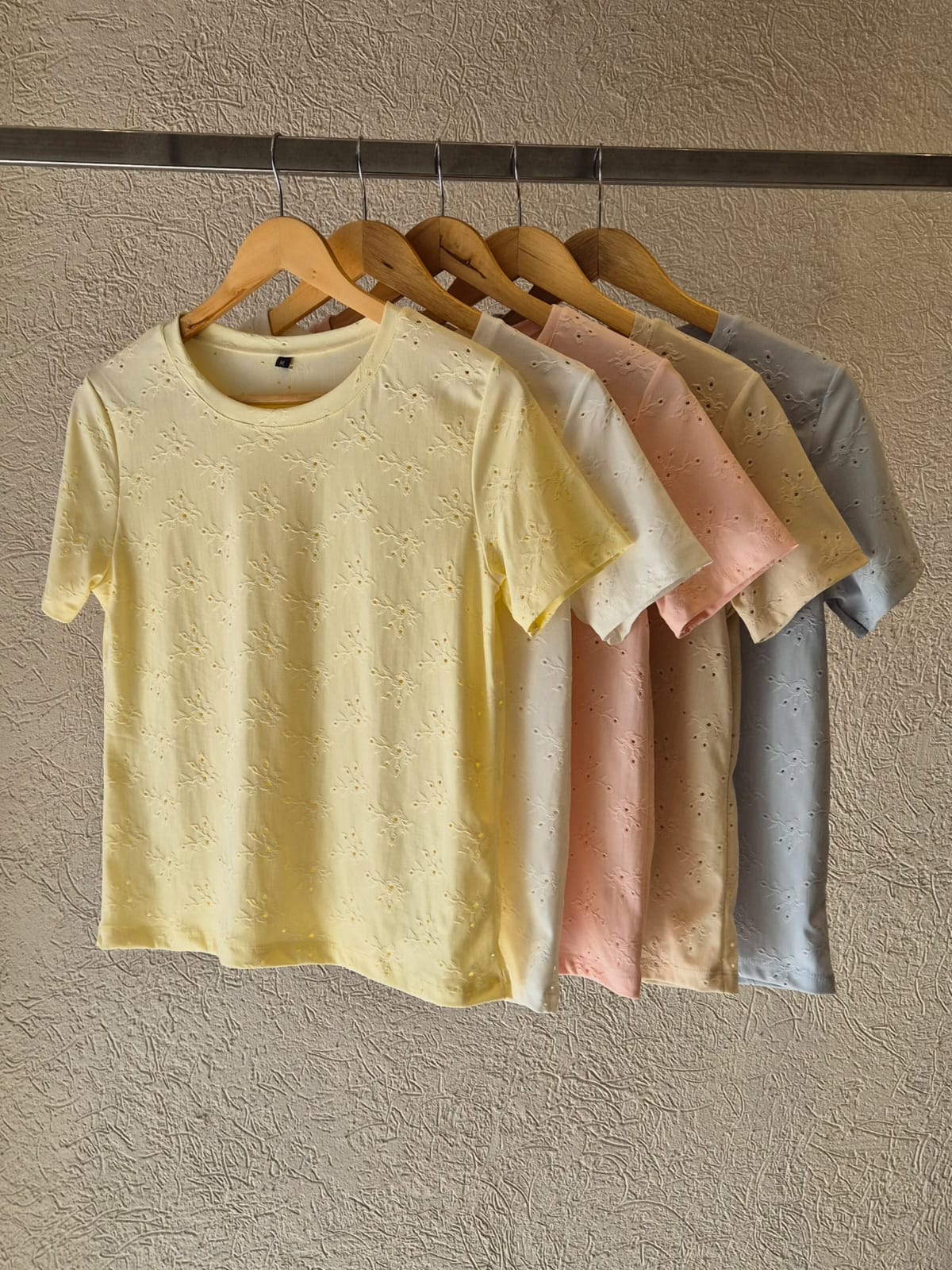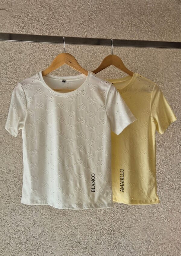 REMERA ARIA CUELLO REDONDO MANGAS CORTAS CON DETALLE DE BORDADO EN FRENTE / TALLES M Y L
