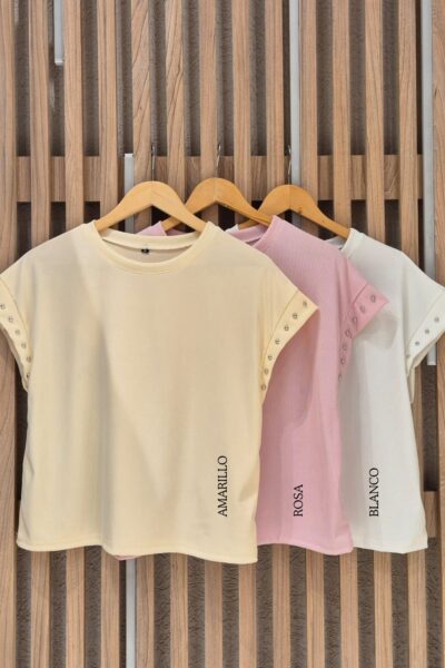 REMERA MARTINA CUELLO REDONDO MANGA JAPONESA CON DETALLE DE TACHAS / TALLES M Y L