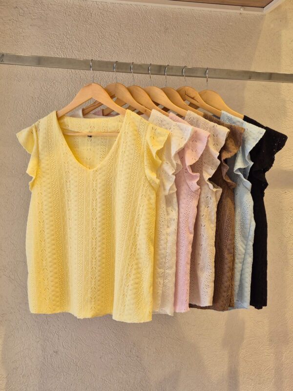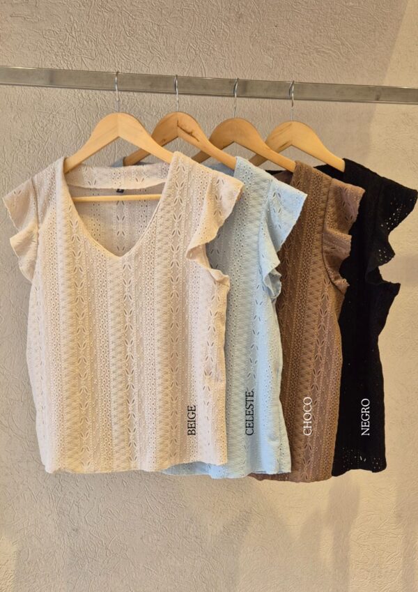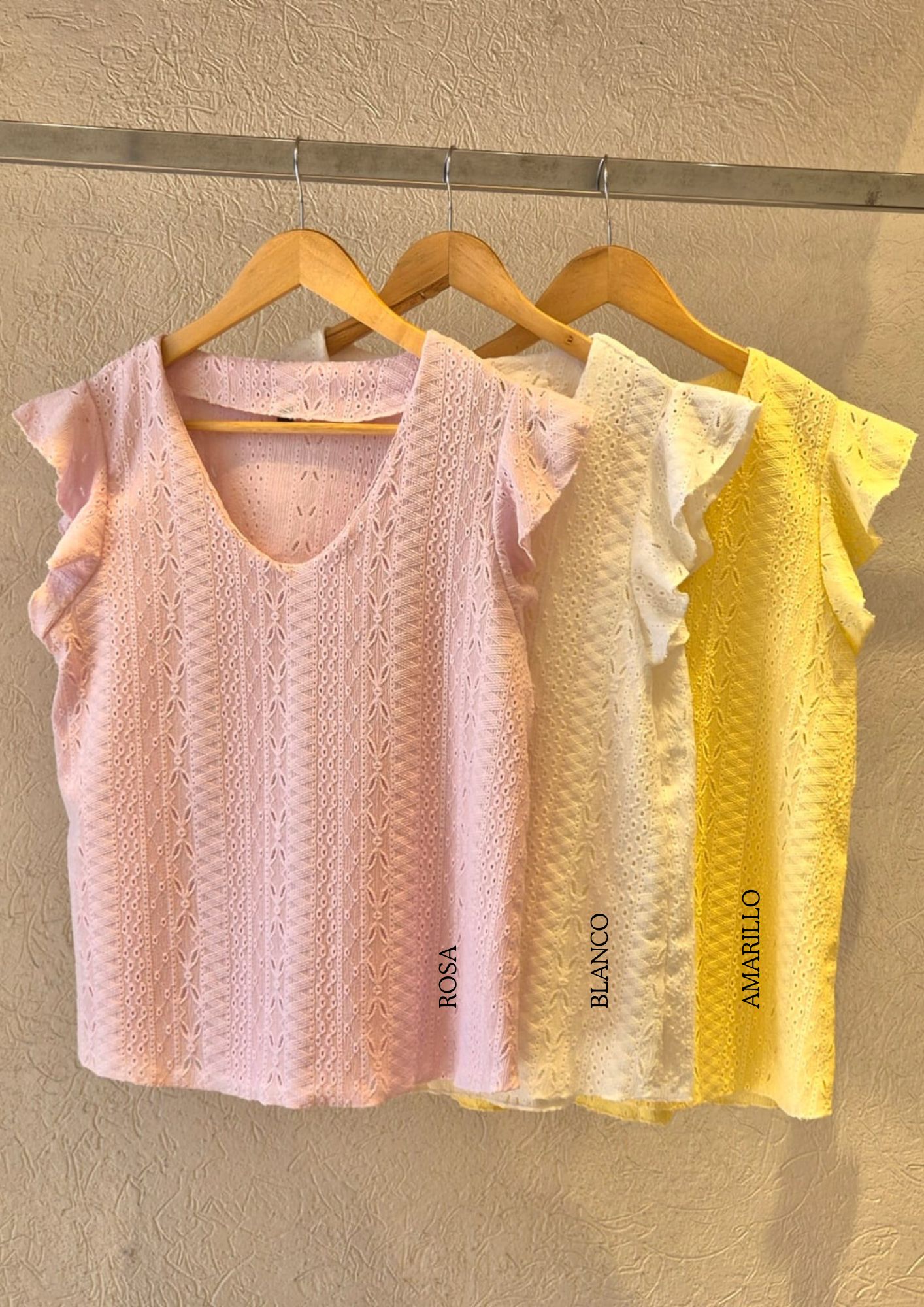 REMERA YURI CUELLO V CON VOLADO EN MANGA / TALLES M Y L