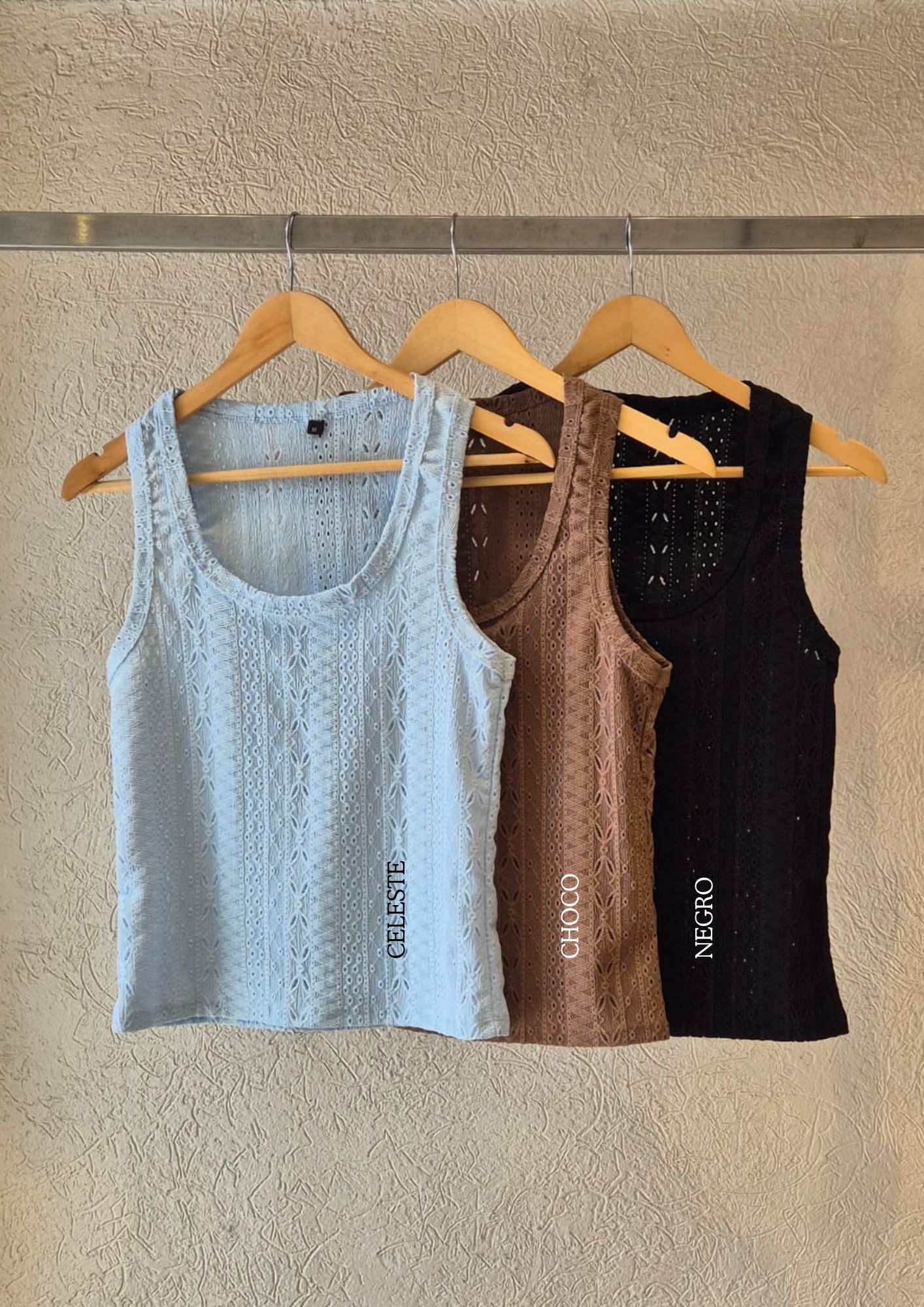 MUSCULOSA CAROL CUELLO REDONDO CON TRAMADO / TALLES M Y L