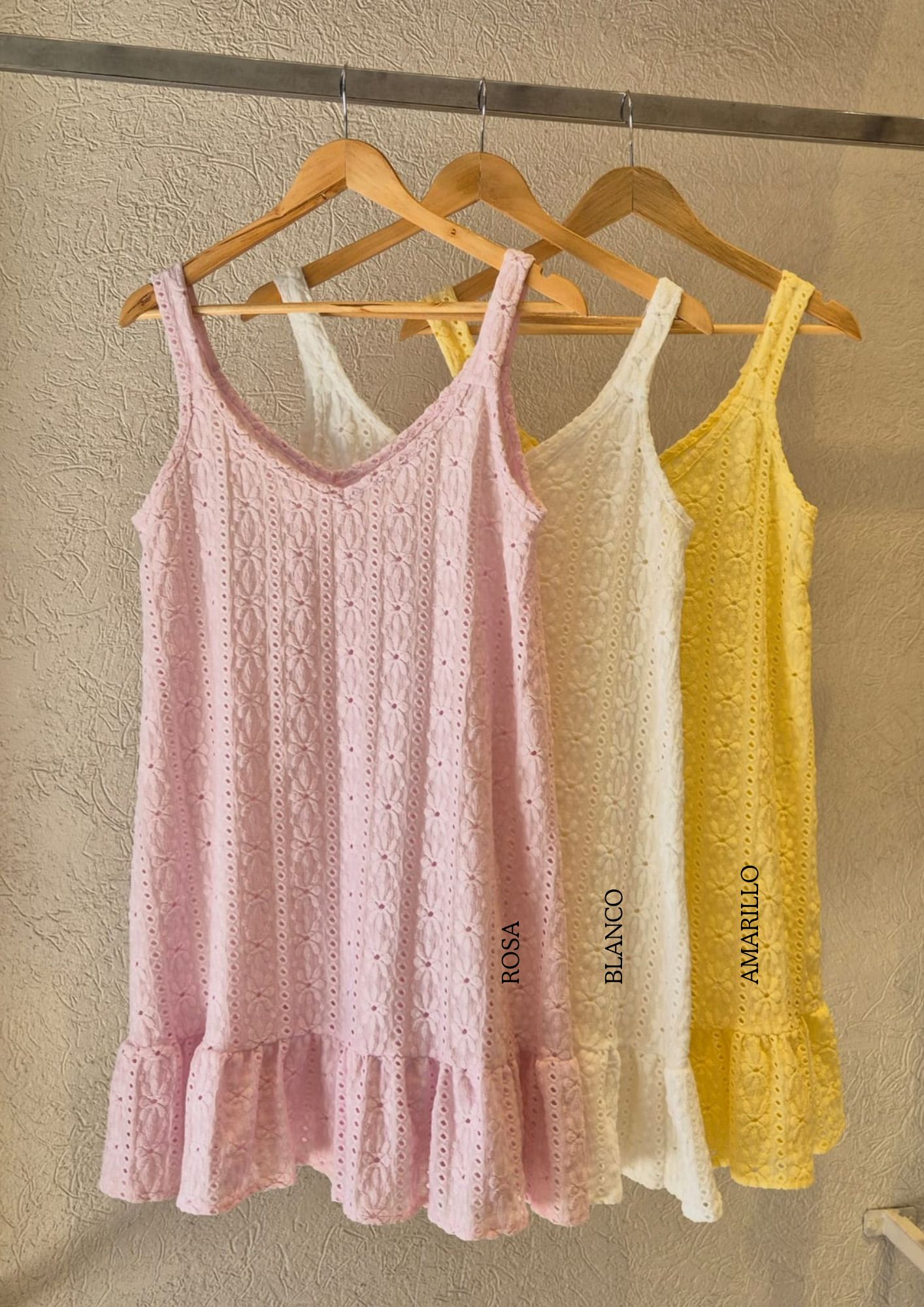 VESTIDO RENATA CUELLO Y ESPALDA EN V CON TIRAS Y VOLADOS / TALLES M Y L