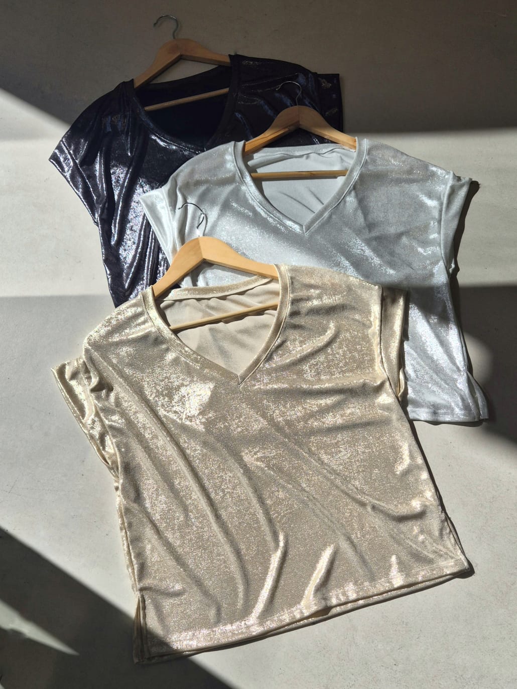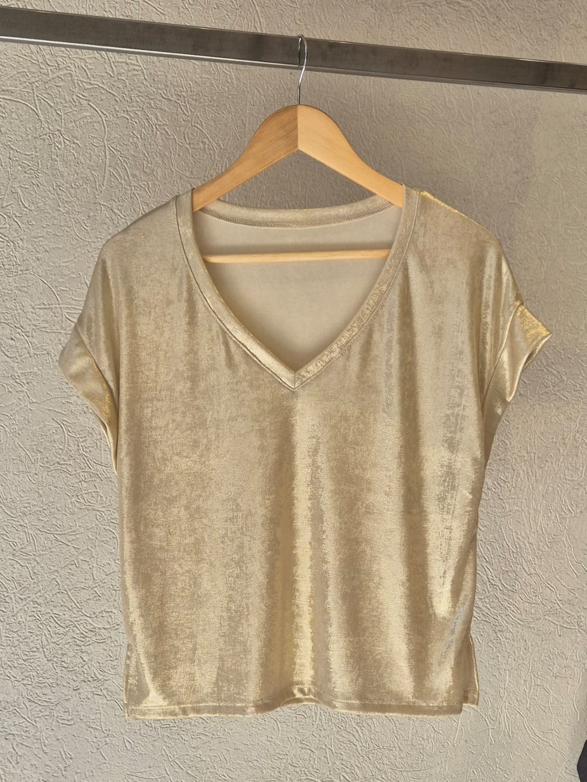 REMERA MOLLY CUELLO V HOMBRO CAIDO CON DETALLE DE TAJOS A LOS COSTADOS / TALLE UNICO