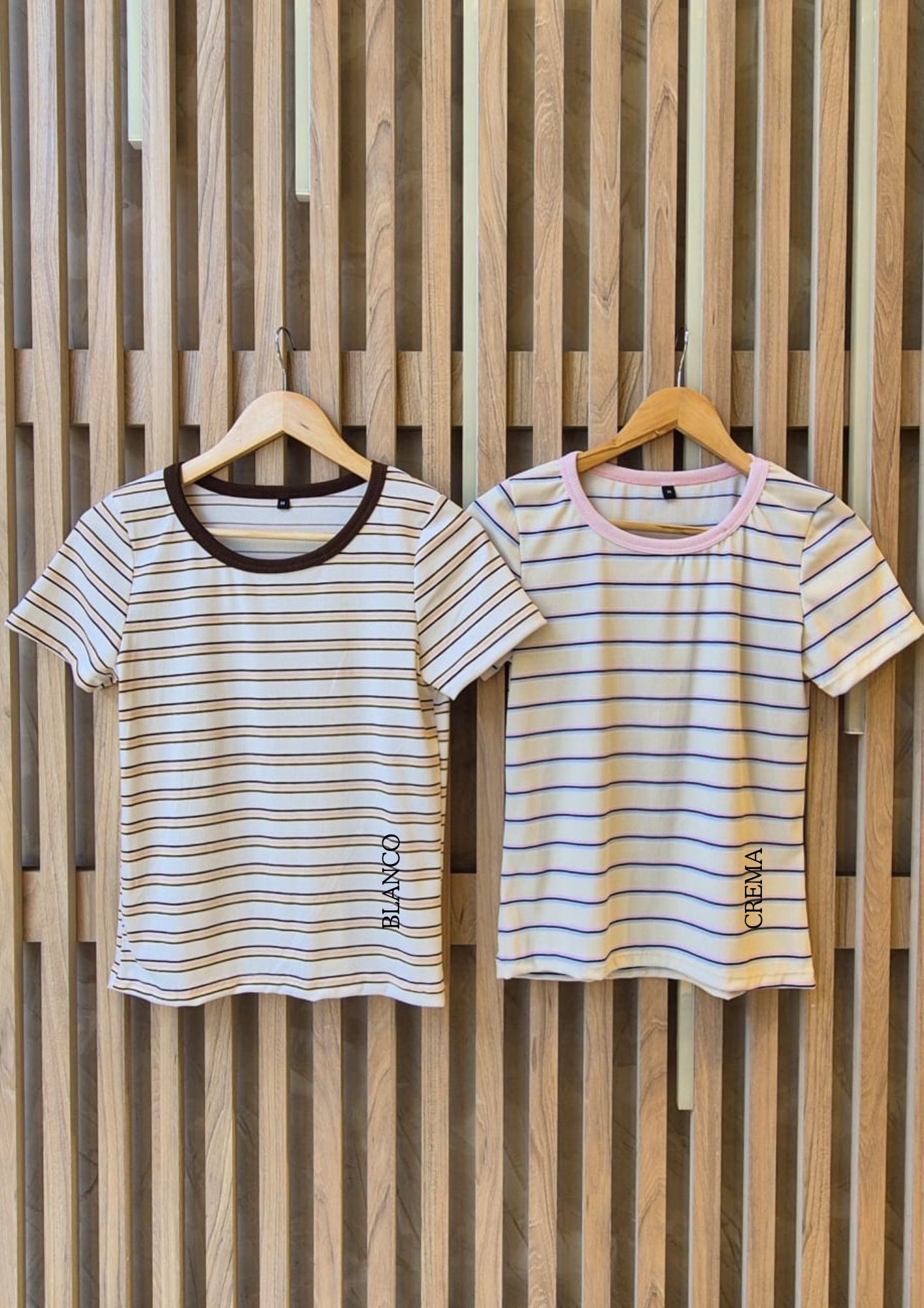REMERA MONI MANGAS CORTAS CON CUELLO U / TALLES M Y L