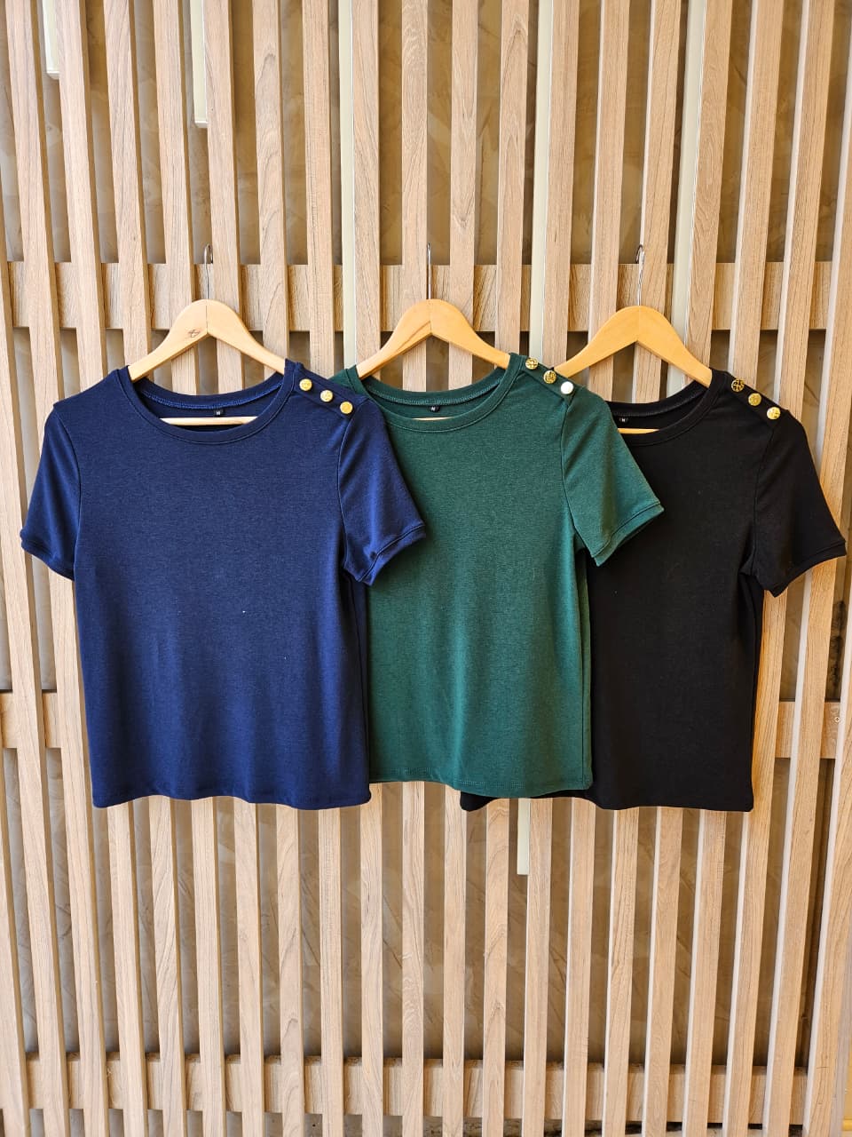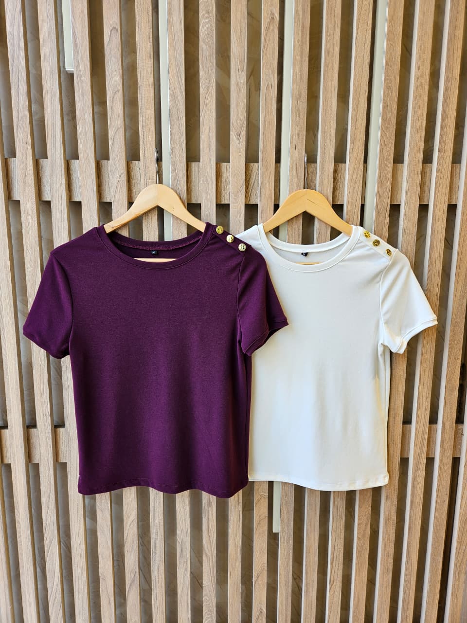 REMERA HALLY CON CUELLO REDONDO Y DETALLE DE BOTONES EN HOMBRO/ TALLES M Y L