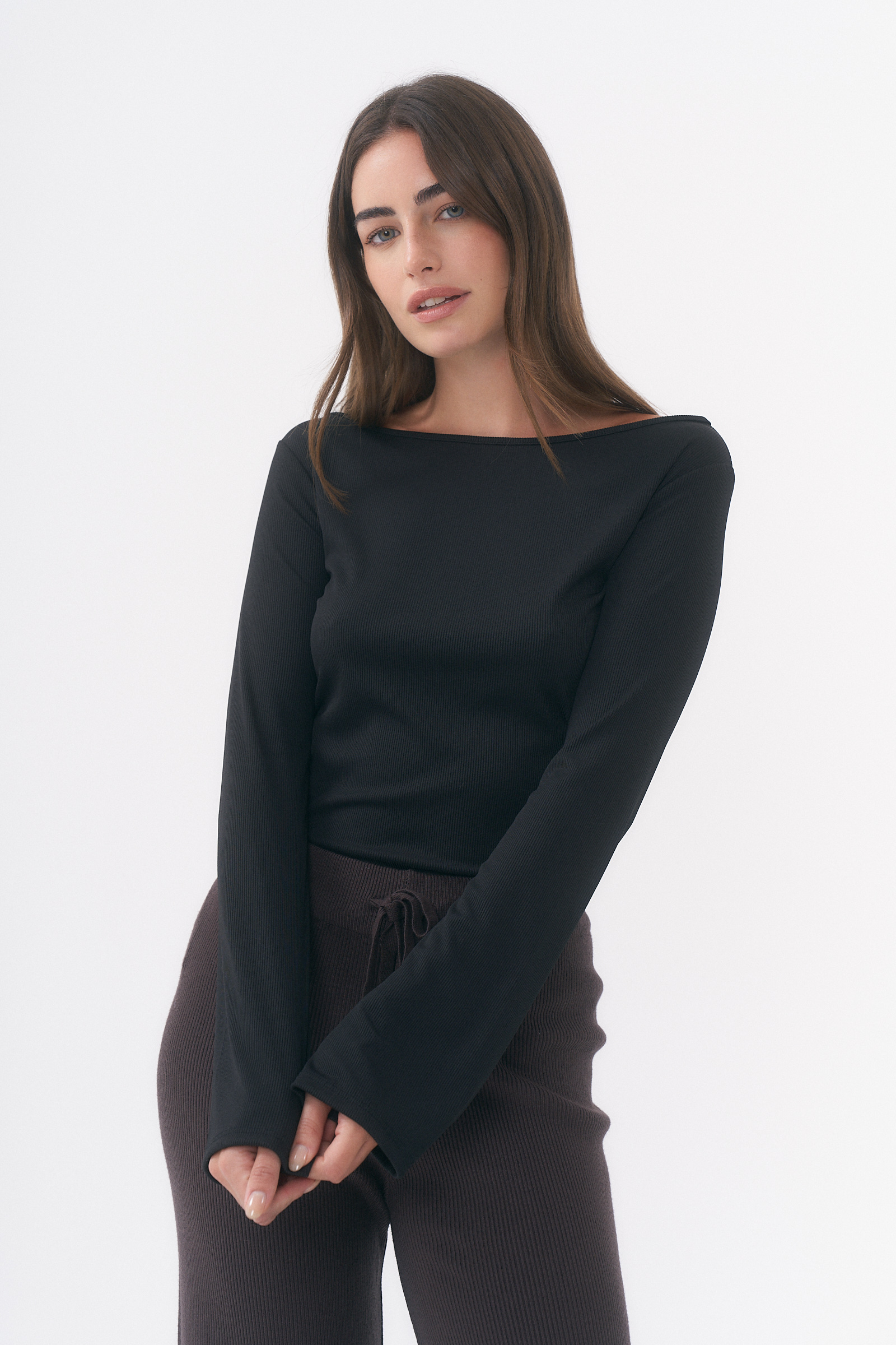 CAMISETA DAIANA MANGA LARGA CON CUELLO REDODNO ABIERTO / TALLES M y L