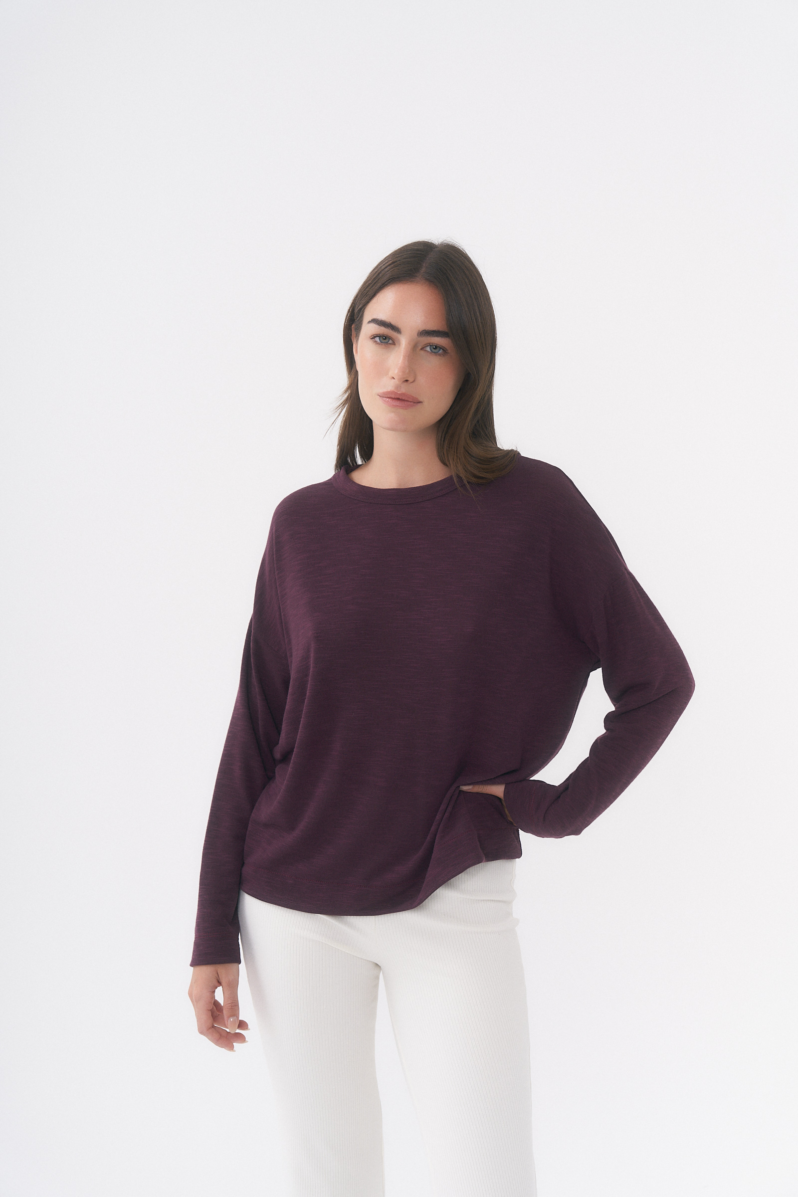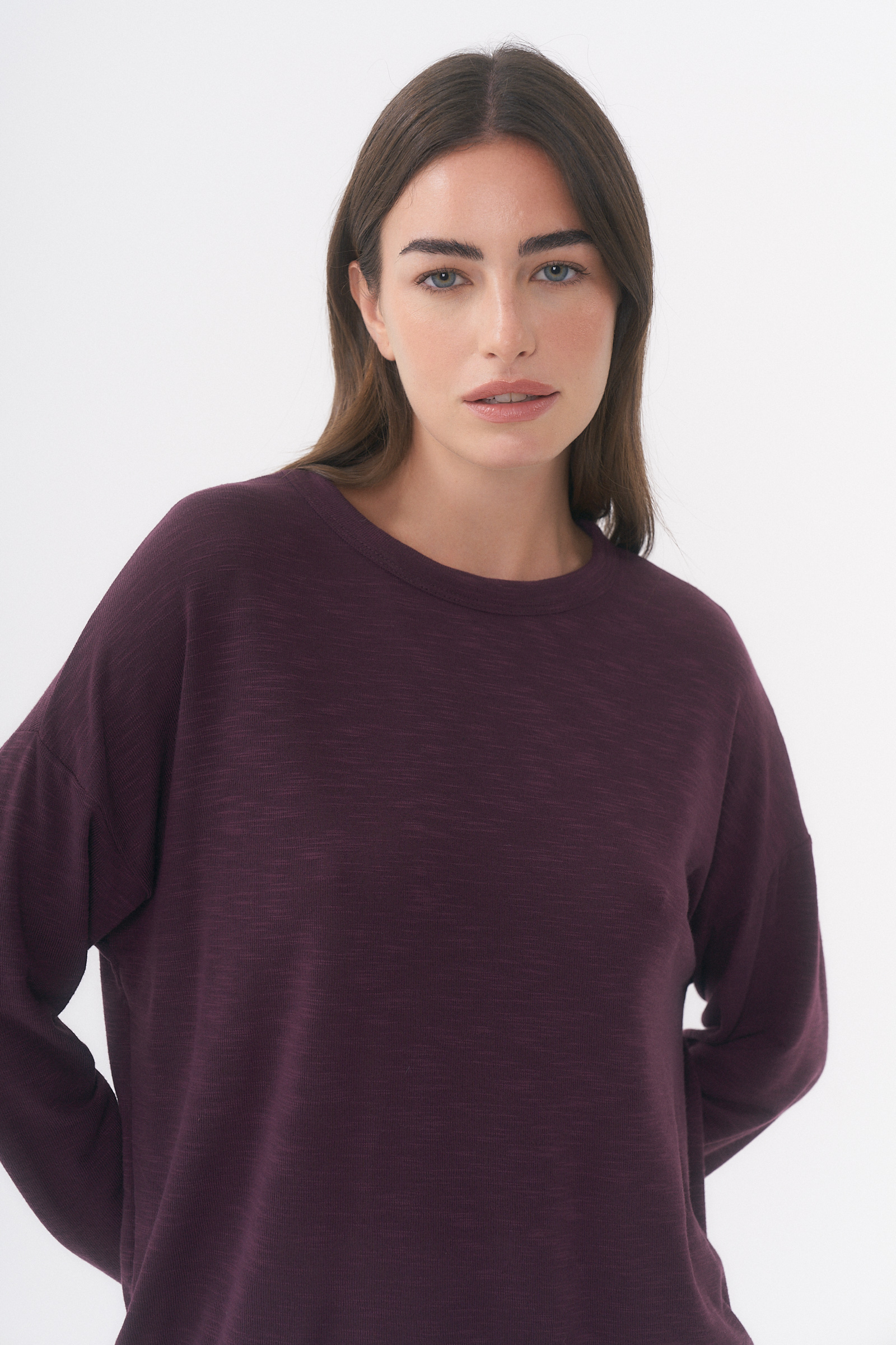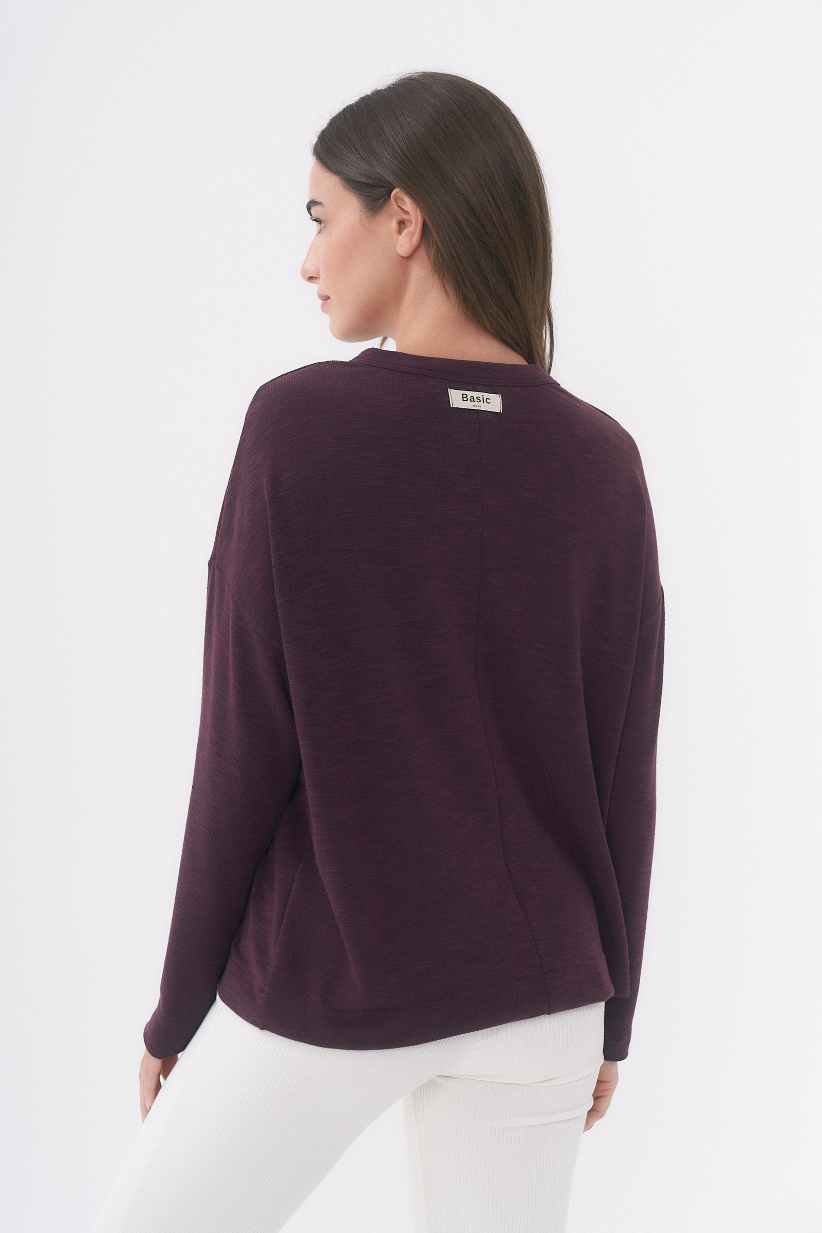 Remera manga larga con detalle de etiqueta en espalda / Talle único