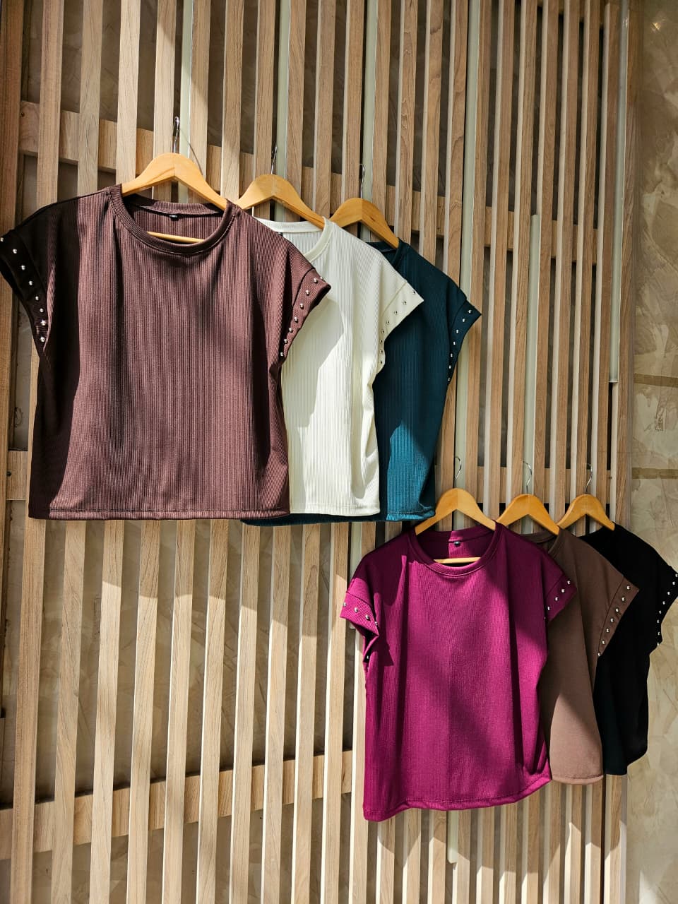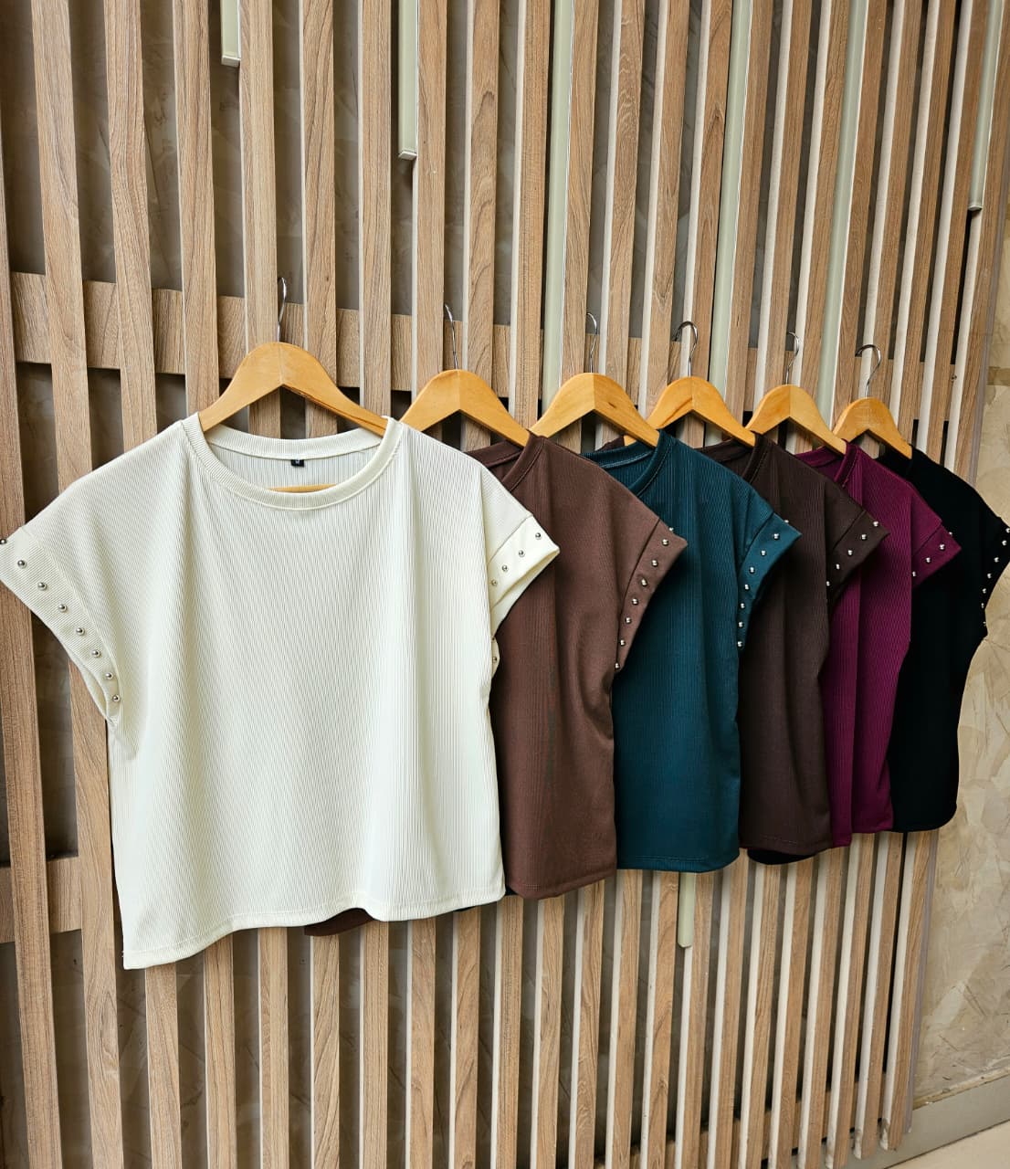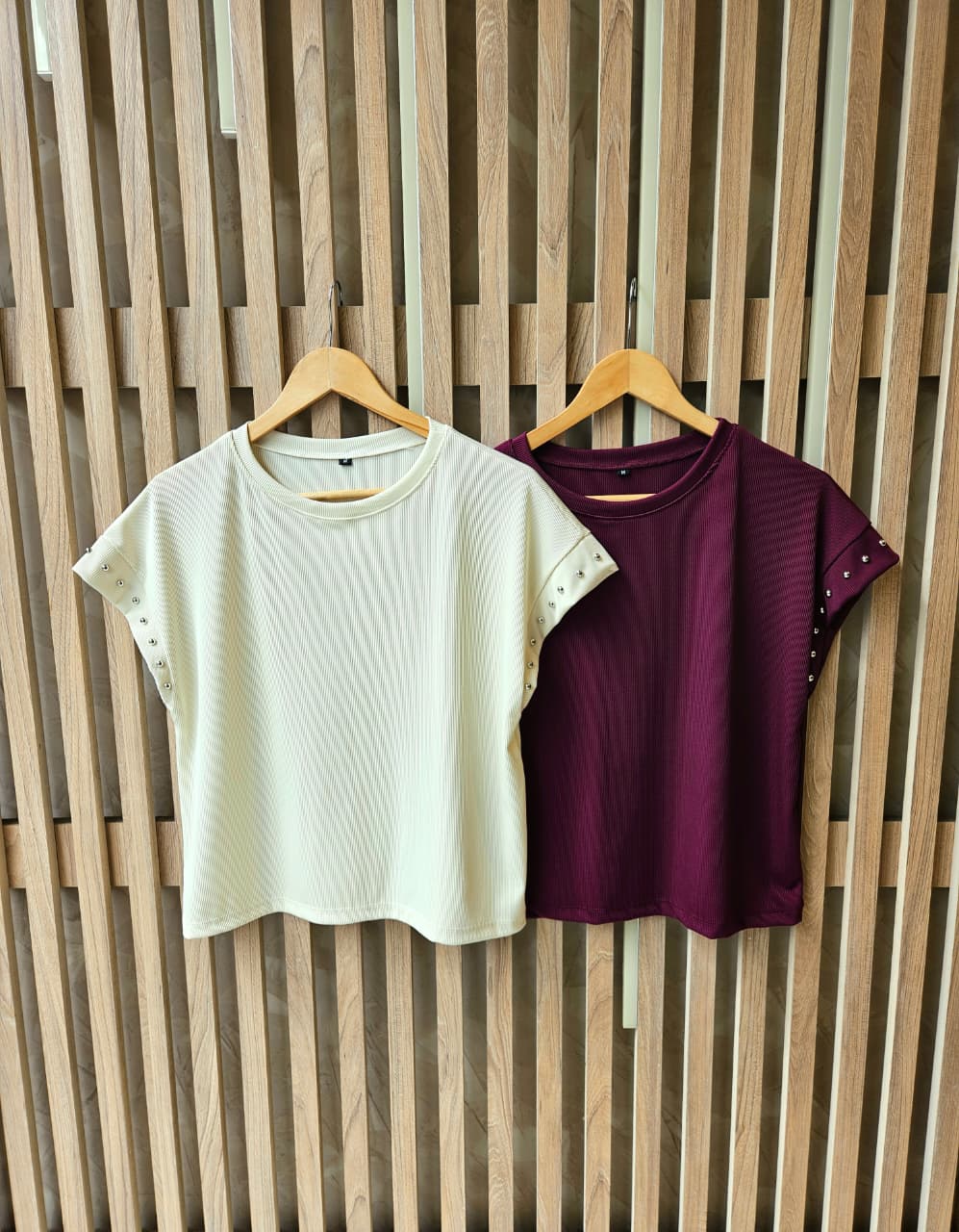 REMERA MARTINA CUELLO REDONDO MANGA JAPONESA CON DETALLE DE TACHAS / TALLES M Y L