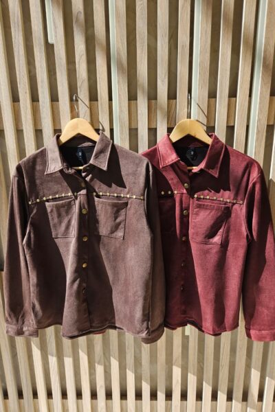 $32,000.00CAMISA GAMUZADA CON DETALLE DE TACHAS DORADAS / TALLES M Y L