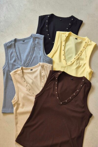 $8,500.00MUSCULOSA NAYLA CUELLO REDONDO CON DETALLE DE TACHAS EN SISA / TALLES M Y L