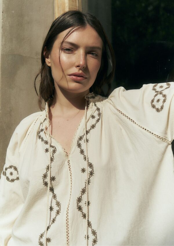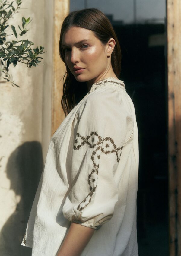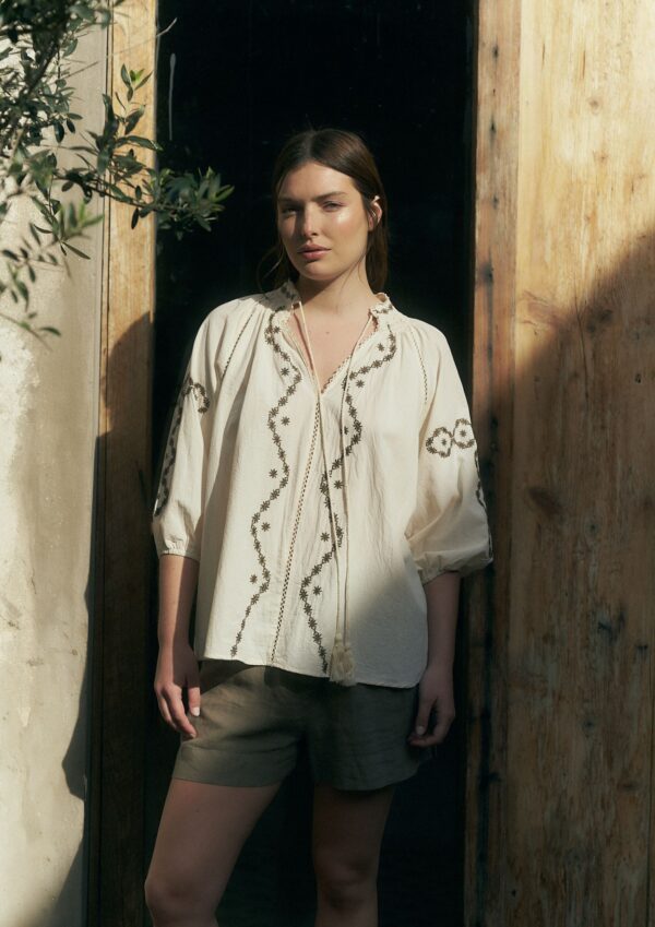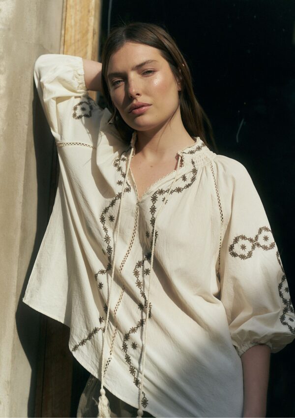 BLUSA AMBER CUELLO V CON DETALLE DE BORDADO (IMPORTADO) / TALLE ÚNICO
