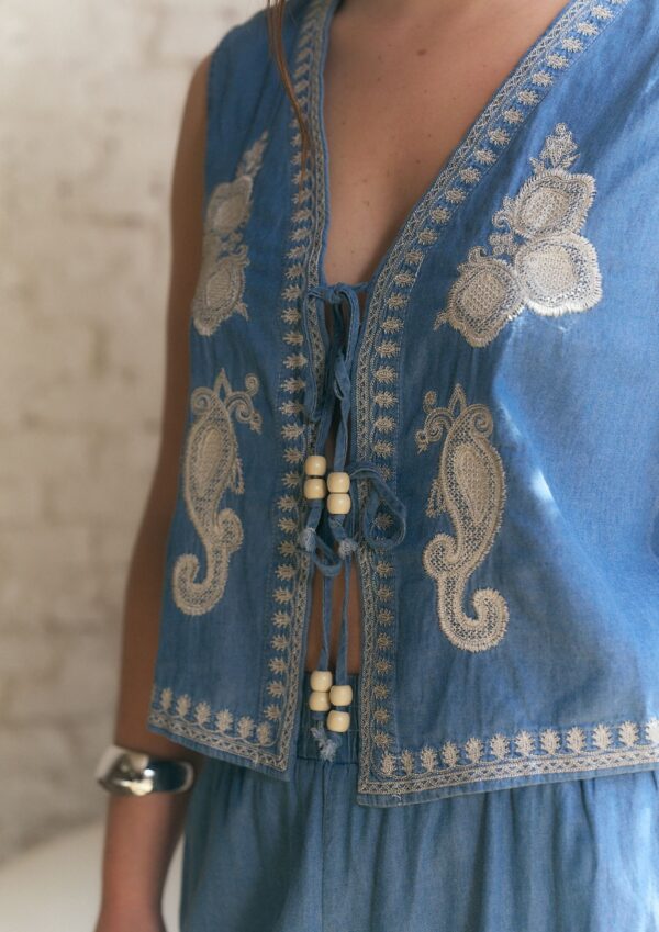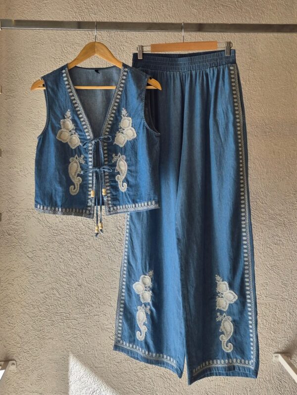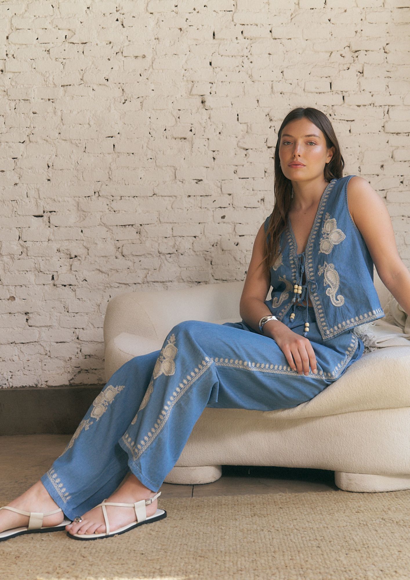 CONJUNTO ZOE (INCLUYE CHALECO Y PALAZZO).DETALLES DE BORDADO (IMPORTADO) / TALLES M Y L