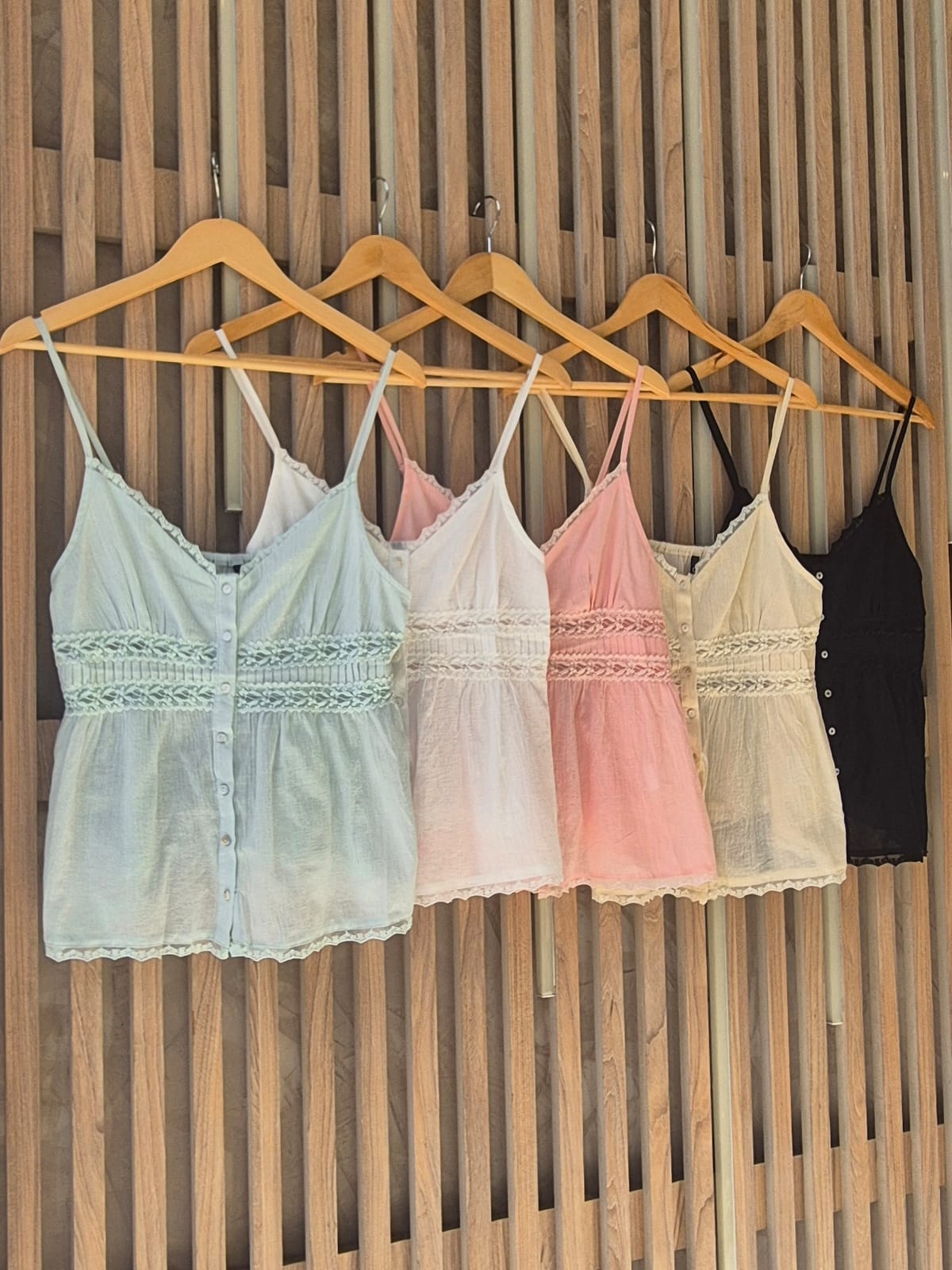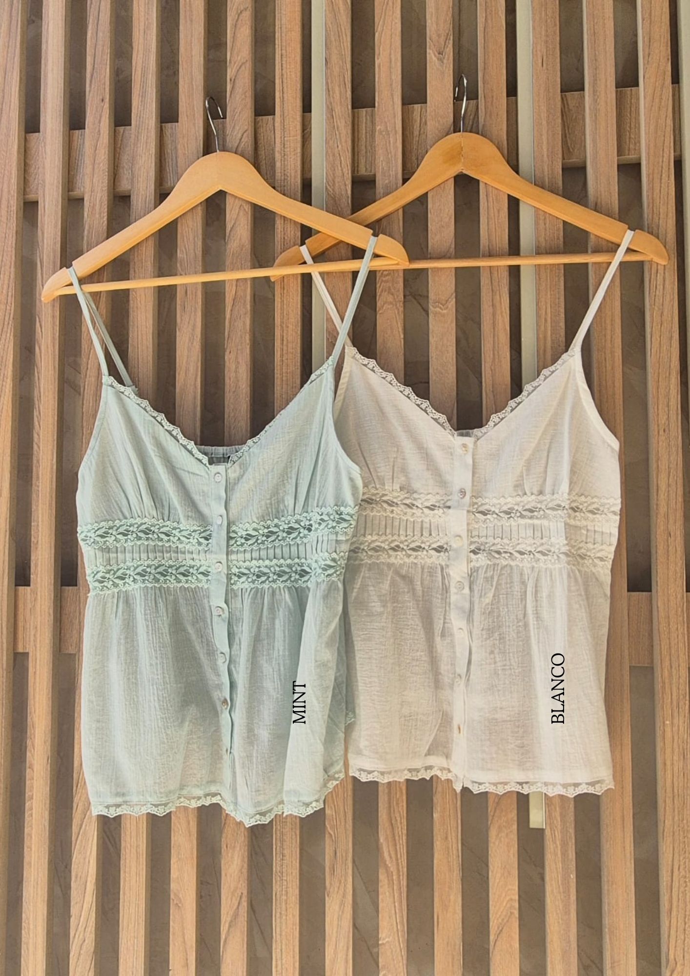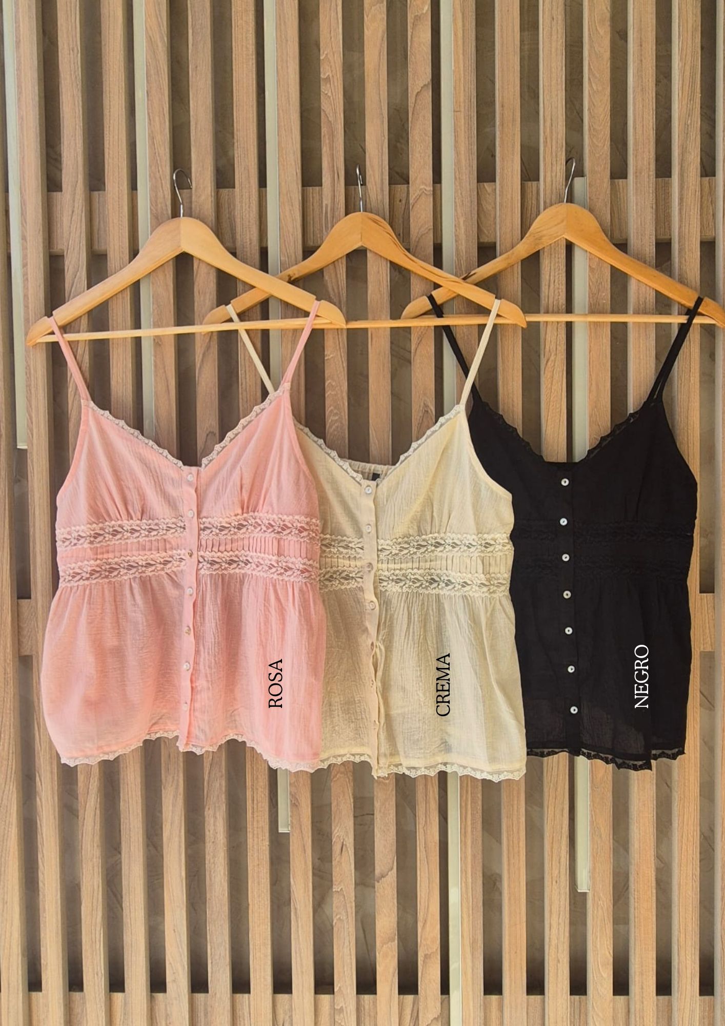MUSCULOSA JANYS CUELLO V CON BOTONES Y DETALLES DE PUNTILLA, BRETEL REGULABLE (IMPORTADO) / TALLES M Y L