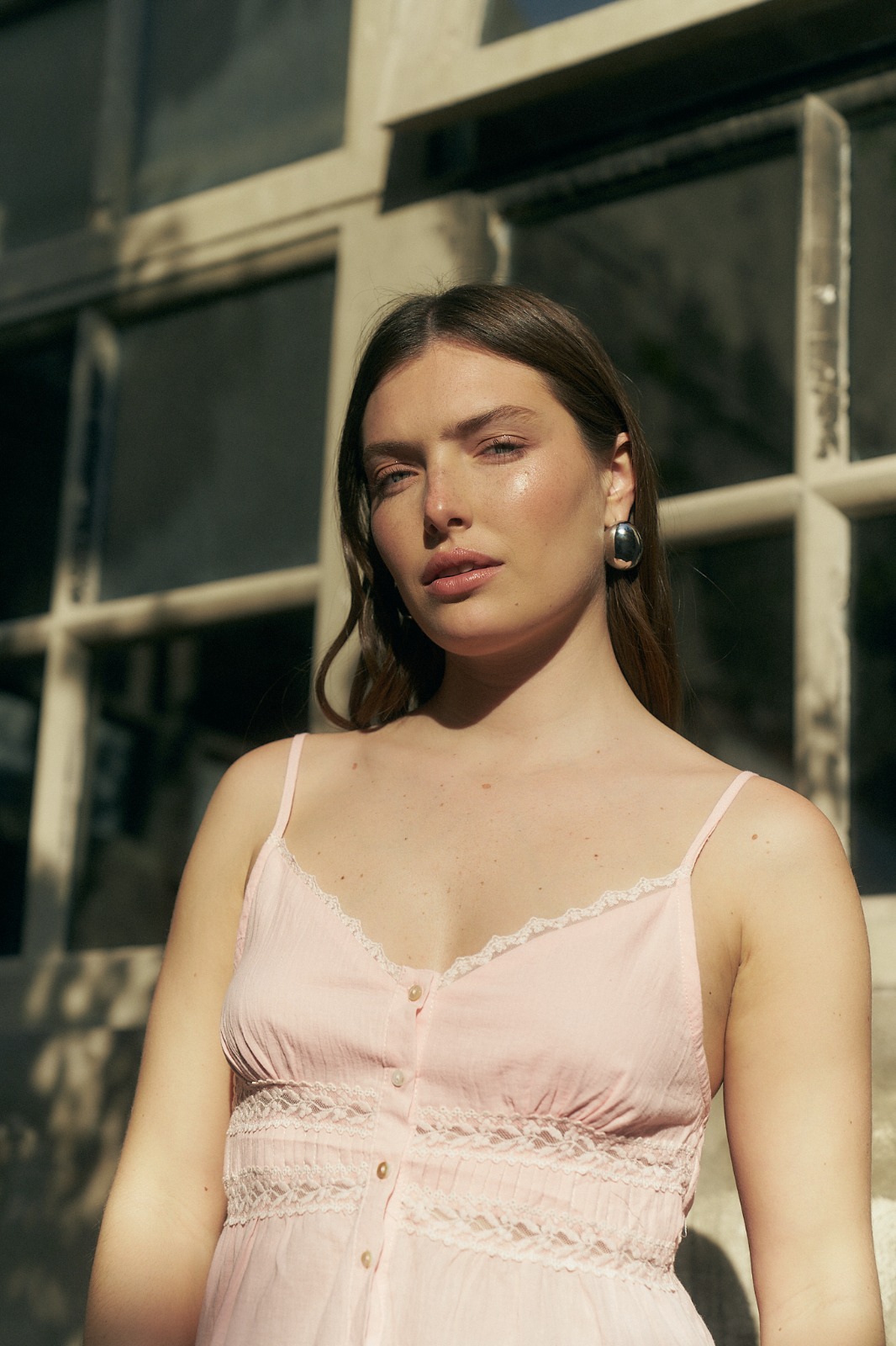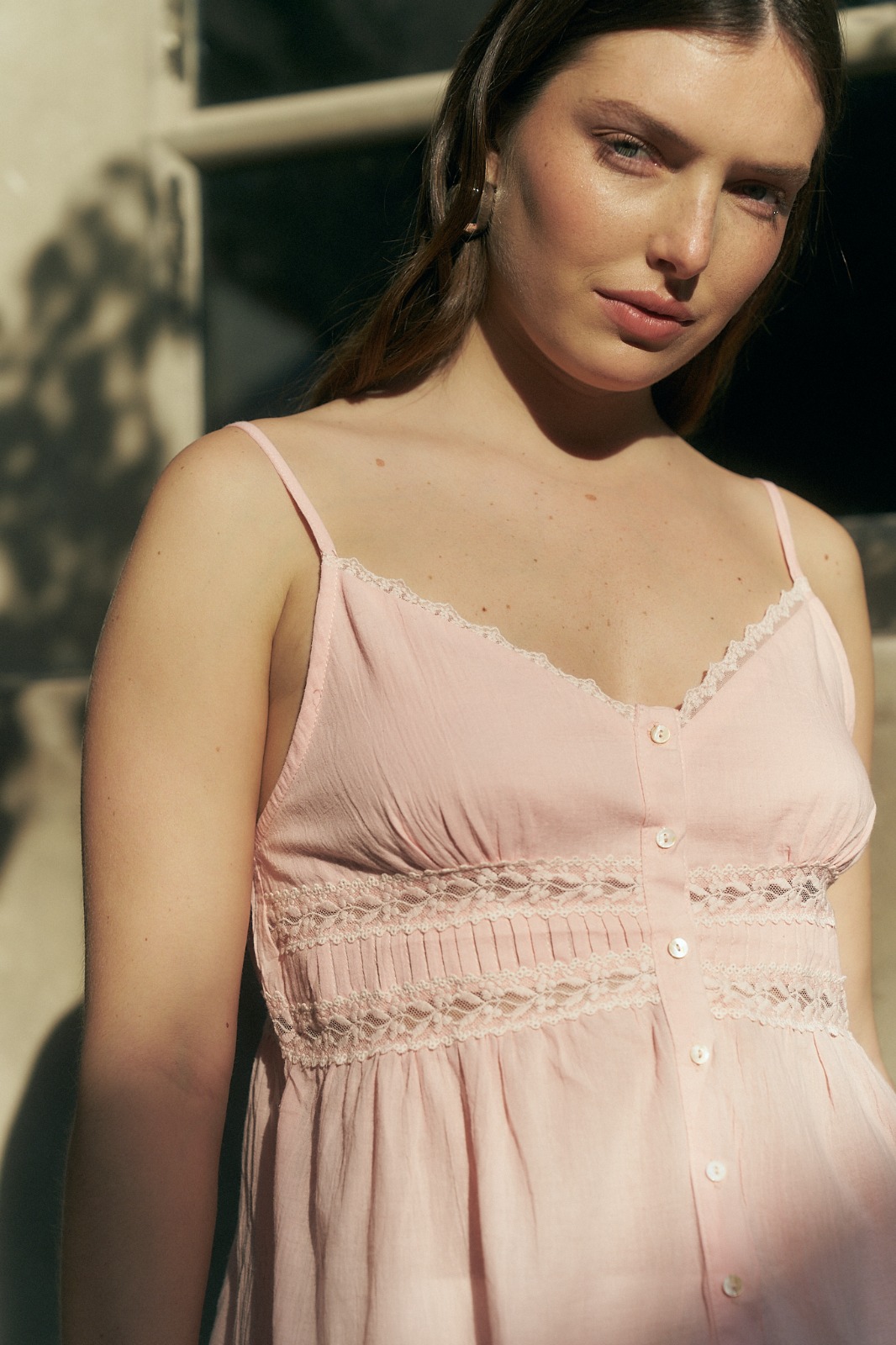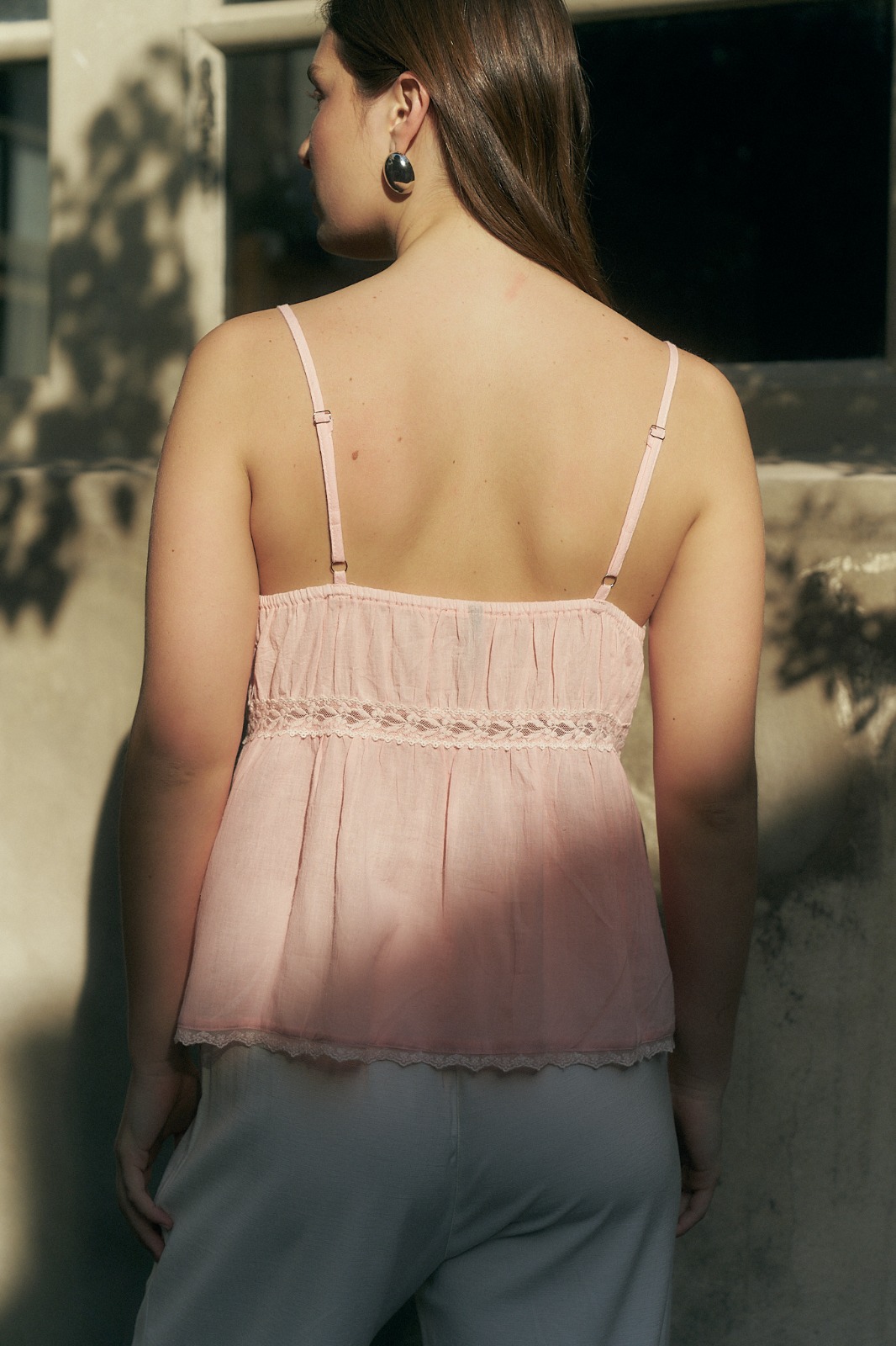 MUSCULOSA JANYS CUELLO V CON BOTONES Y DETALLES DE PUNTILLA, BRETEL REGULABLE (IMPORTADO) / TALLES M Y L
