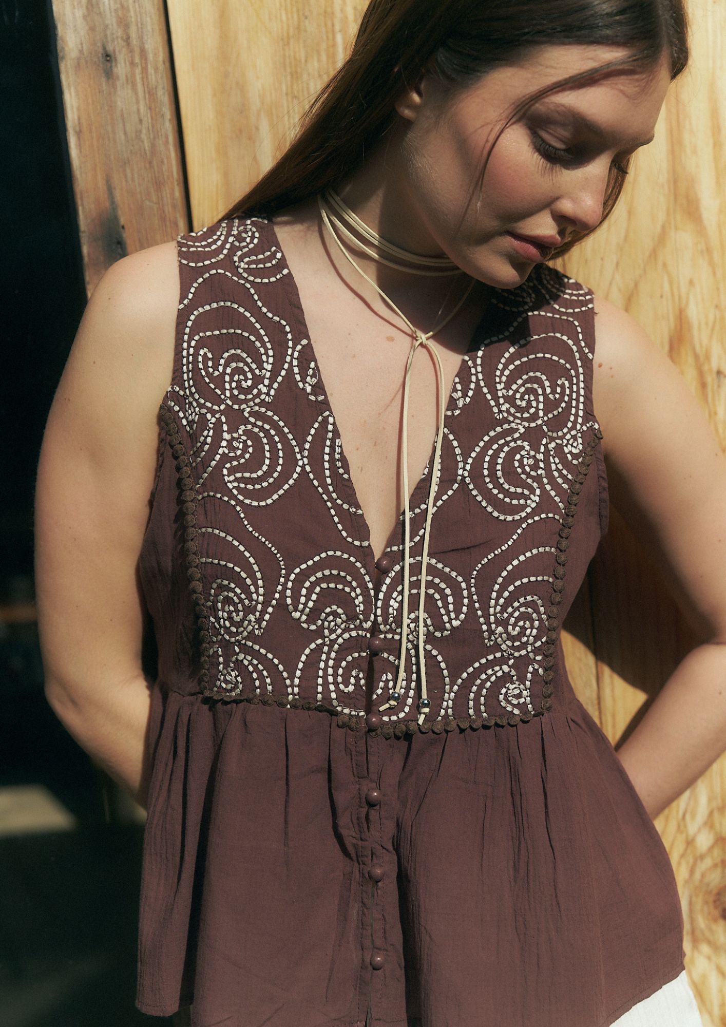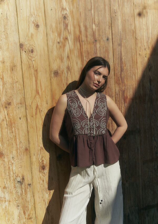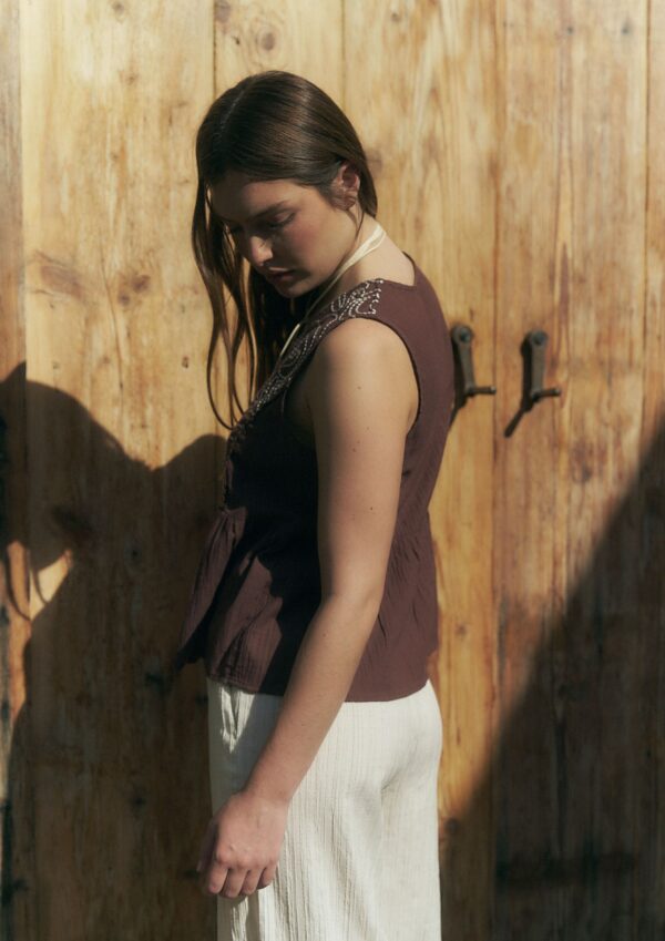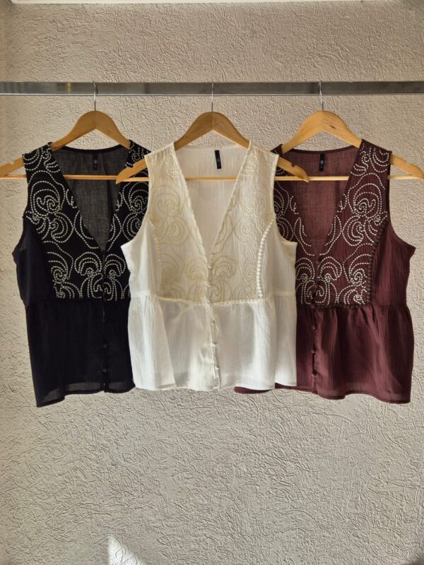 BLUSA DE LINO BORDADO CON LENTEJUELAS (IMPORTADO) / TALLES M Y L