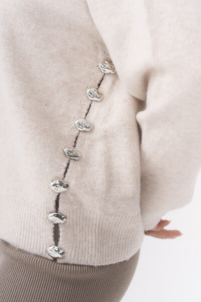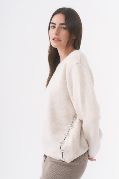 SWEATER CON CUELLO REDONDO Y TAJOS LATERALES (IDEALES PARA BRINDAR MAYOR MOVIMIENTO Y UNA CAÍDA MÁS FLUIDA AL CUERPO) DETALLES DE PIEDRITAS EN TAJOS / TALLE ÚNICO