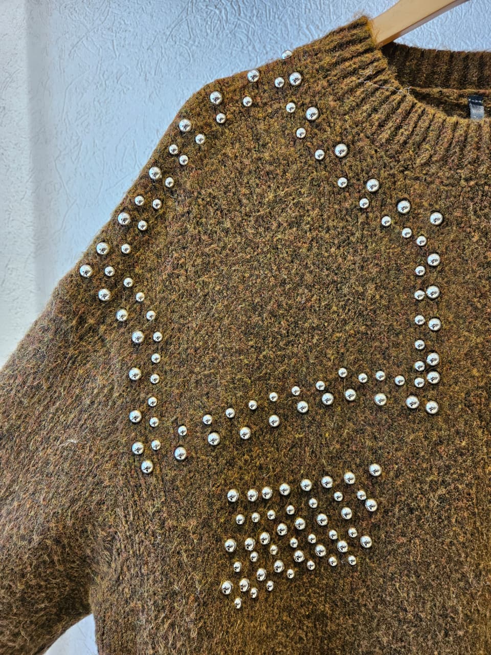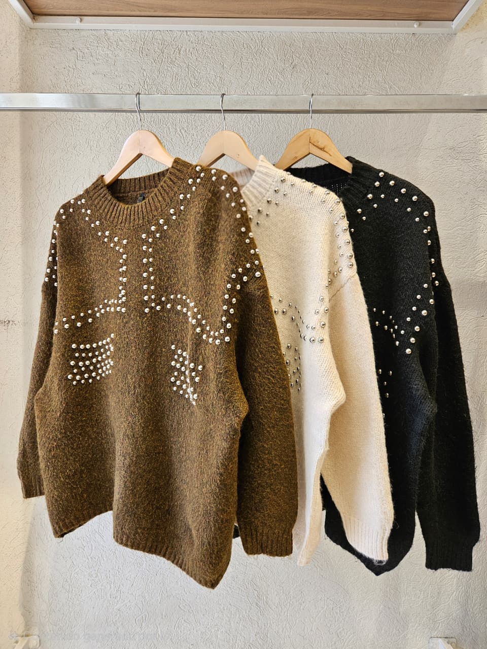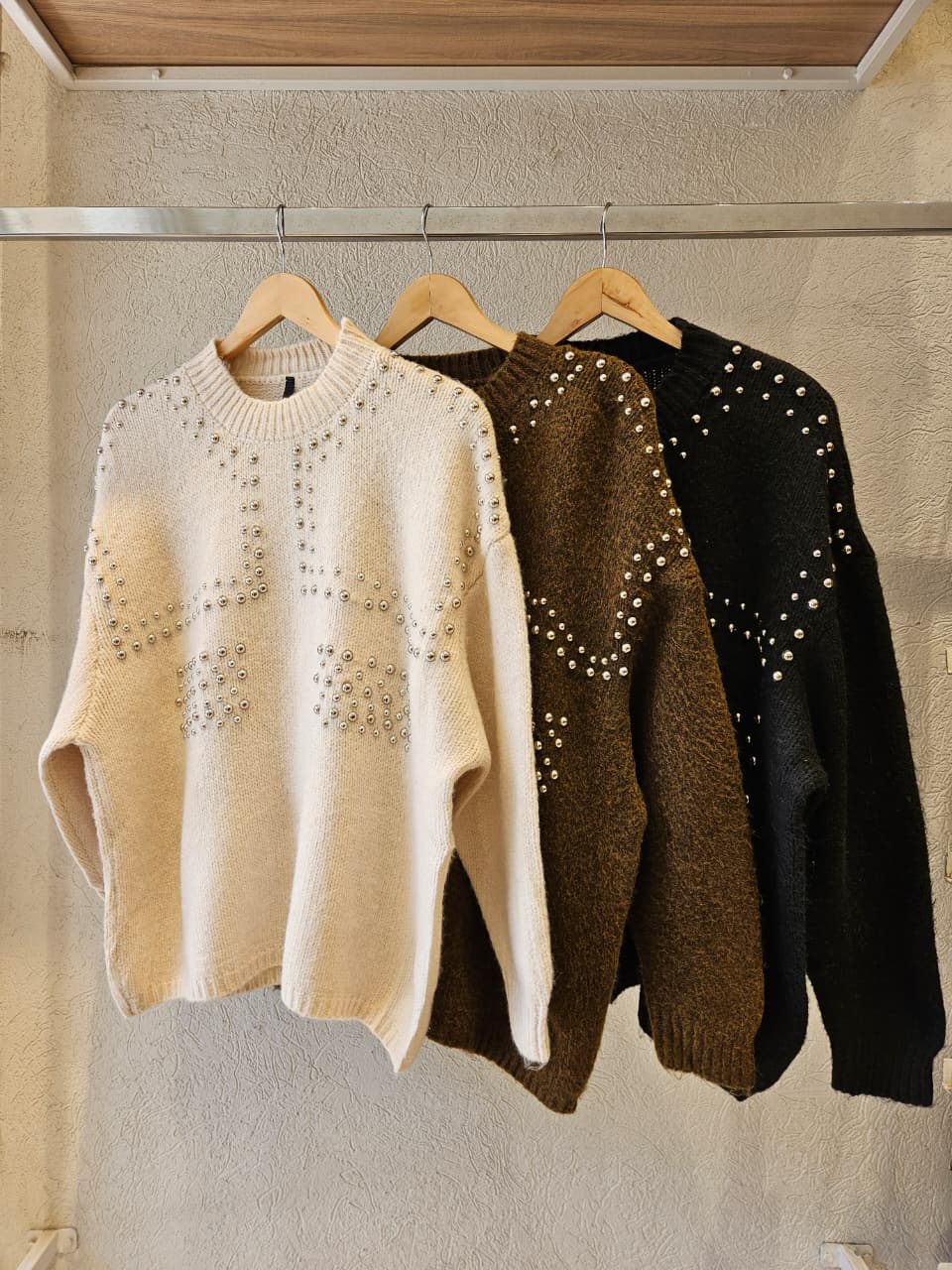 Sweater de cuello redondo. Cuenta con detalles de tachas plateadas. / Talle único