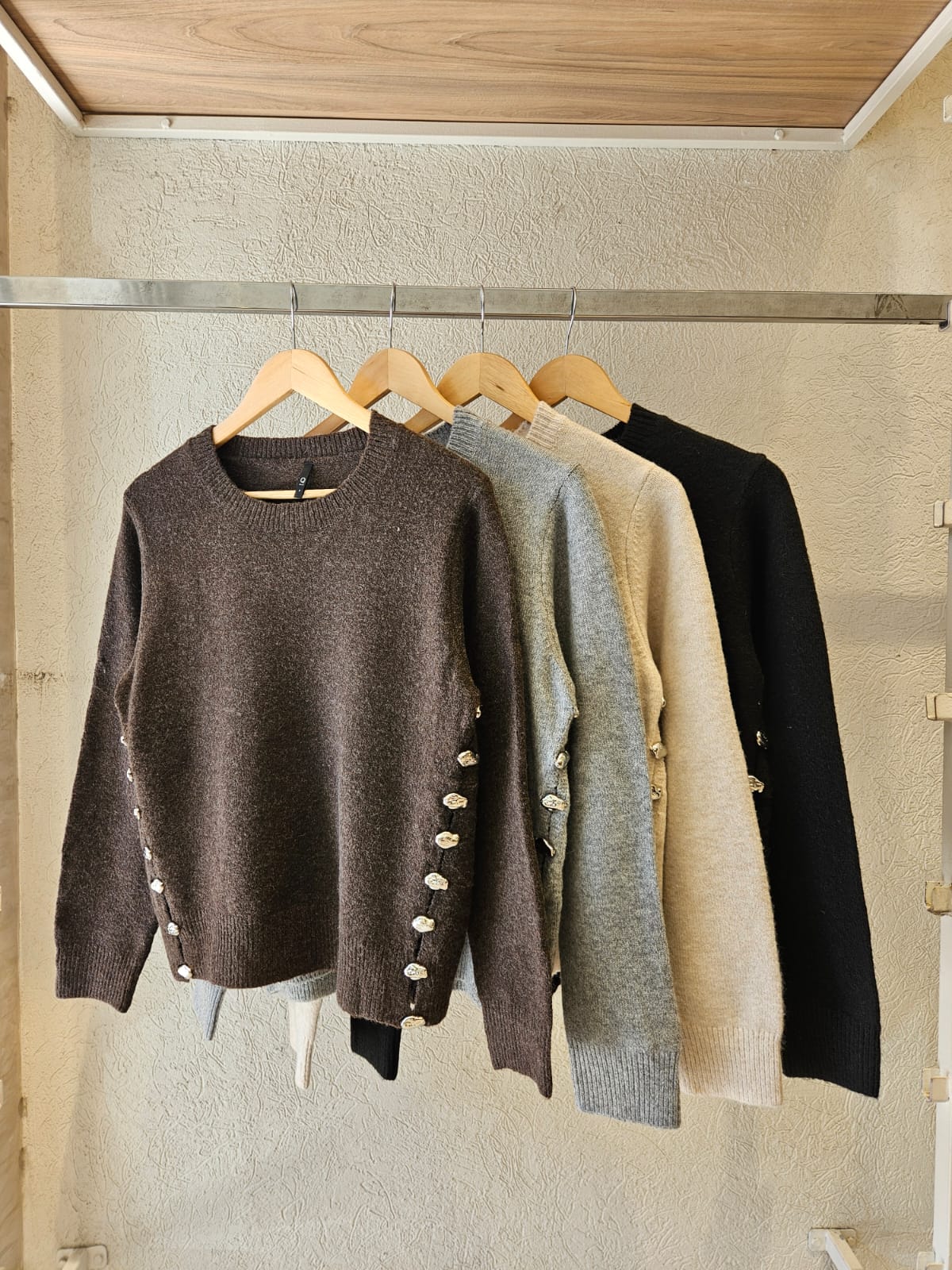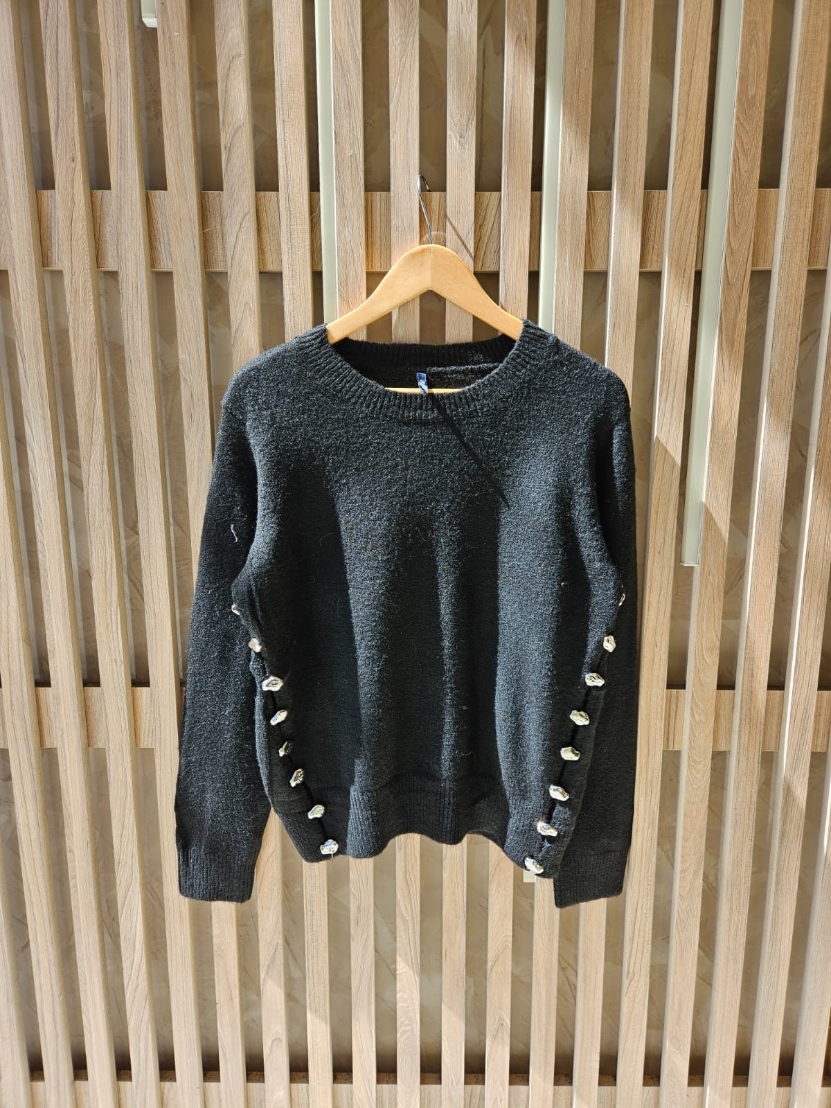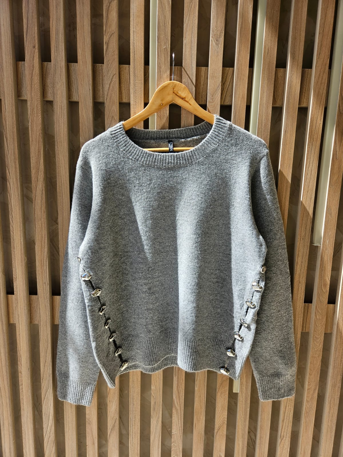 SWEATER CON CUELLO REDONDO Y TAJOS LATERALES (IDEALES PARA BRINDAR MAYOR MOVIMIENTO Y UNA CAÍDA MÁS FLUIDA AL CUERPO) DETALLES DE PIEDRITAS EN TAJOS / TALLE ÚNICO