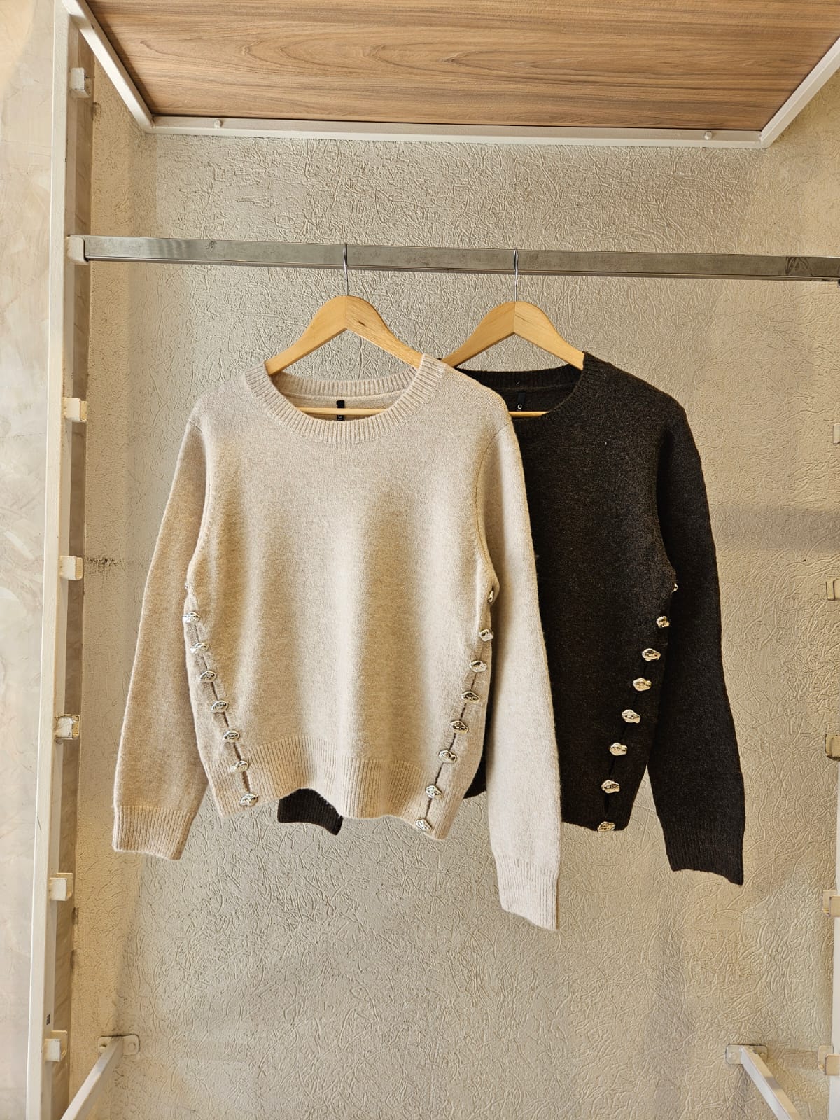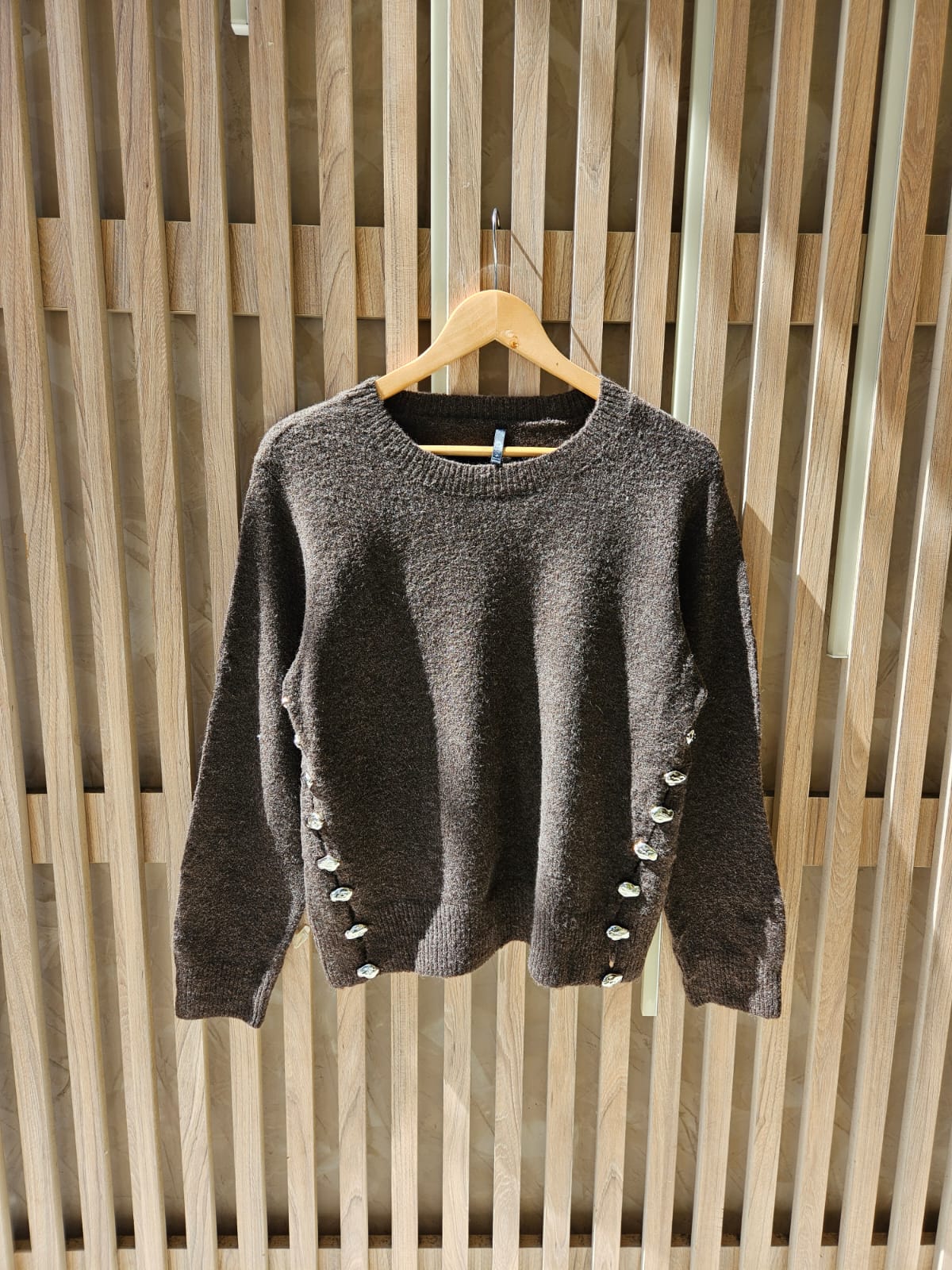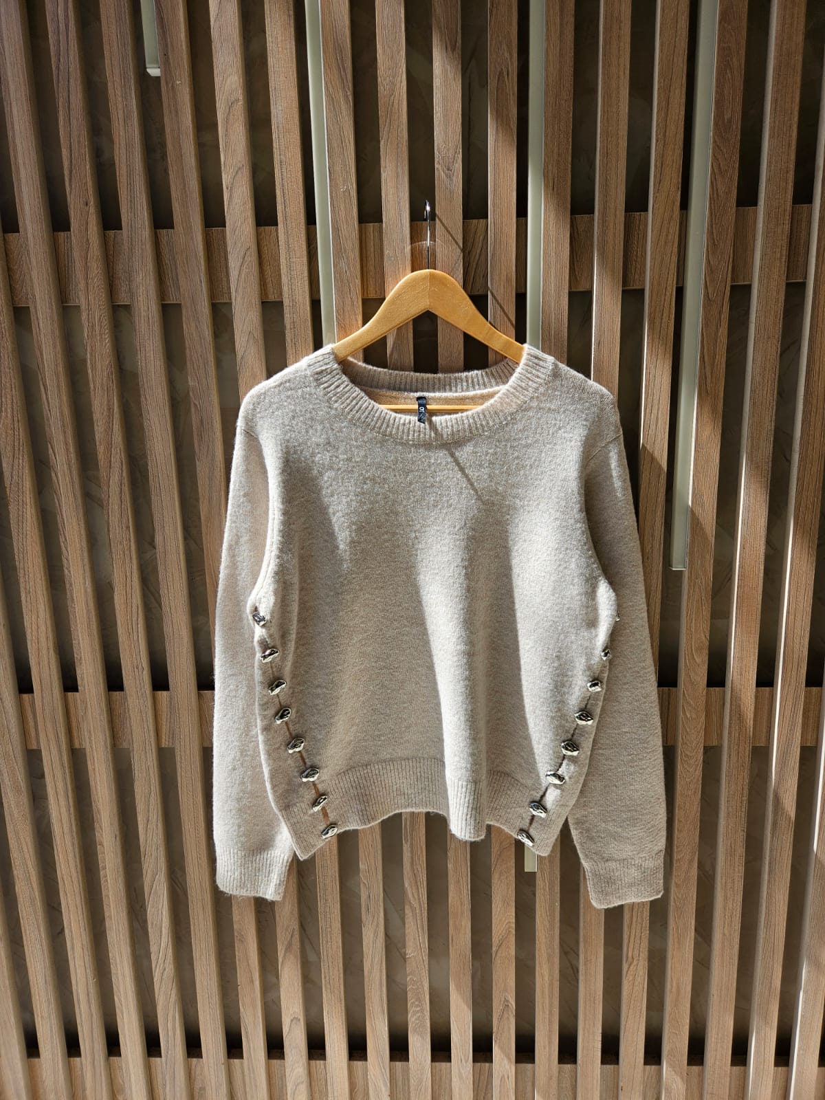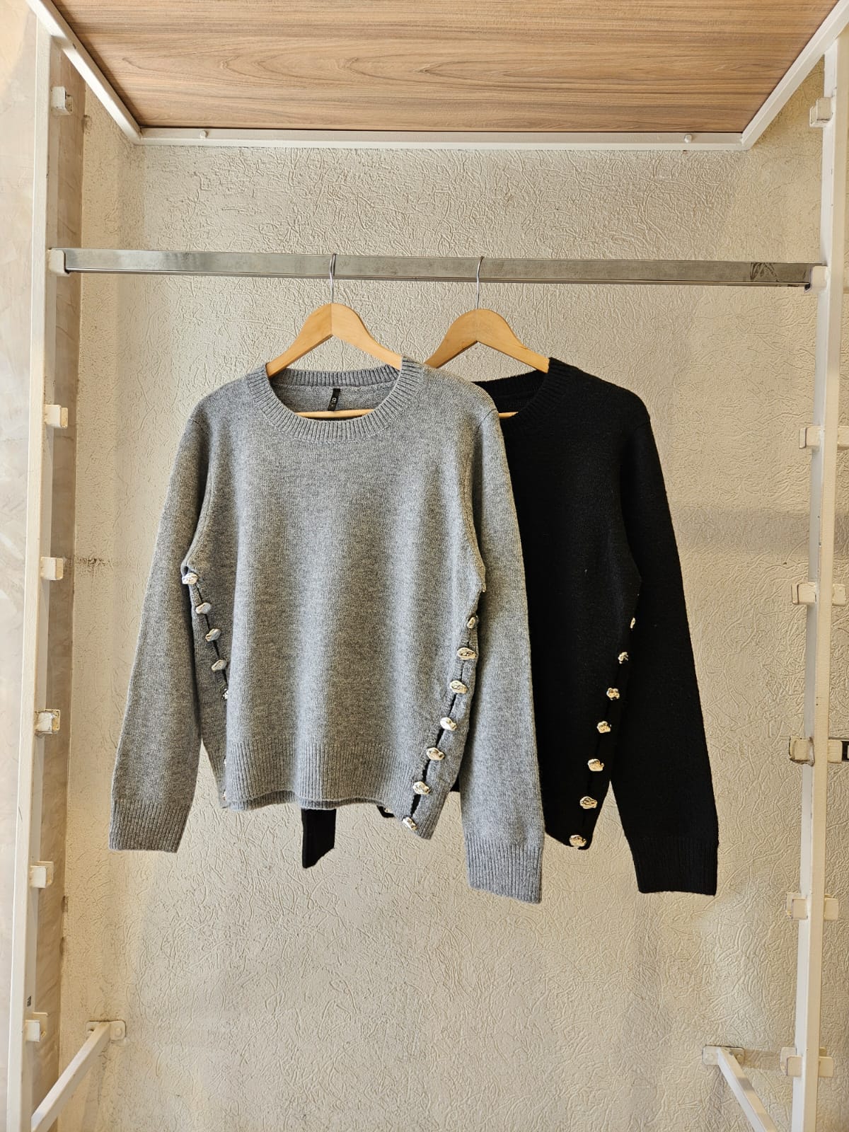 SWEATER CON CUELLO REDONDO Y TAJOS LATERALES (IDEALES PARA BRINDAR MAYOR MOVIMIENTO Y UNA CAÍDA MÁS FLUIDA AL CUERPO) DETALLES DE PIEDRITAS EN TAJOS / TALLE ÚNICO