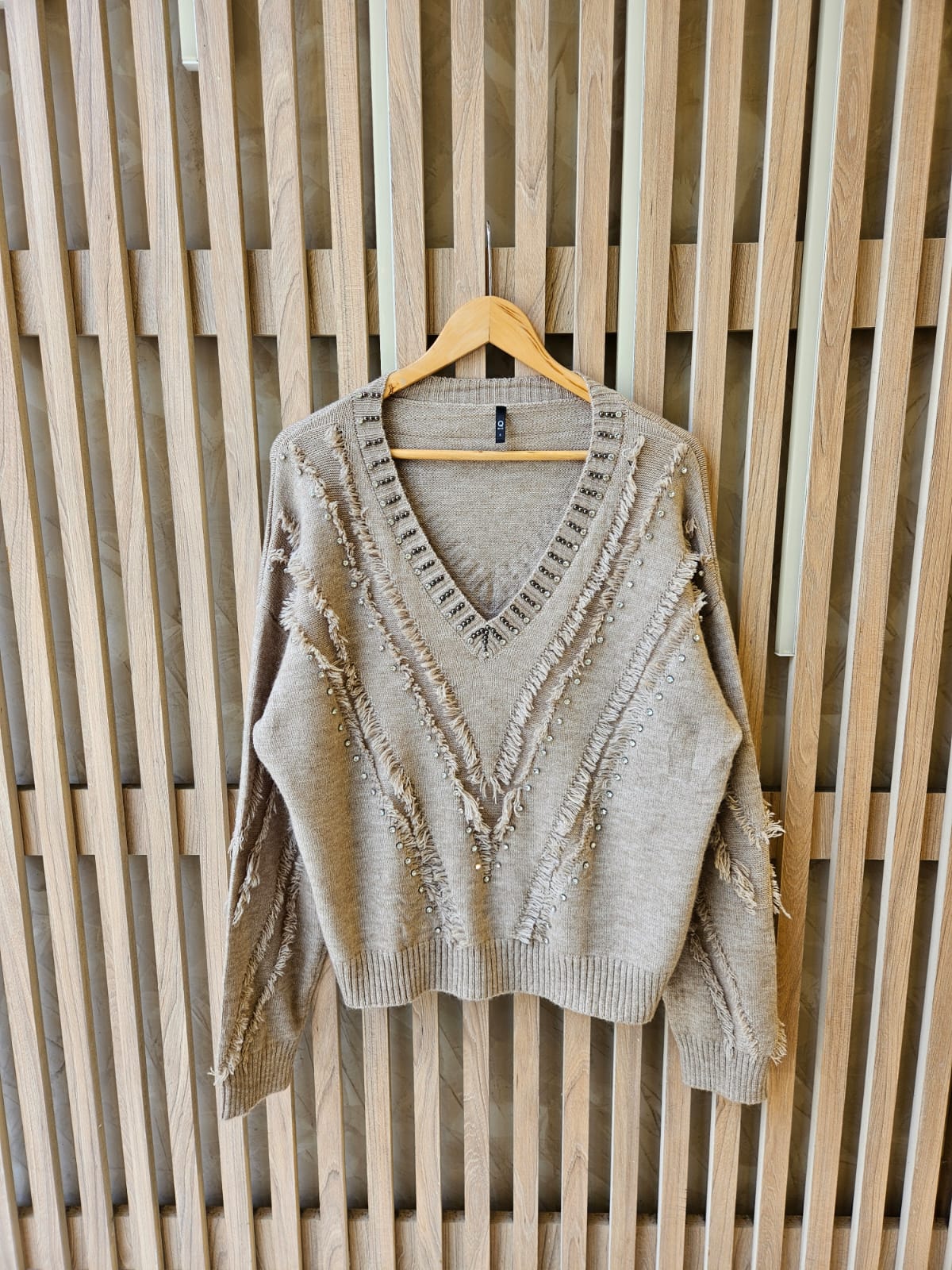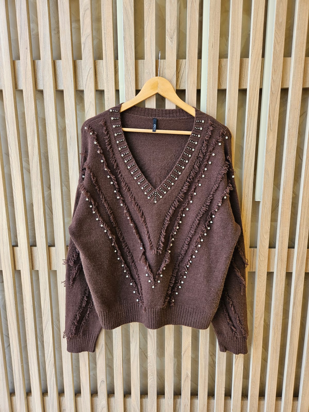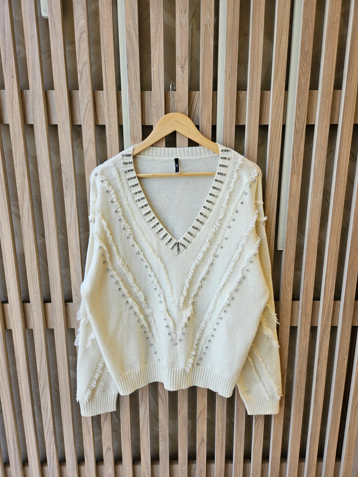 SWEATER DE CUELLO V. TIENE STRASS, TACHAS Y FLECOS / TALLE ÚNICO