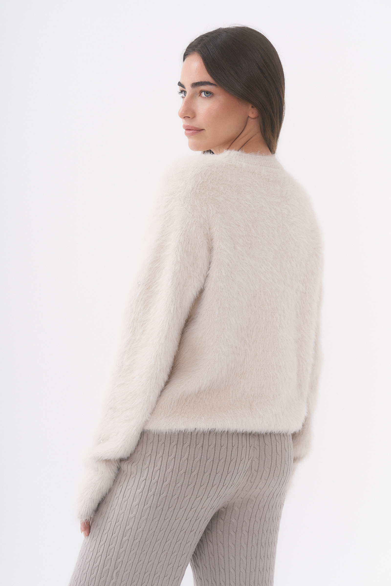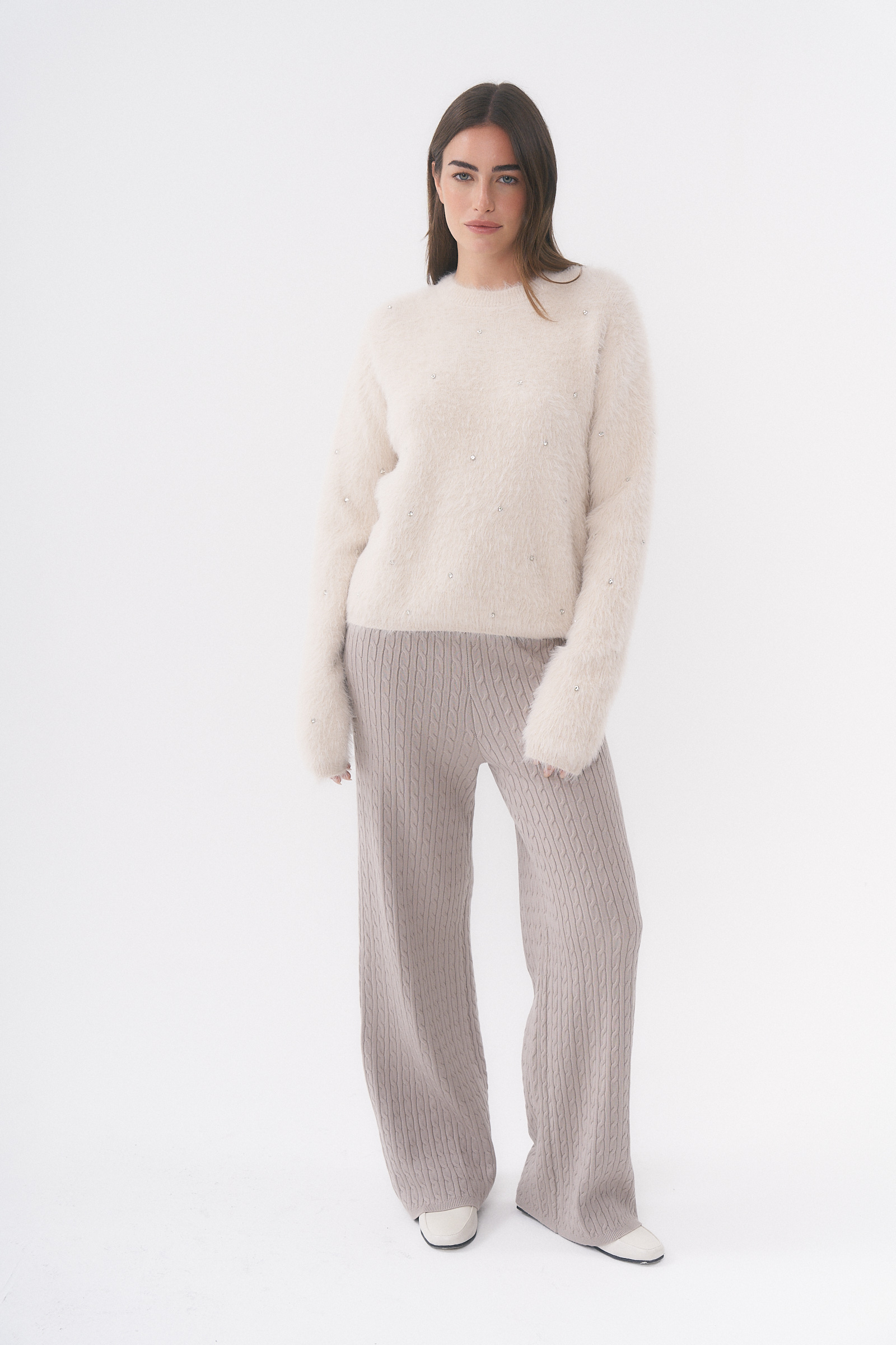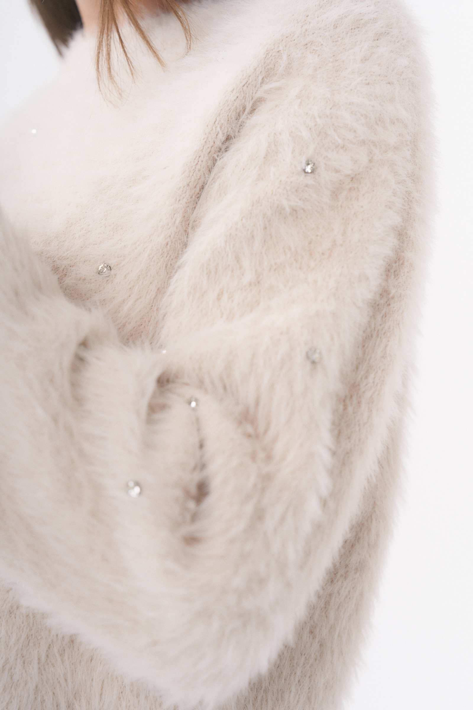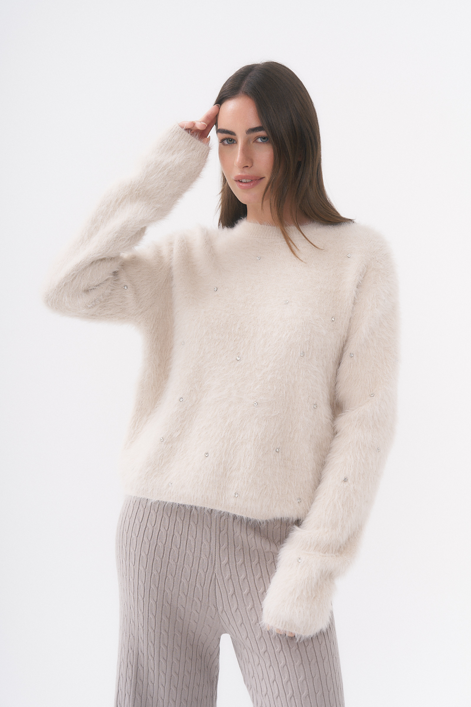 SWEATER DE PUNTO CON TEXTURA DE PELAJE SUAVE Y DETALLE DE STRASS SALPICADO / TALLE ÚNICO
