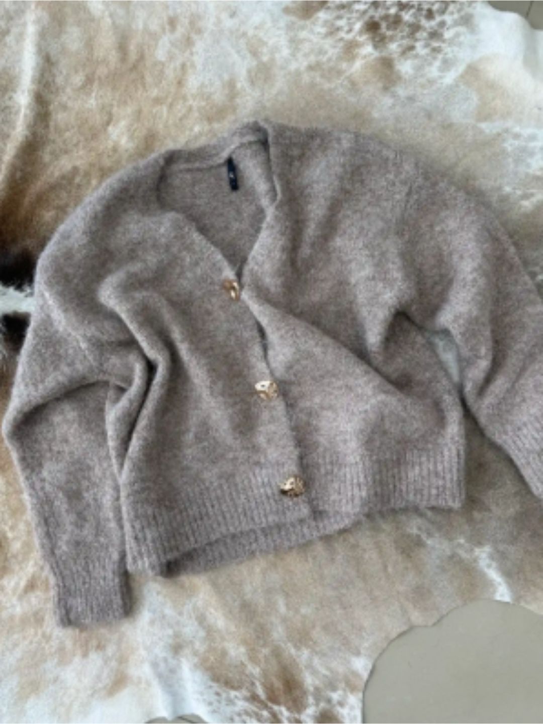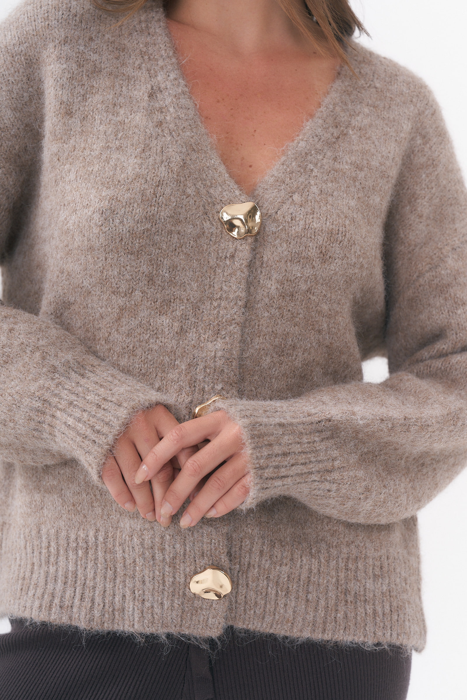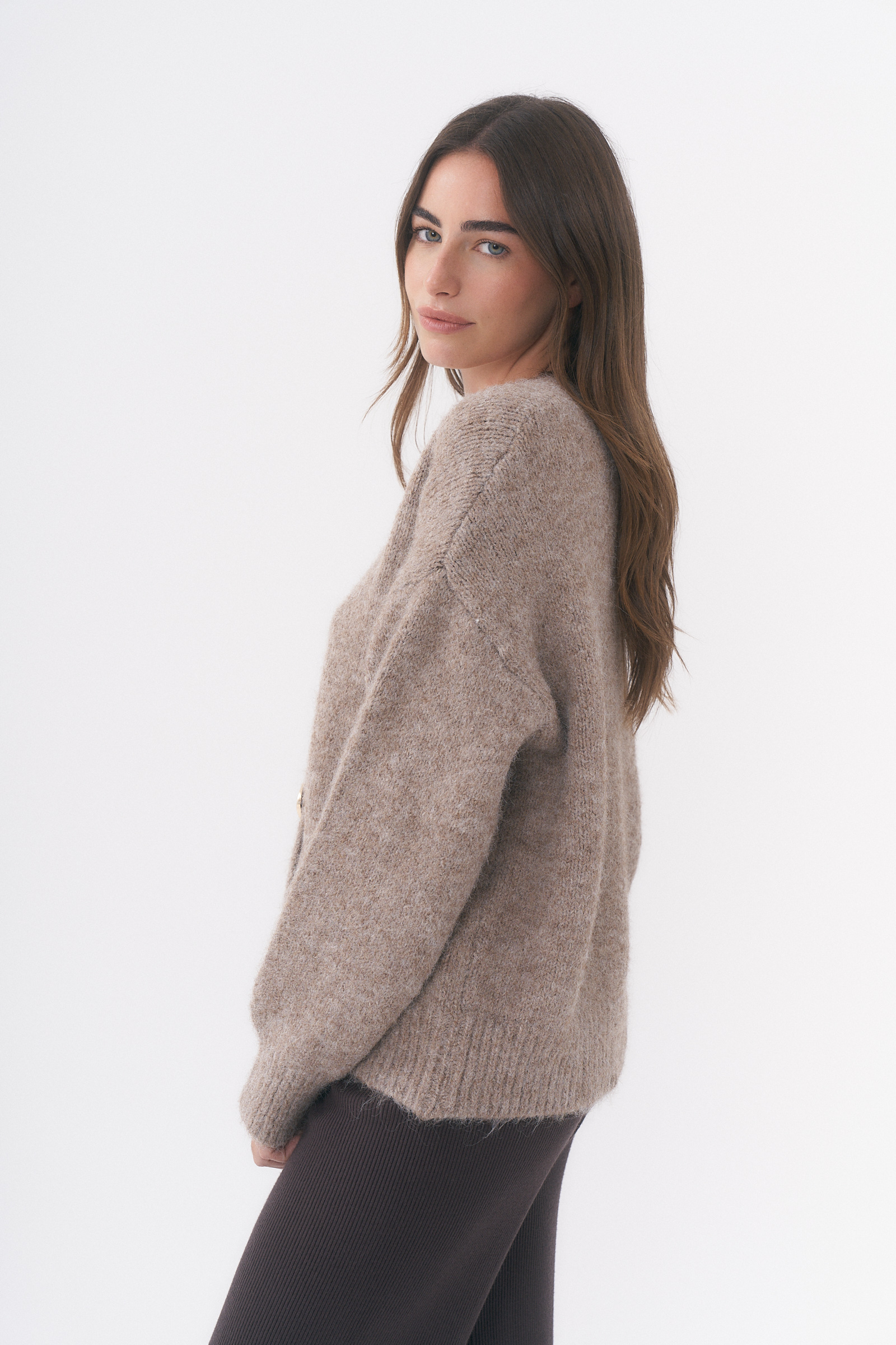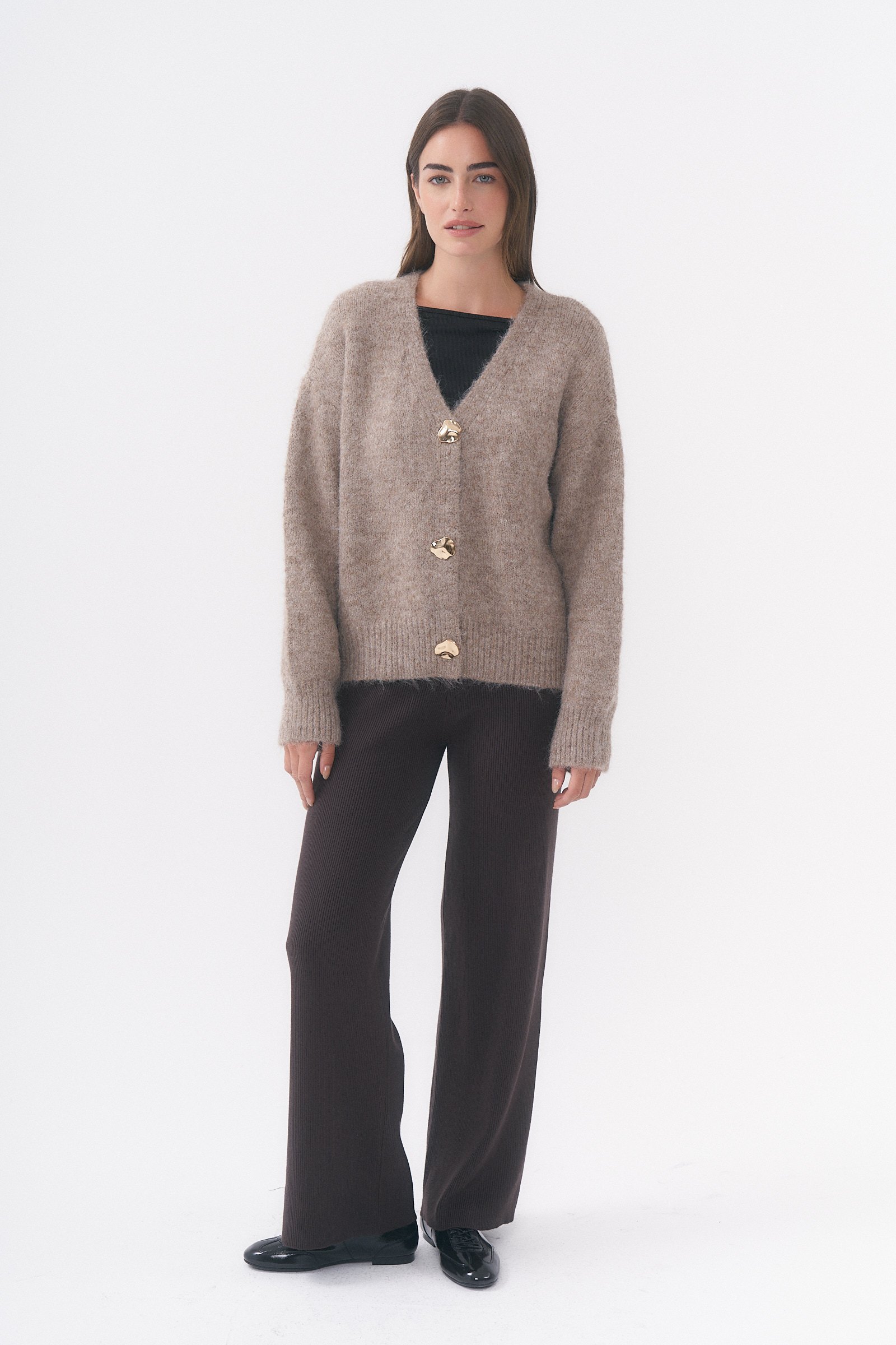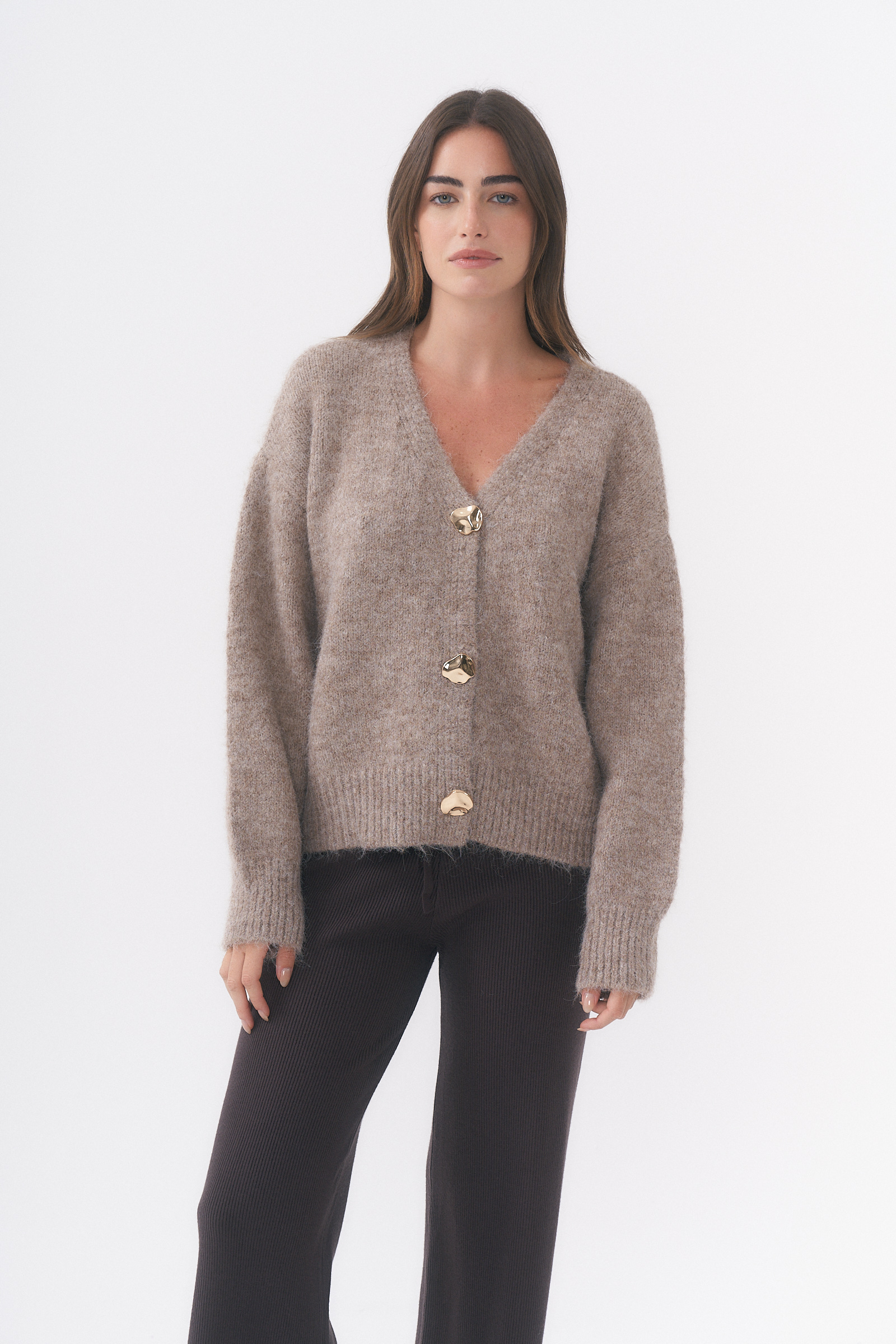 SACO DE PUNTO CON TEXTURA DE PELAJE CON CUELLO V Y BOTONES DORADOS TRABAJADOS EN FRENTE / TALLE ÚNICO