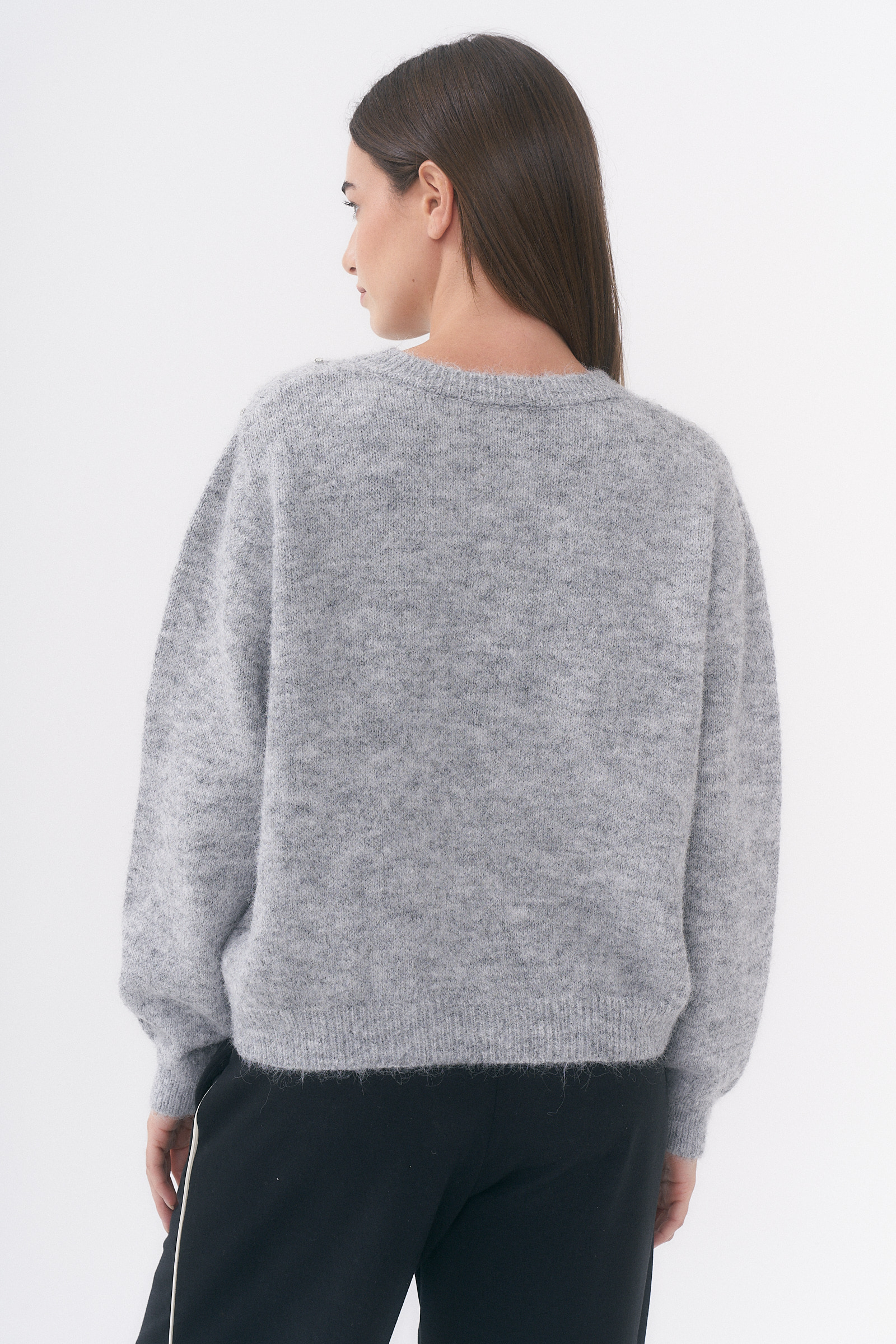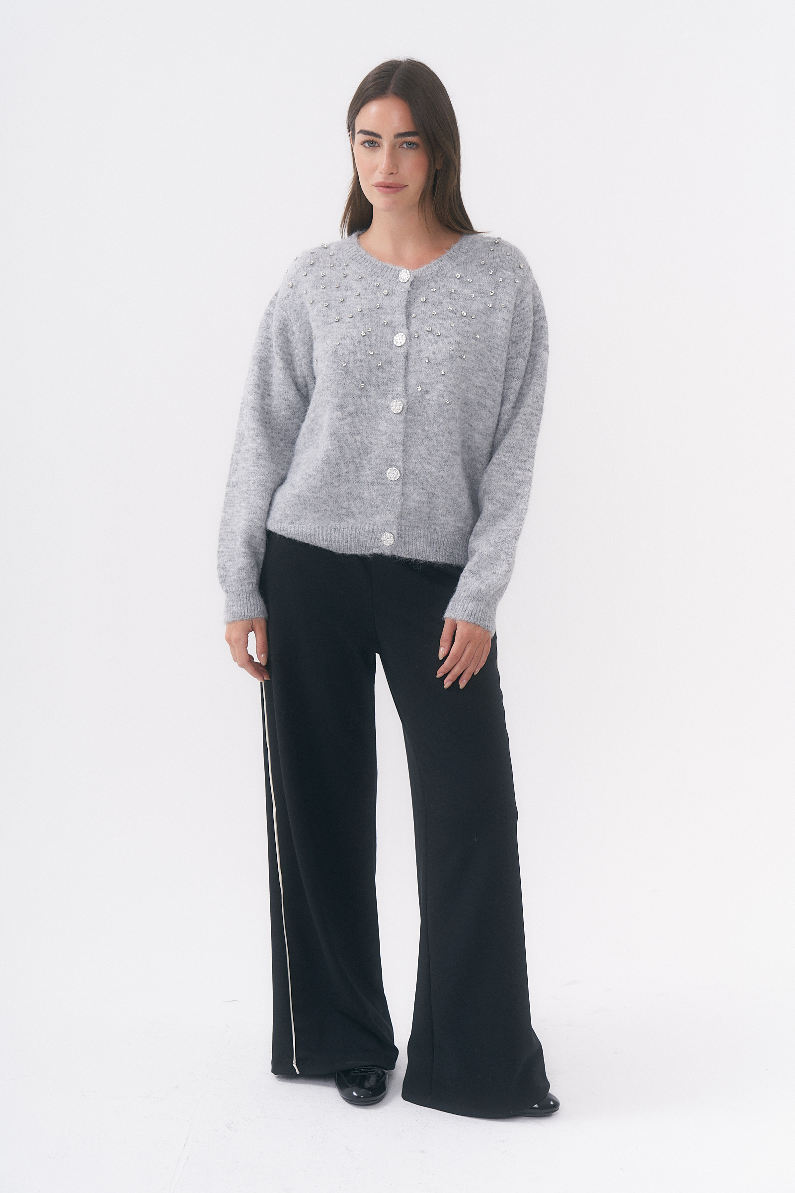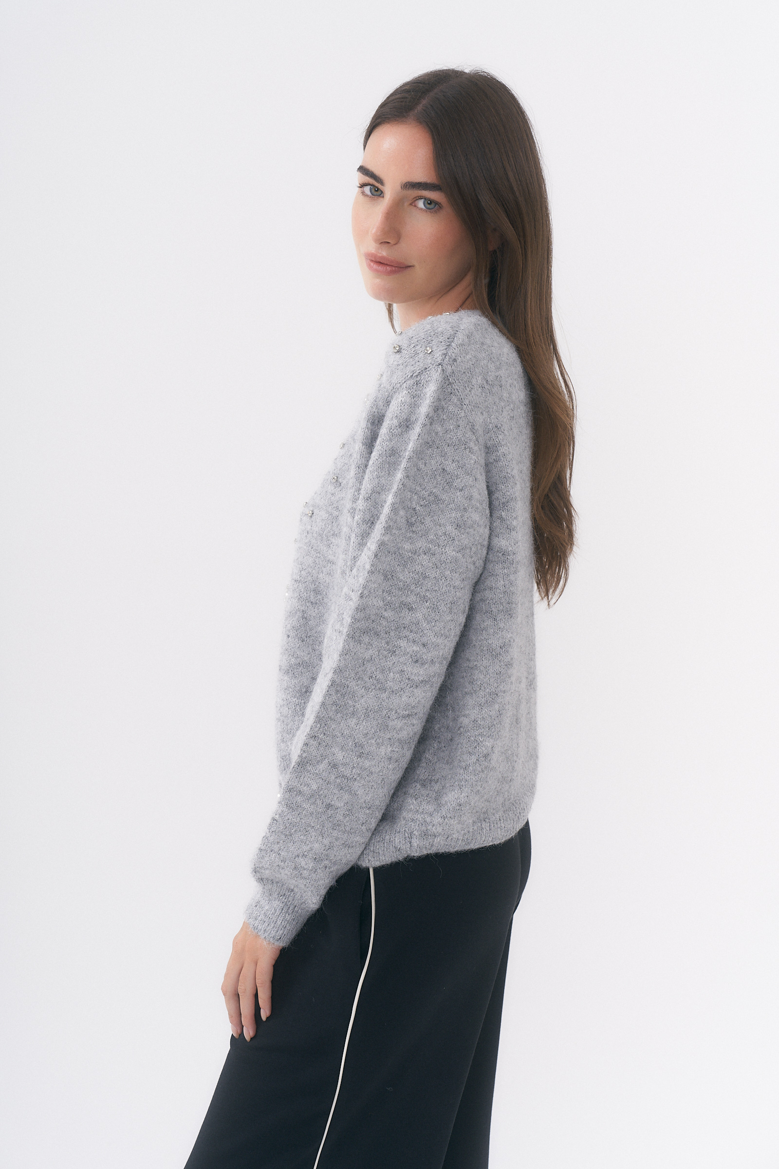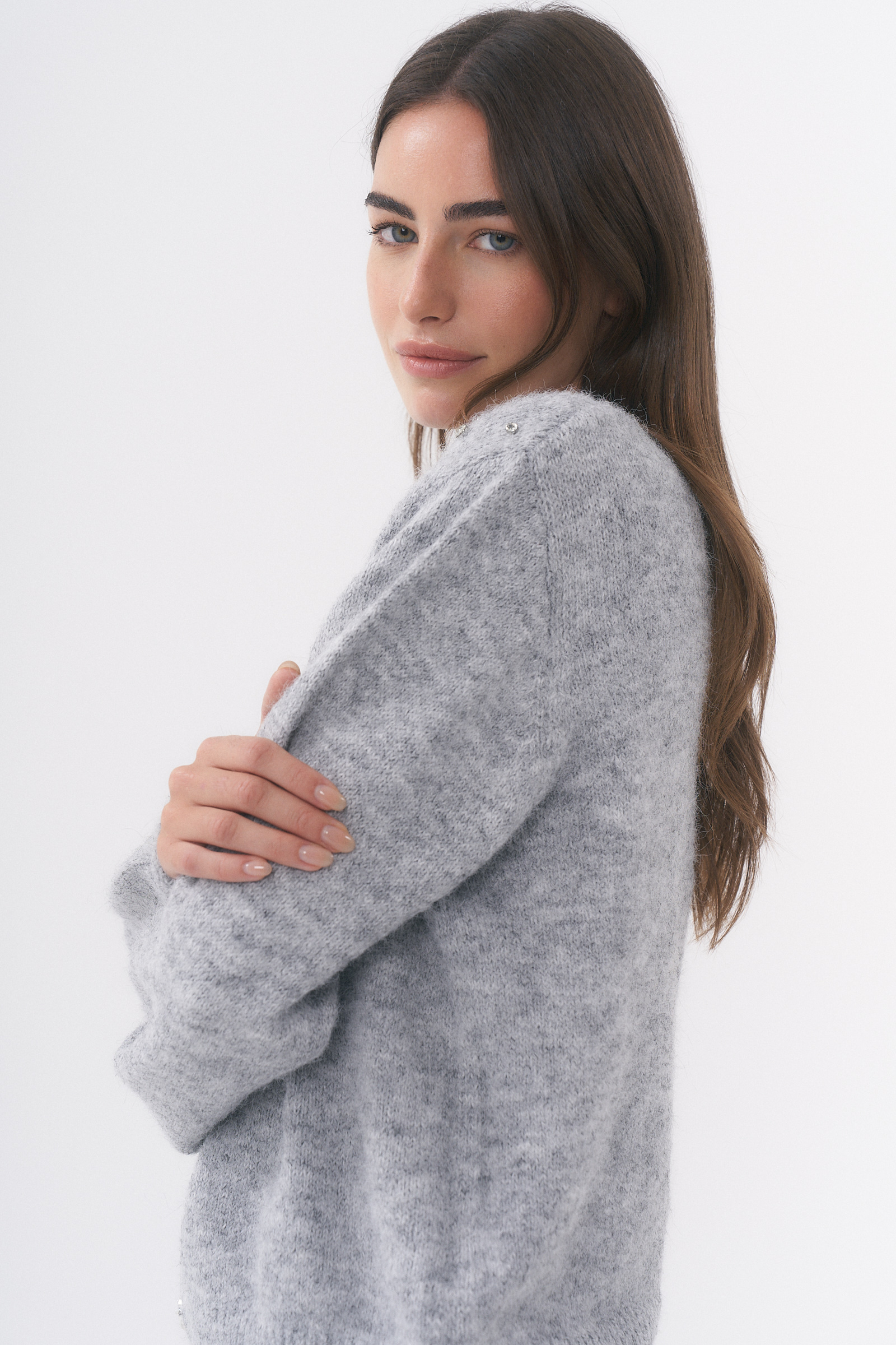 REMERA FELI CUELLO V CON MANGA CAÍDA Y DETALLE DE TACHAS / TALLES M Y L