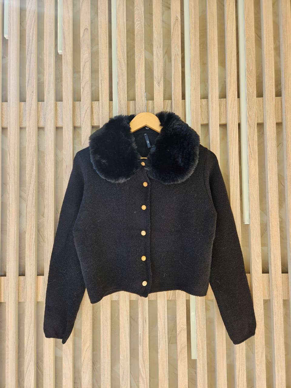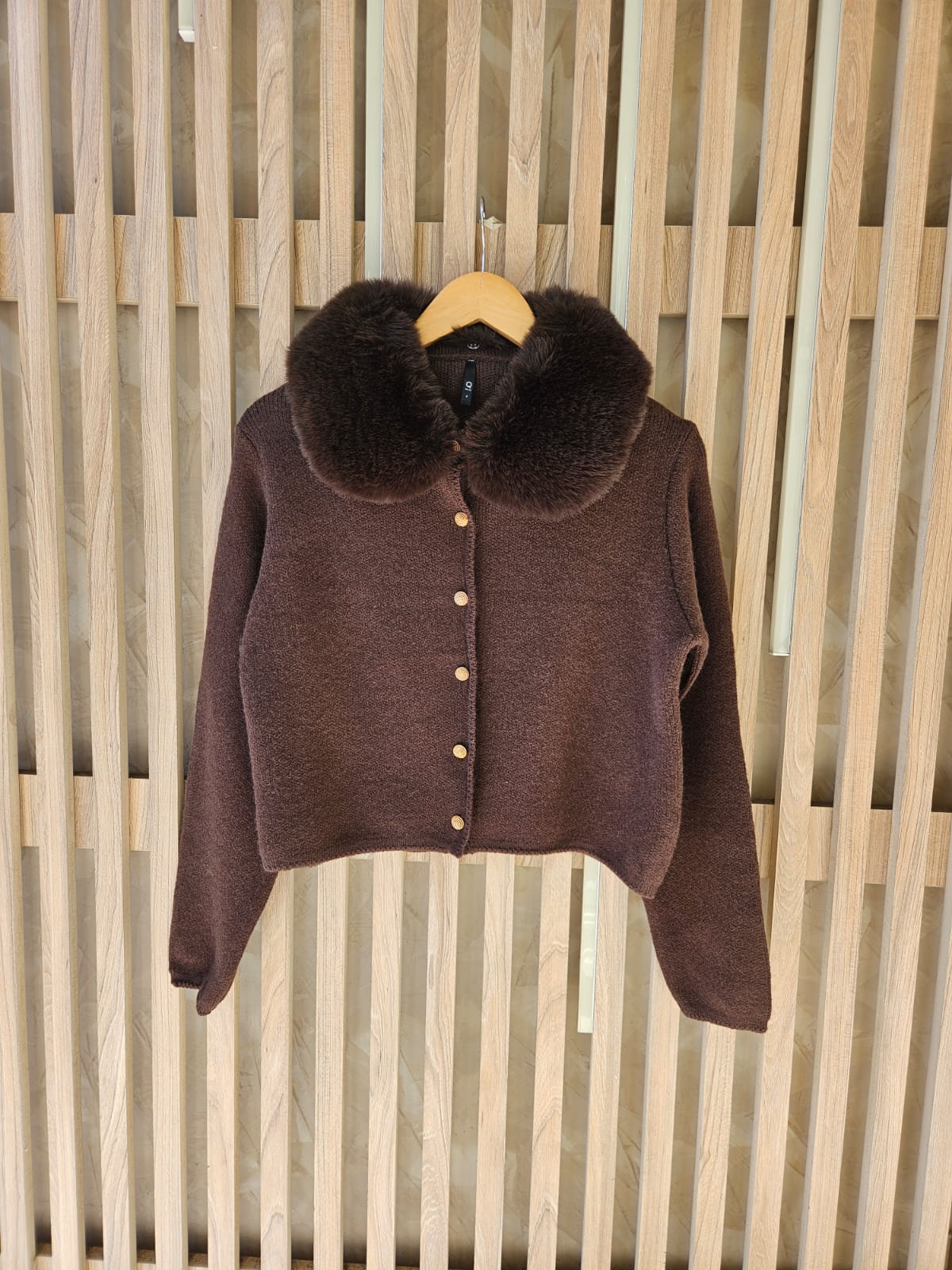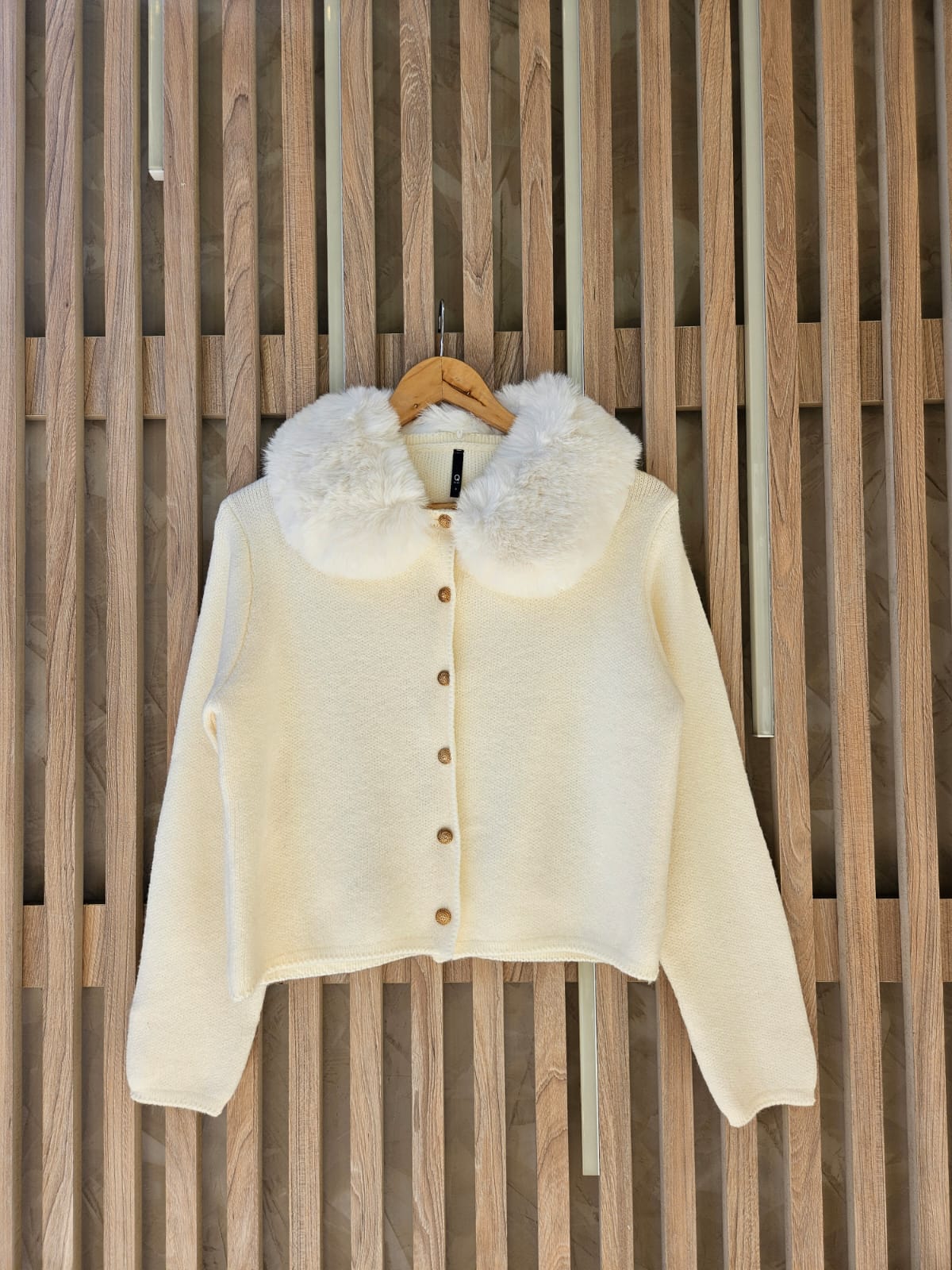SACO CON CUELLO DE PELO ECOLÓGICO DESMONTABLE Y BOTONES TRABAJADOS DORADOS/ TALLE ÚNICO