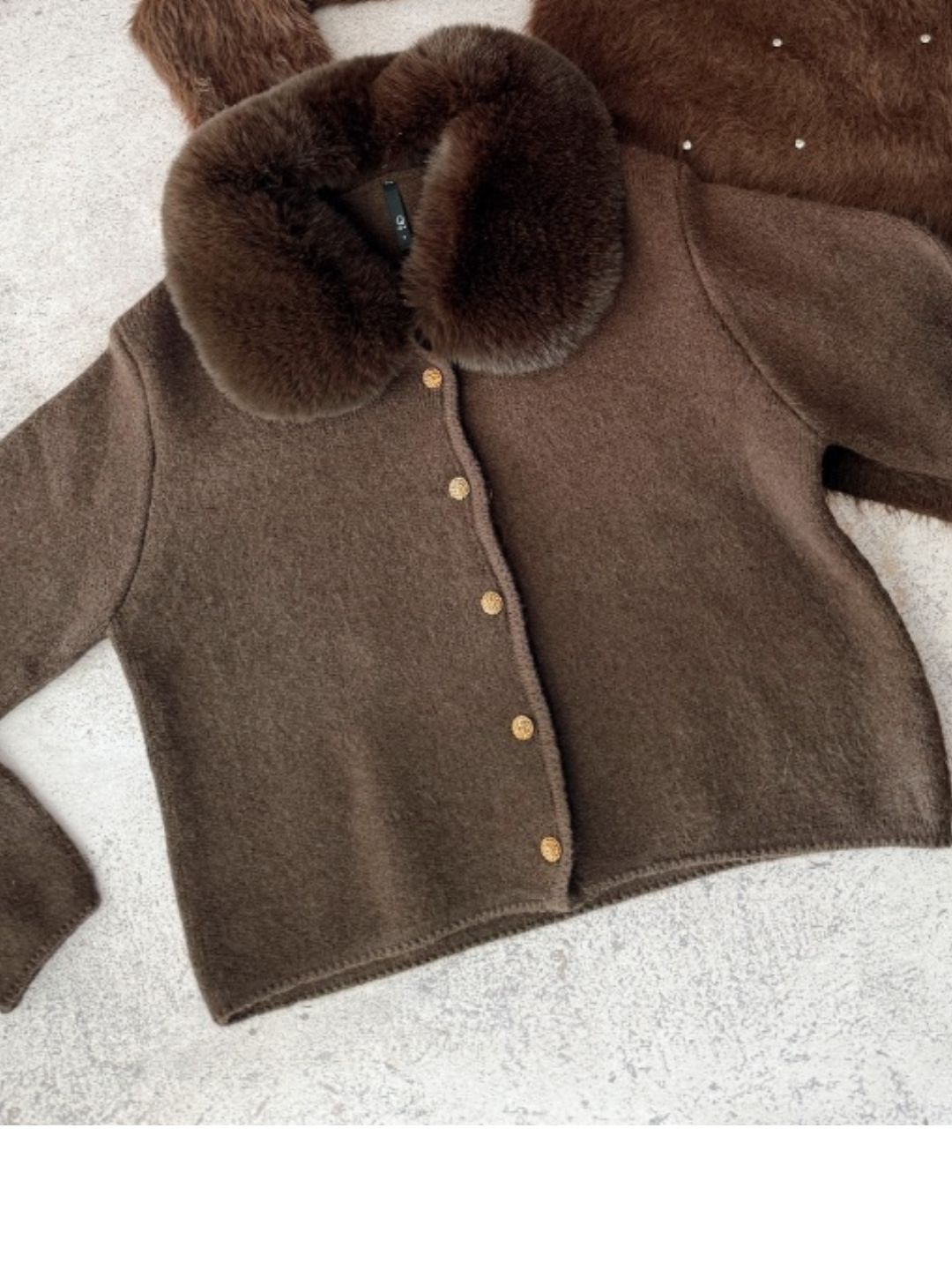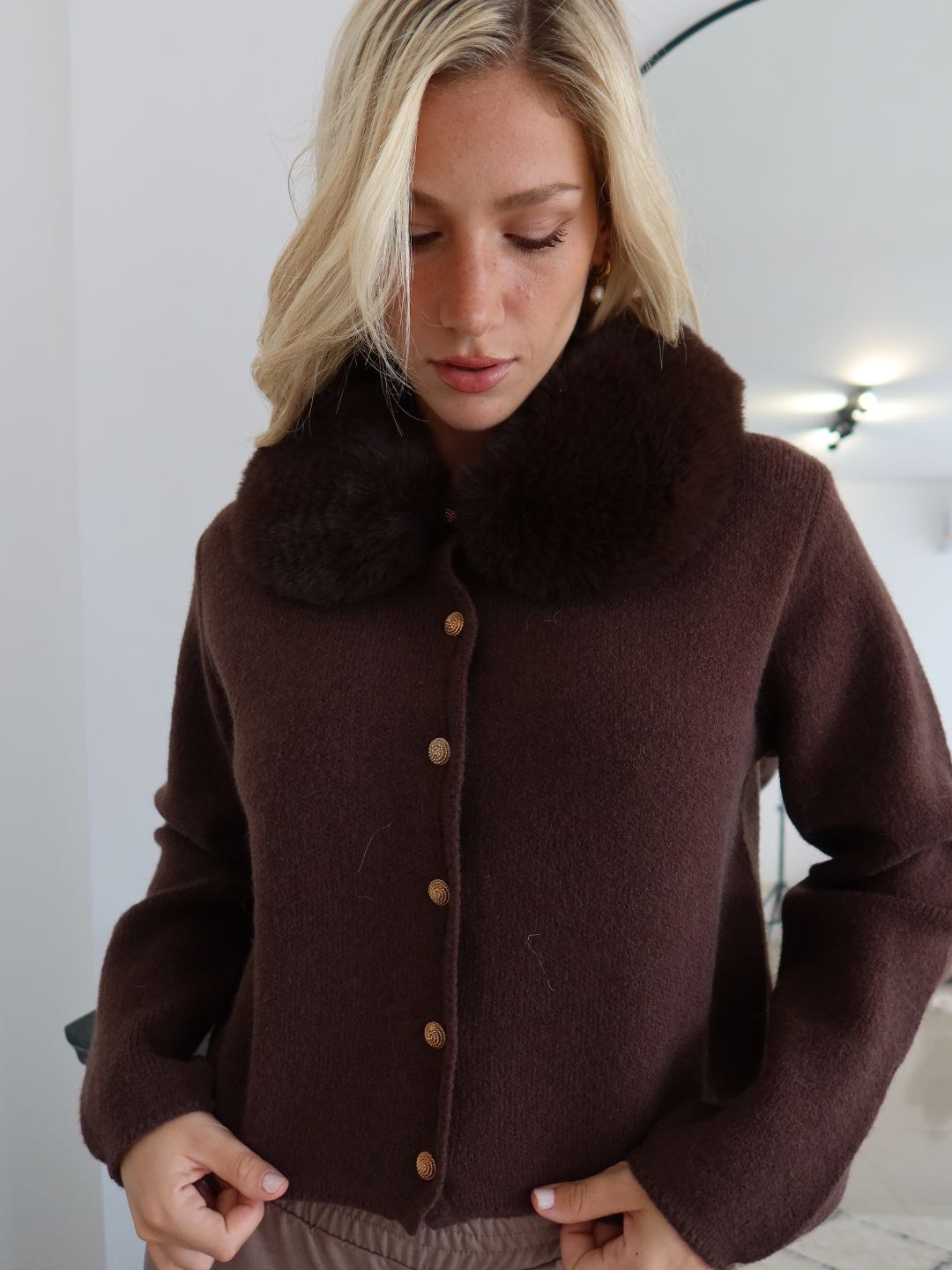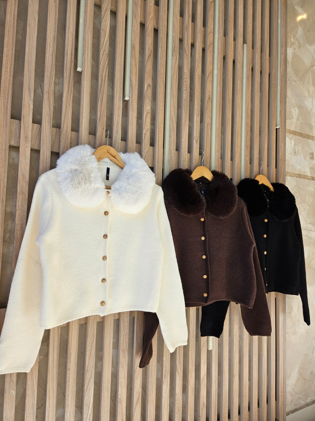 SACO CON CUELLO DE PELO ECOLÓGICO DESMONTABLE Y BOTONES TRABAJADOS DORADOS/ TALLE ÚNICO