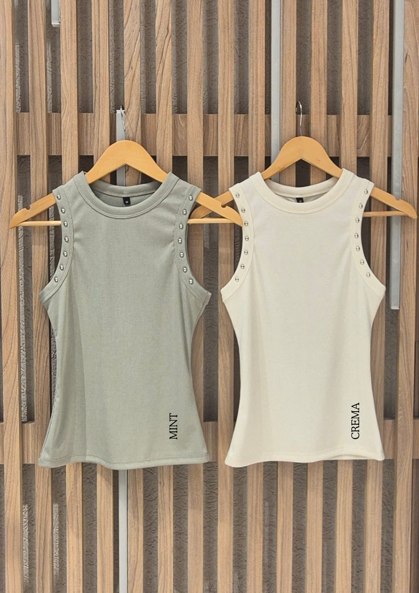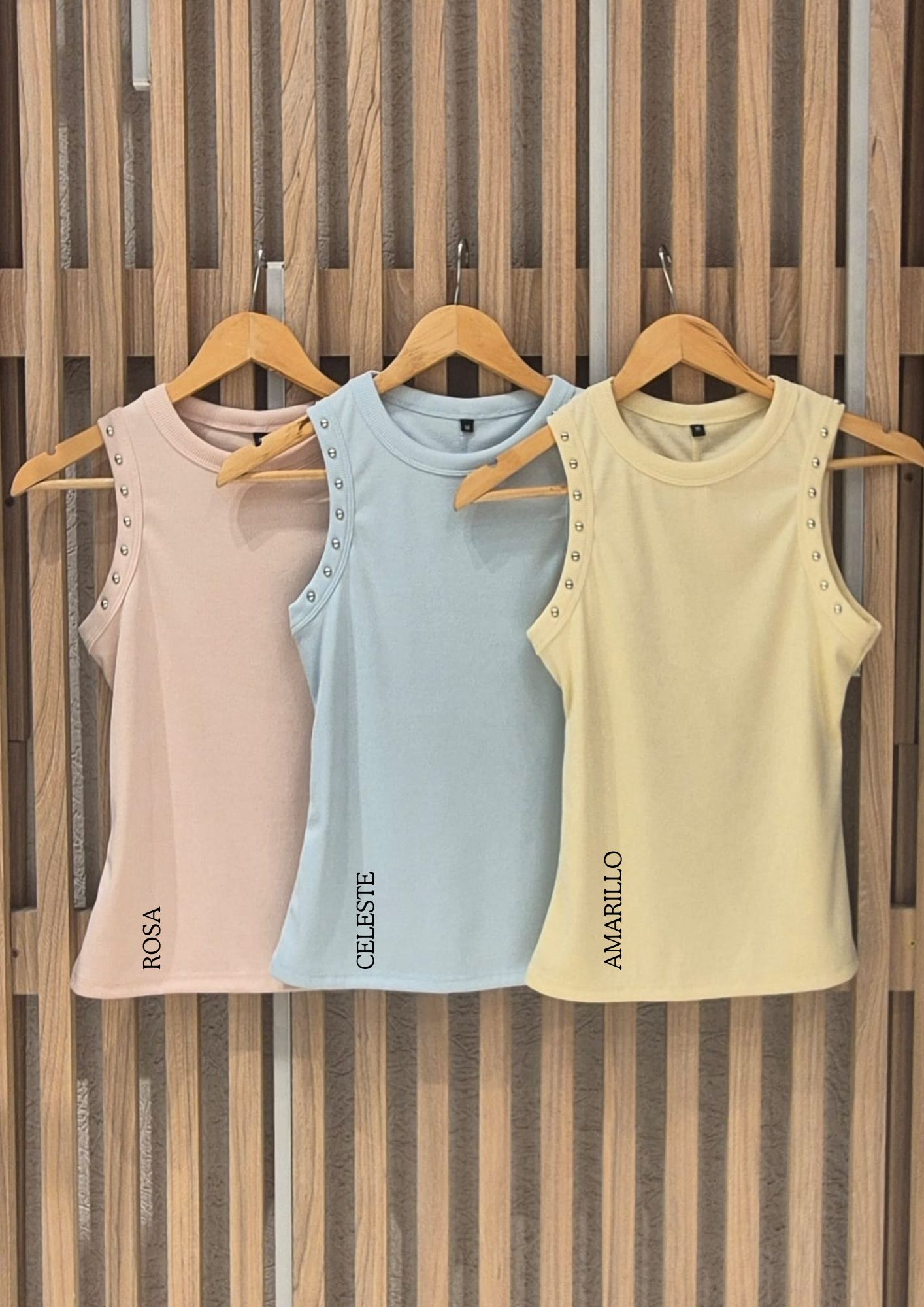 MUSCULOSA NAYLA CUELLO REDONDO CON DETALLE DE TACHAS EN SISA / TALLES M Y L