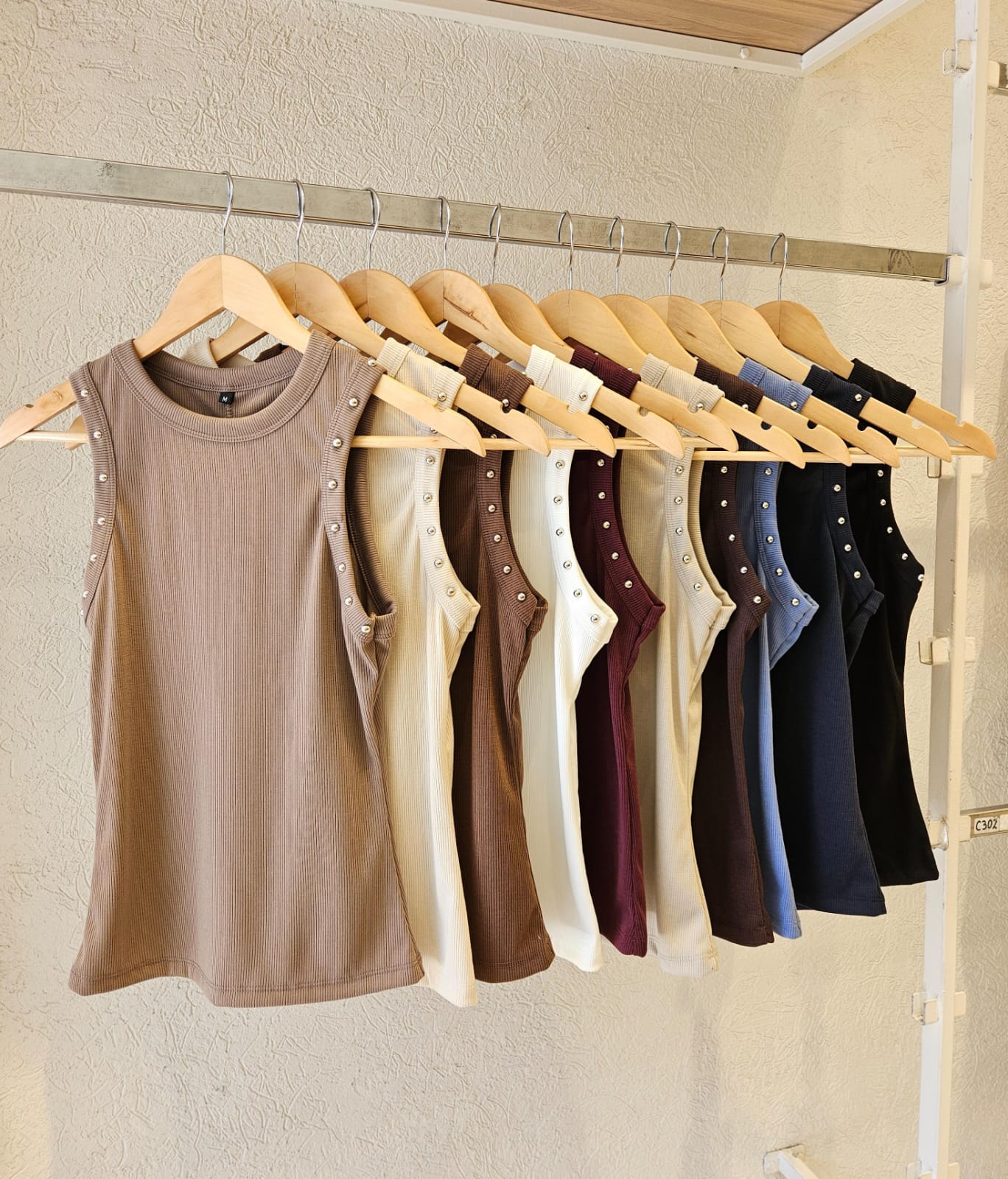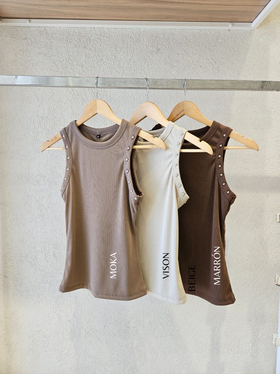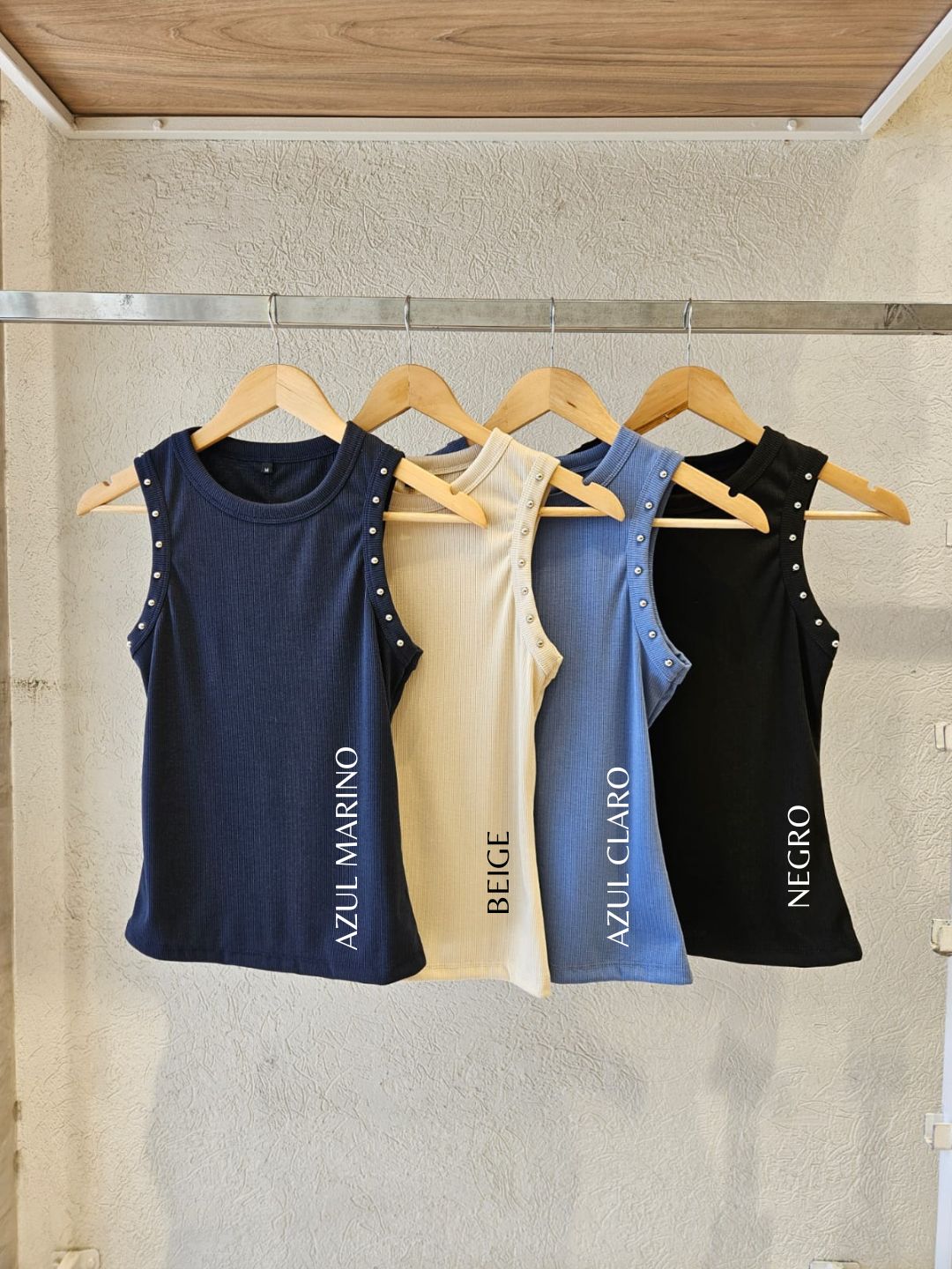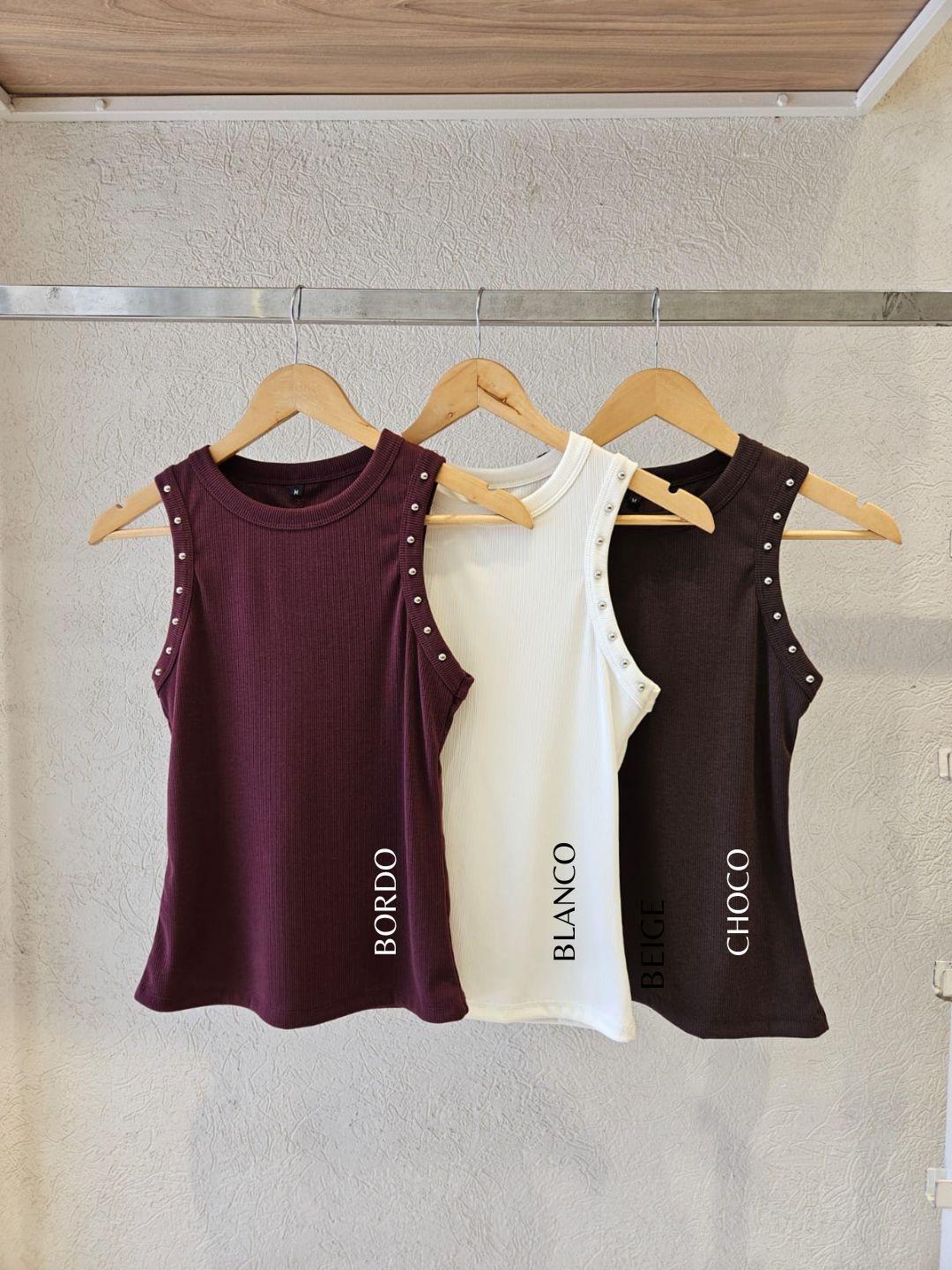 MUSCULOSA NAYLA CUELLO REDONDO CON DETALLE DE TACHAS EN SISA / TALLES M, L Y XL