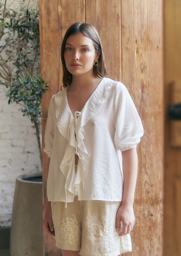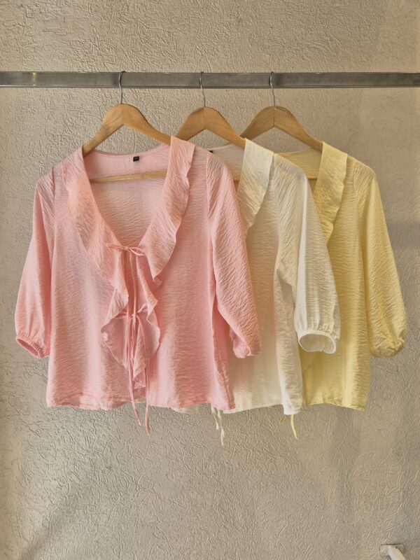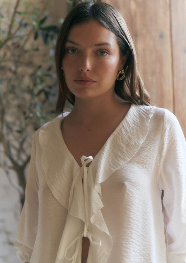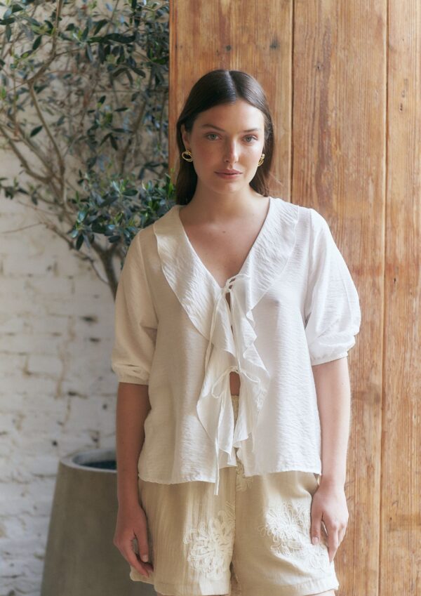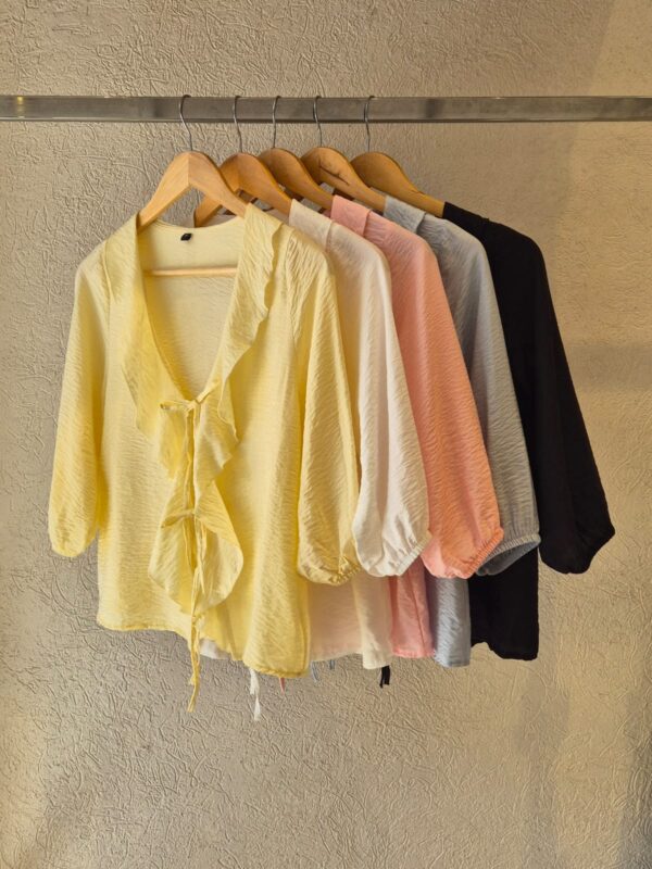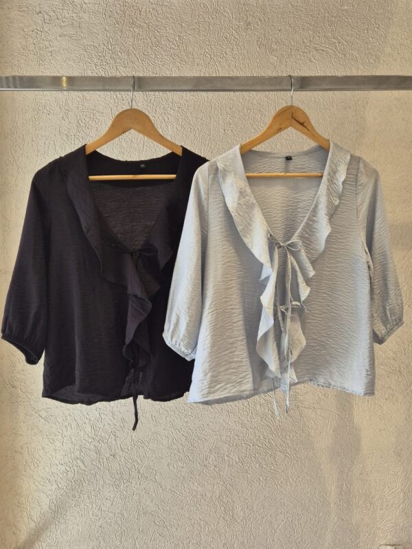 BLUSA CATALINA CON VOLADOS Y TIRAS PARA ATAR ADELANTE / TALLES M Y L