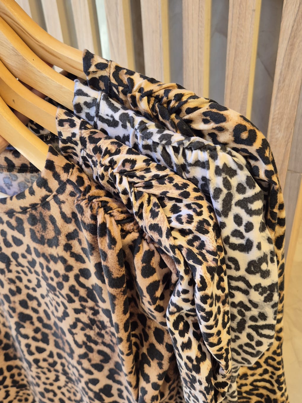 REMERA FRIDA EN ANIMAL PRINT CUELLO REDONDO CON FRUNCE EN MANGA / TALLE ÚNICO