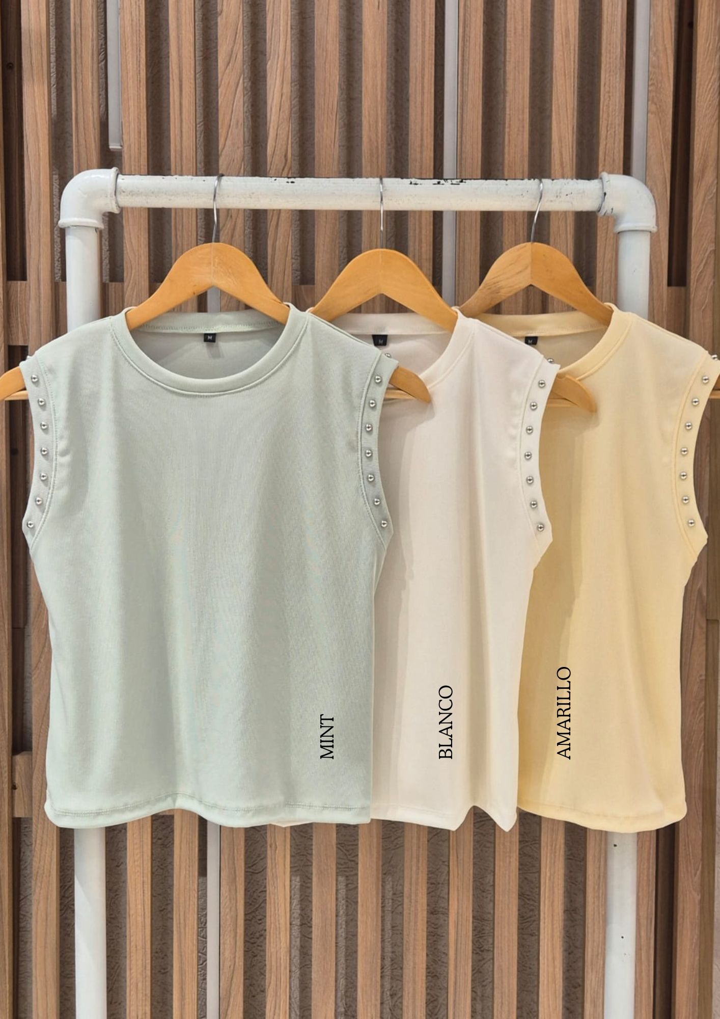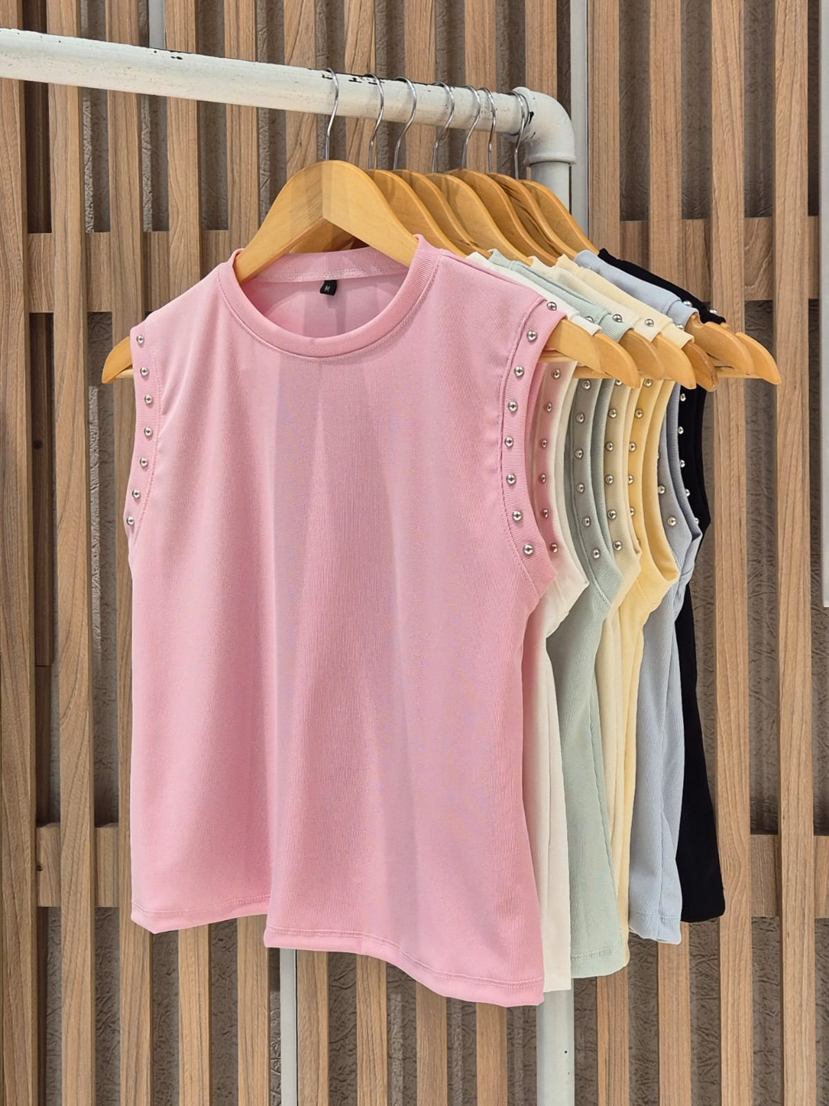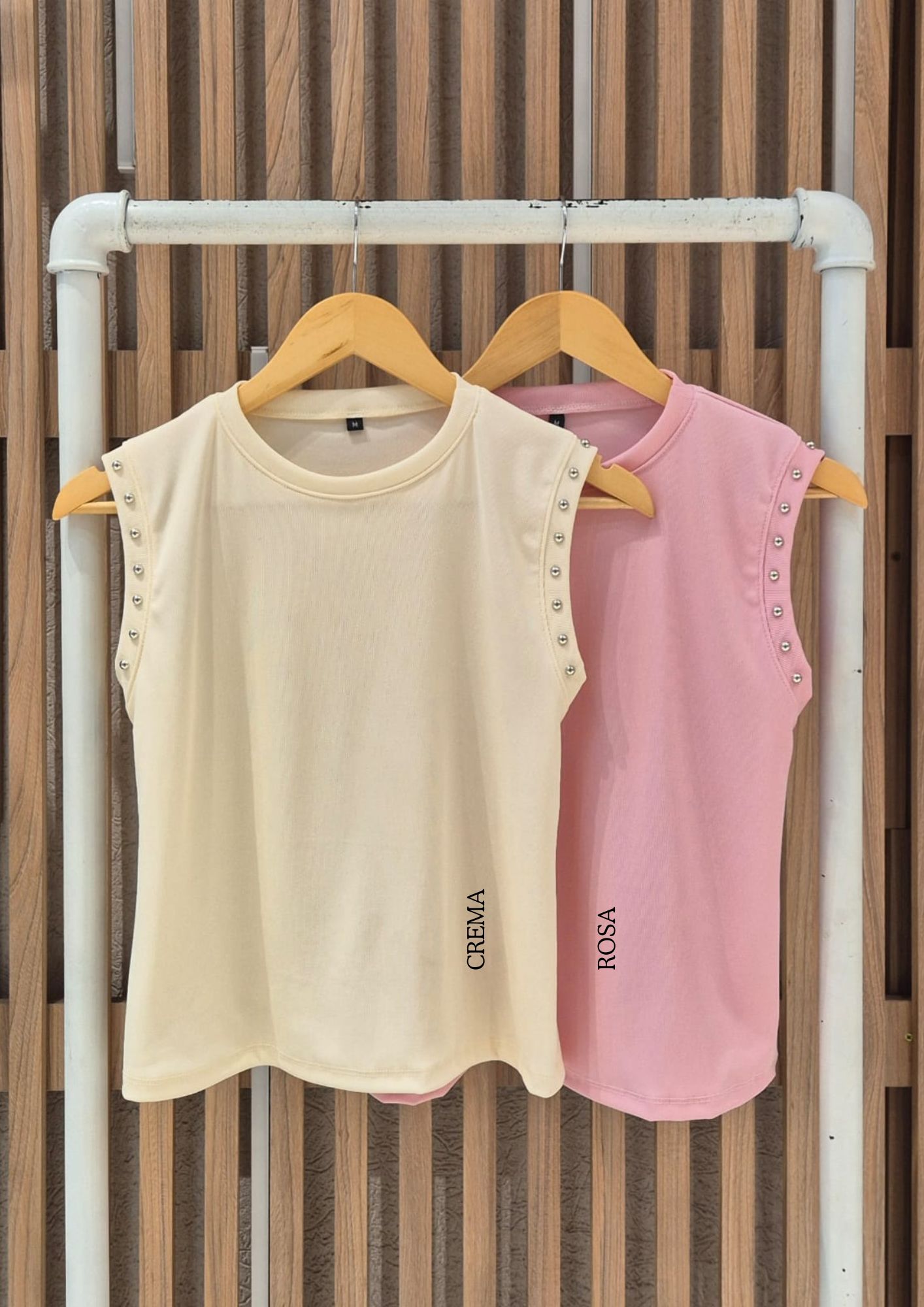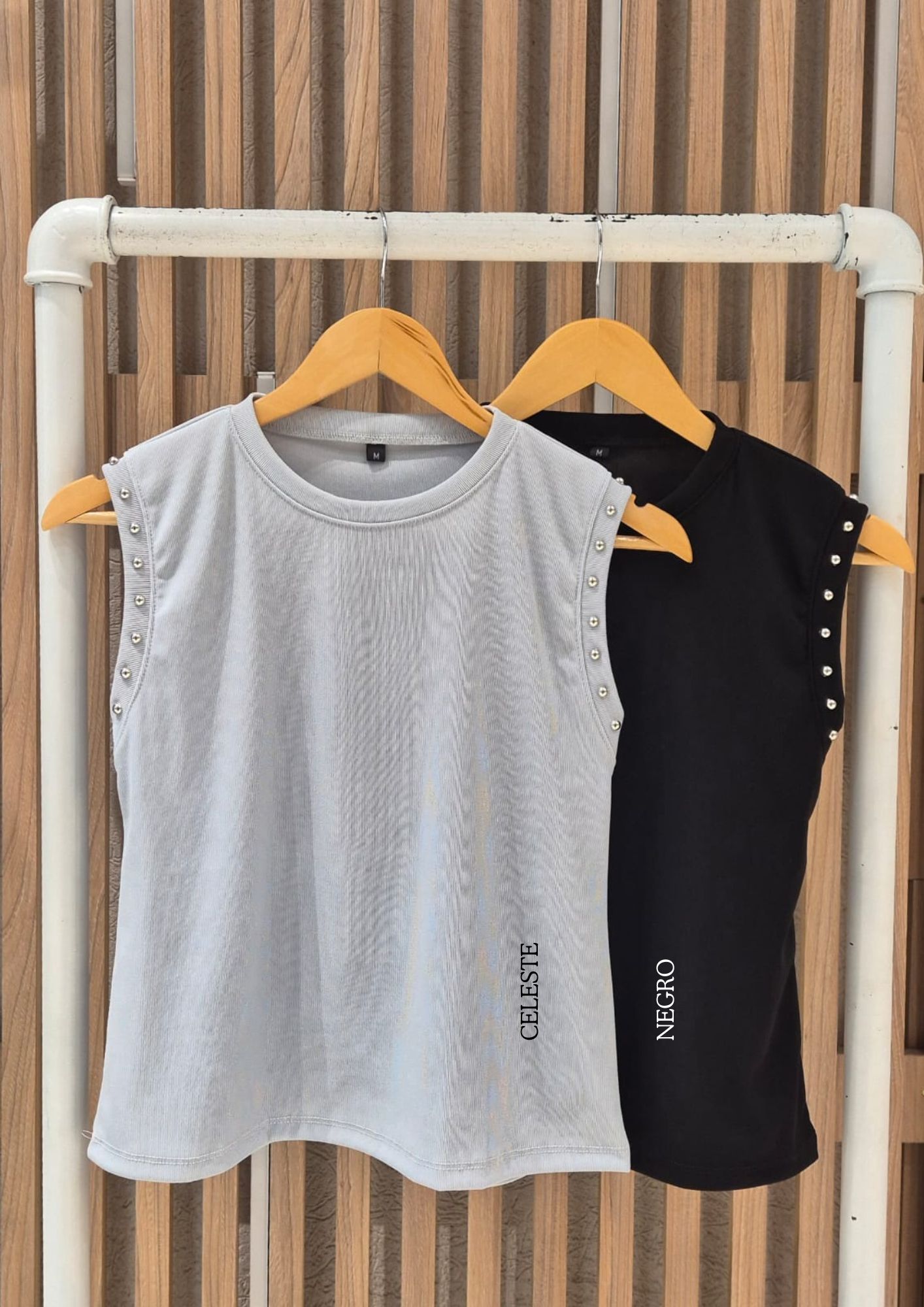 MUSCULOSA LEILA CUELLO REDONDO CON DETALLE DE TACHAS / TALLES M Y L