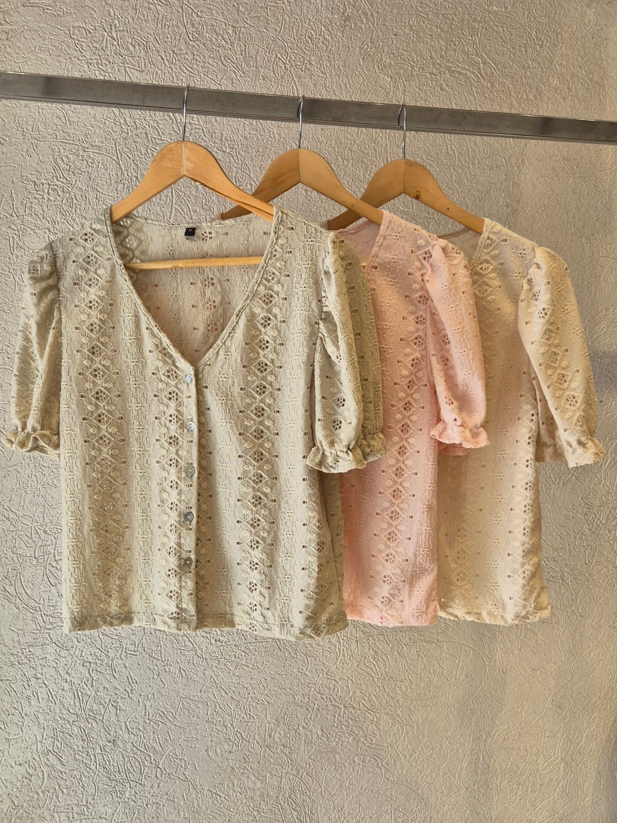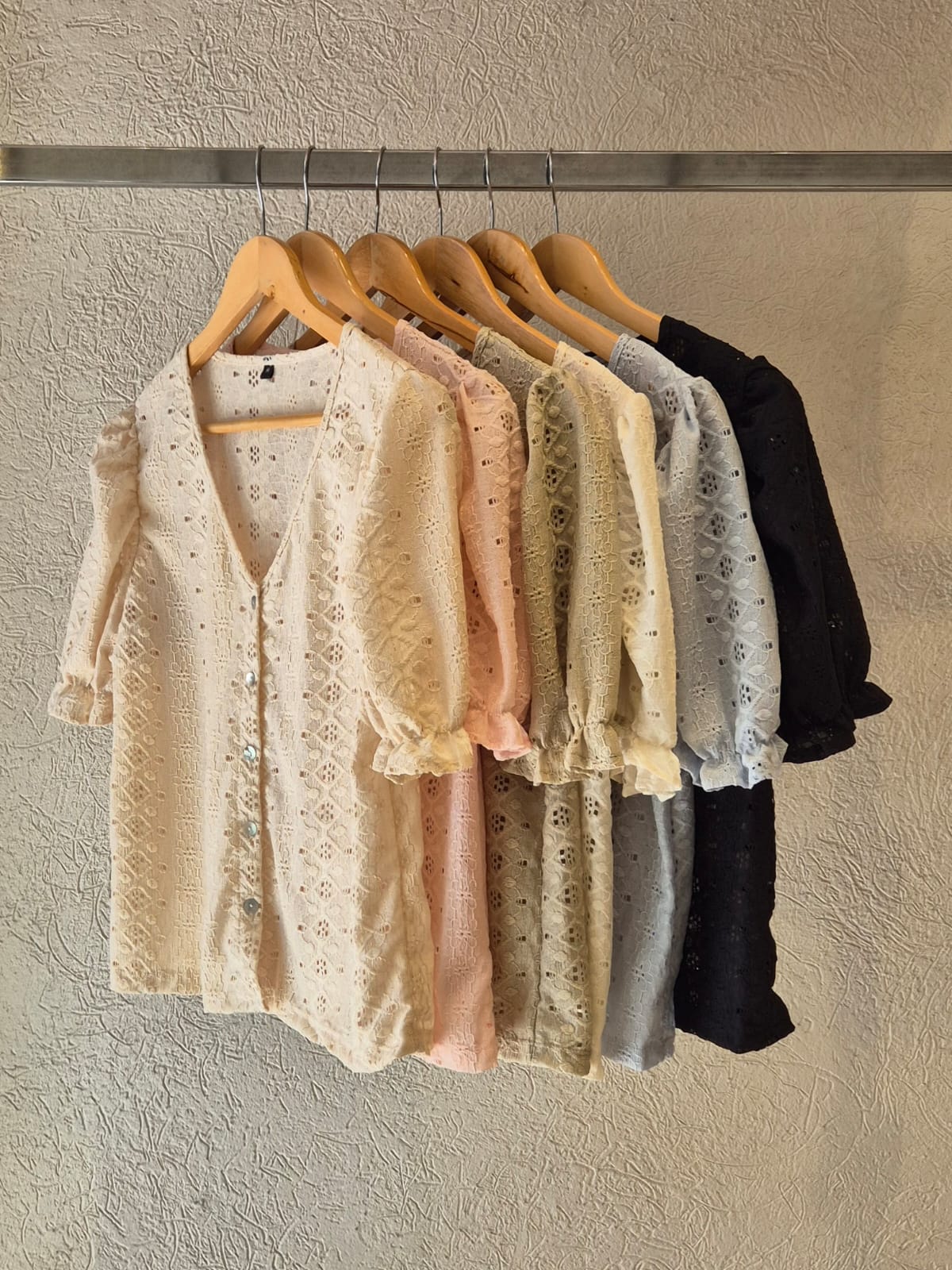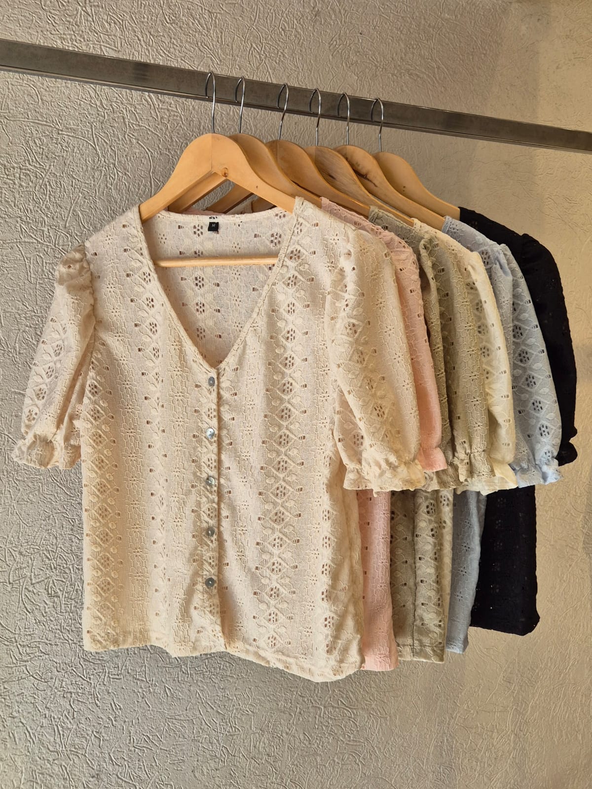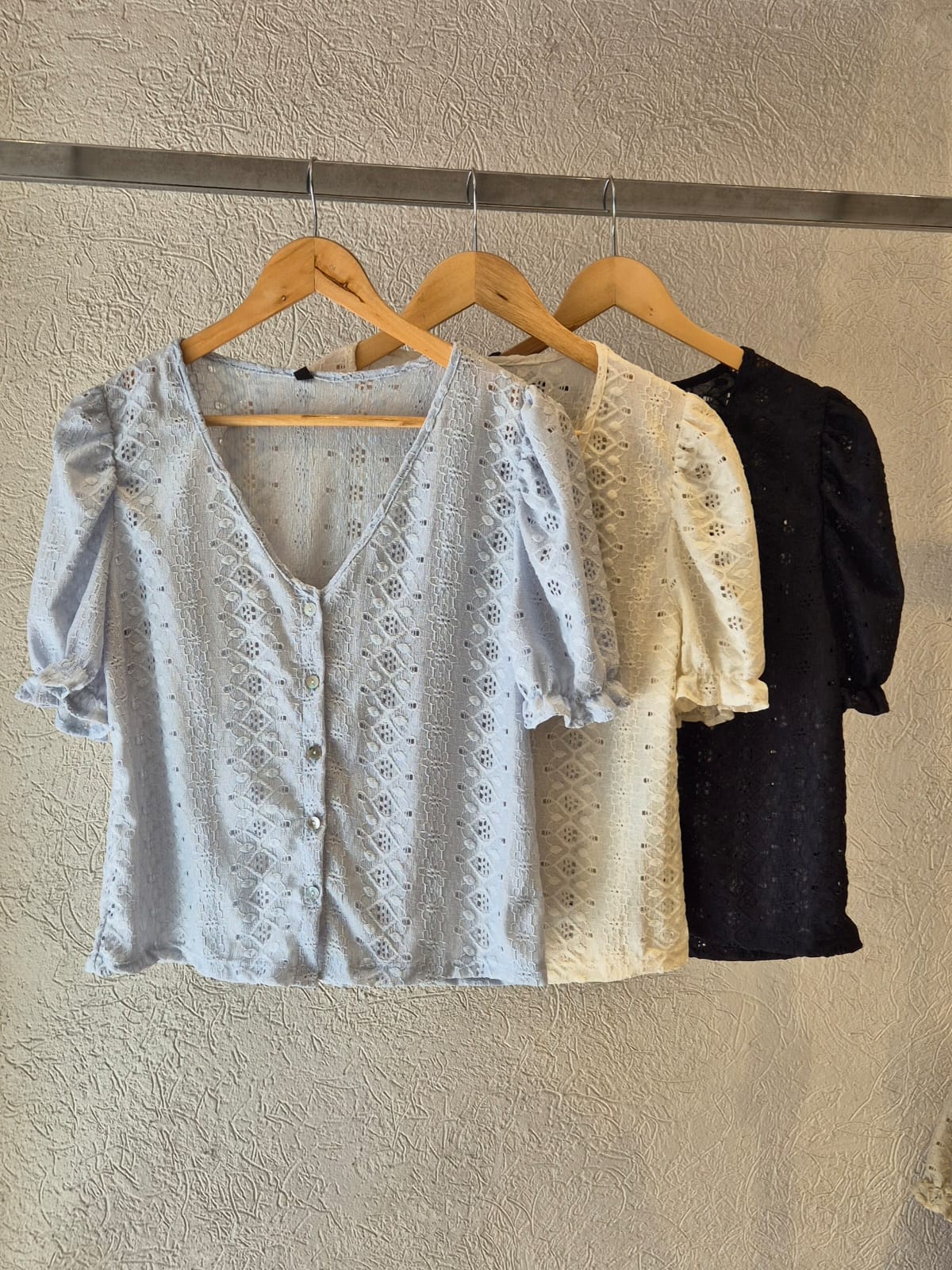 BLUSA STELLA CUELLO V CON BOTONES Y MANGA PRINCESA / TALLES M Y L